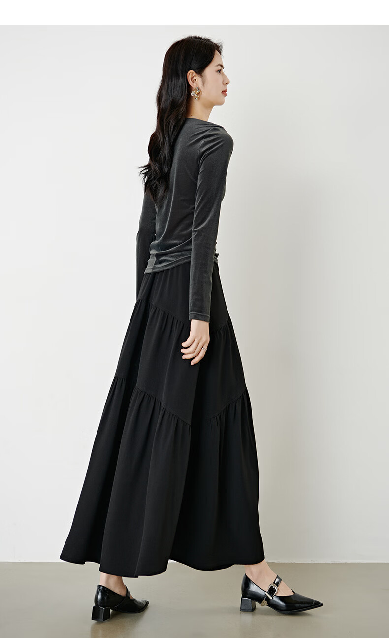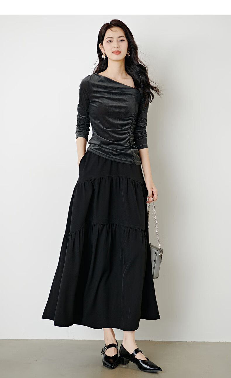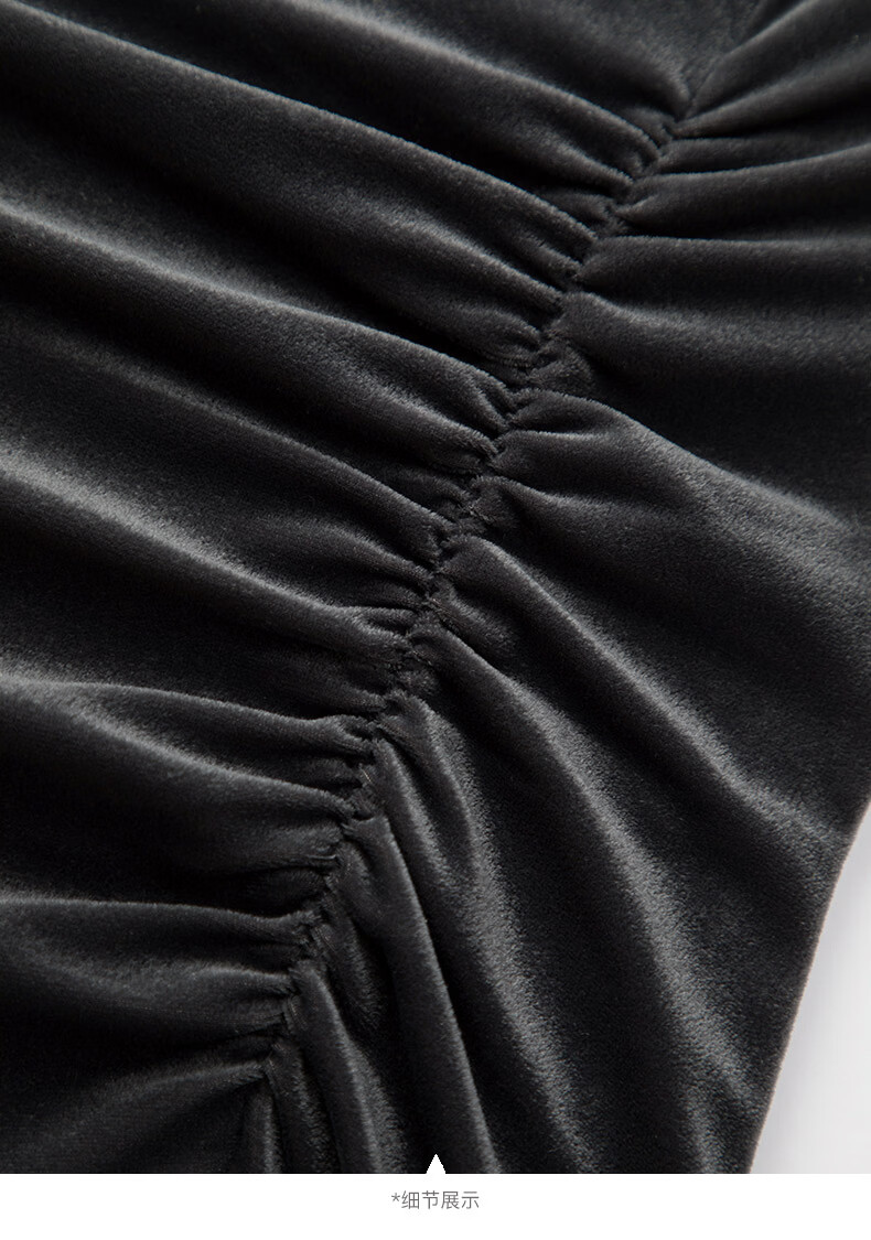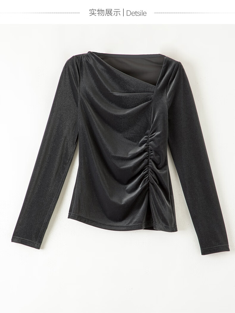 晚白【新品】2026年春款时尚优雅丝绒上衣弹力抽褶修身亲肤打底衫女 深灰色 M