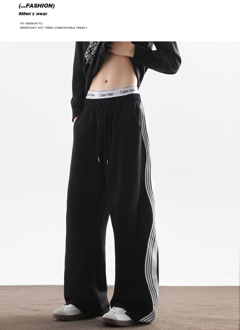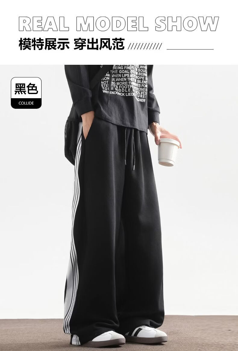 真维斯(Jeanswest)2026春季新款美式弯刀卫裤男士潮牌垂感宽松百搭运动休闲直筒裤 黑色 S