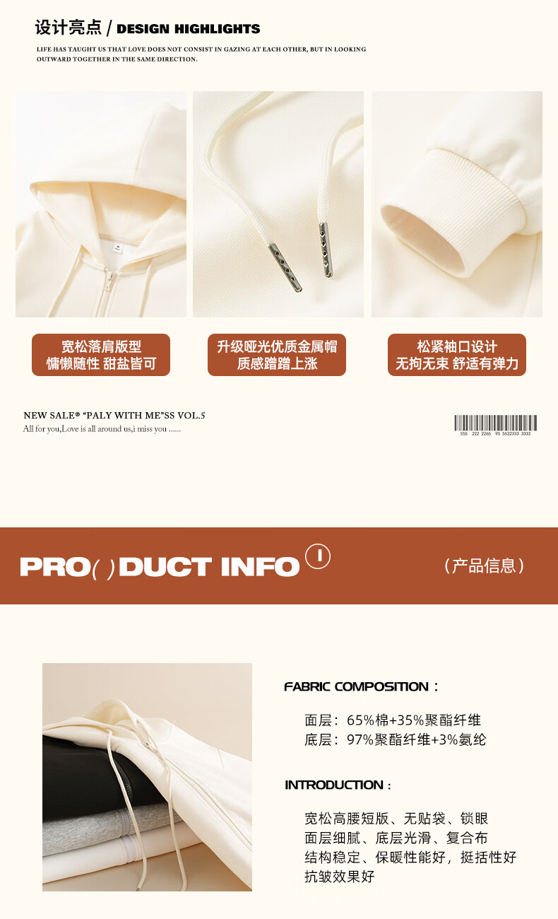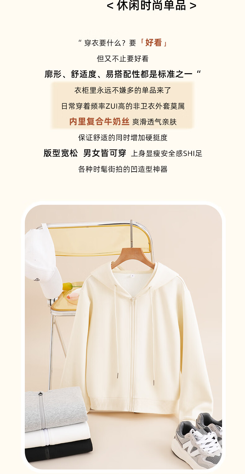 真维斯(Jeanswest)连帽卫衣外套女款春秋2026新款爆款小个子时尚百搭风拉链短款开衫 麻灰 2XL