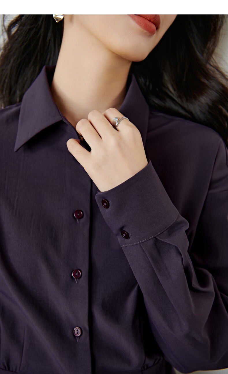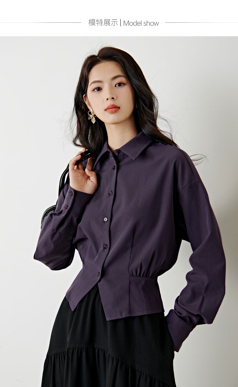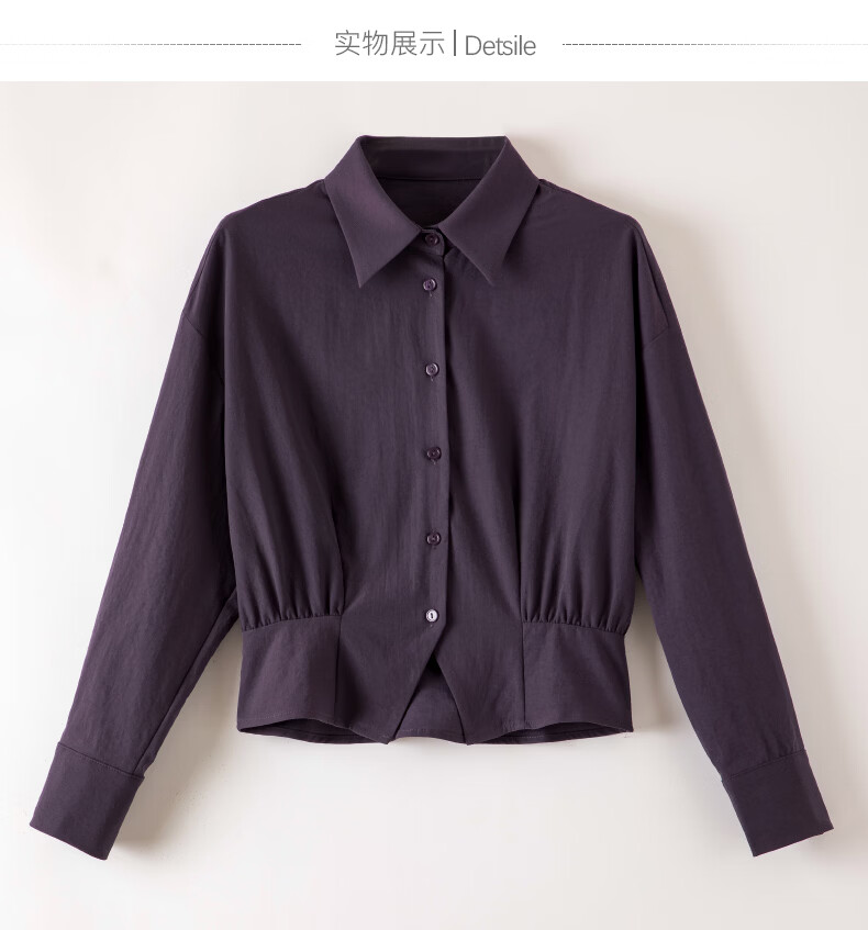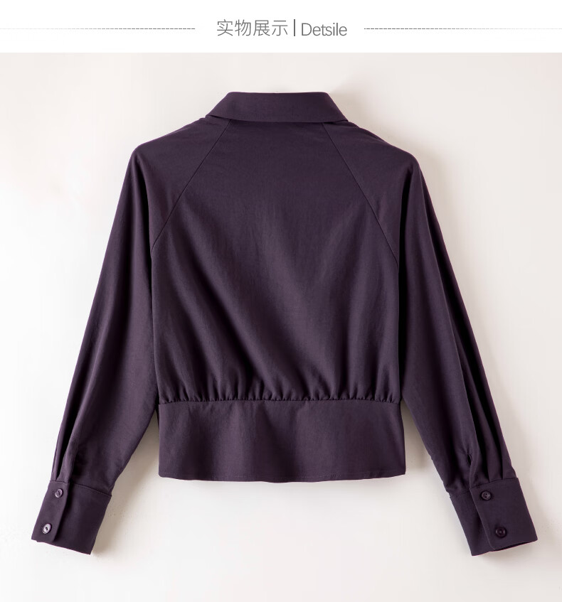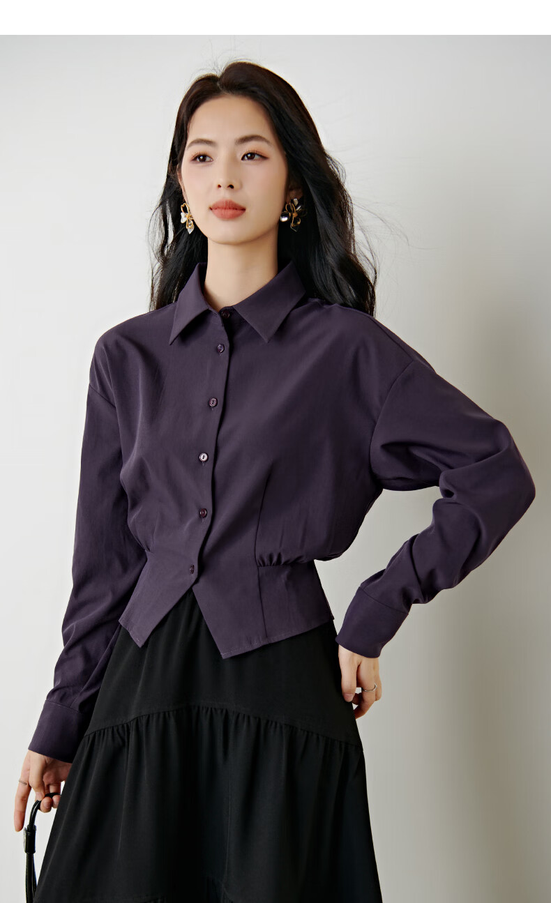 晚白【新品】2026春款翻领法式短款小个子上衣褶皱设计感收腰气质衬衫 紫色 M