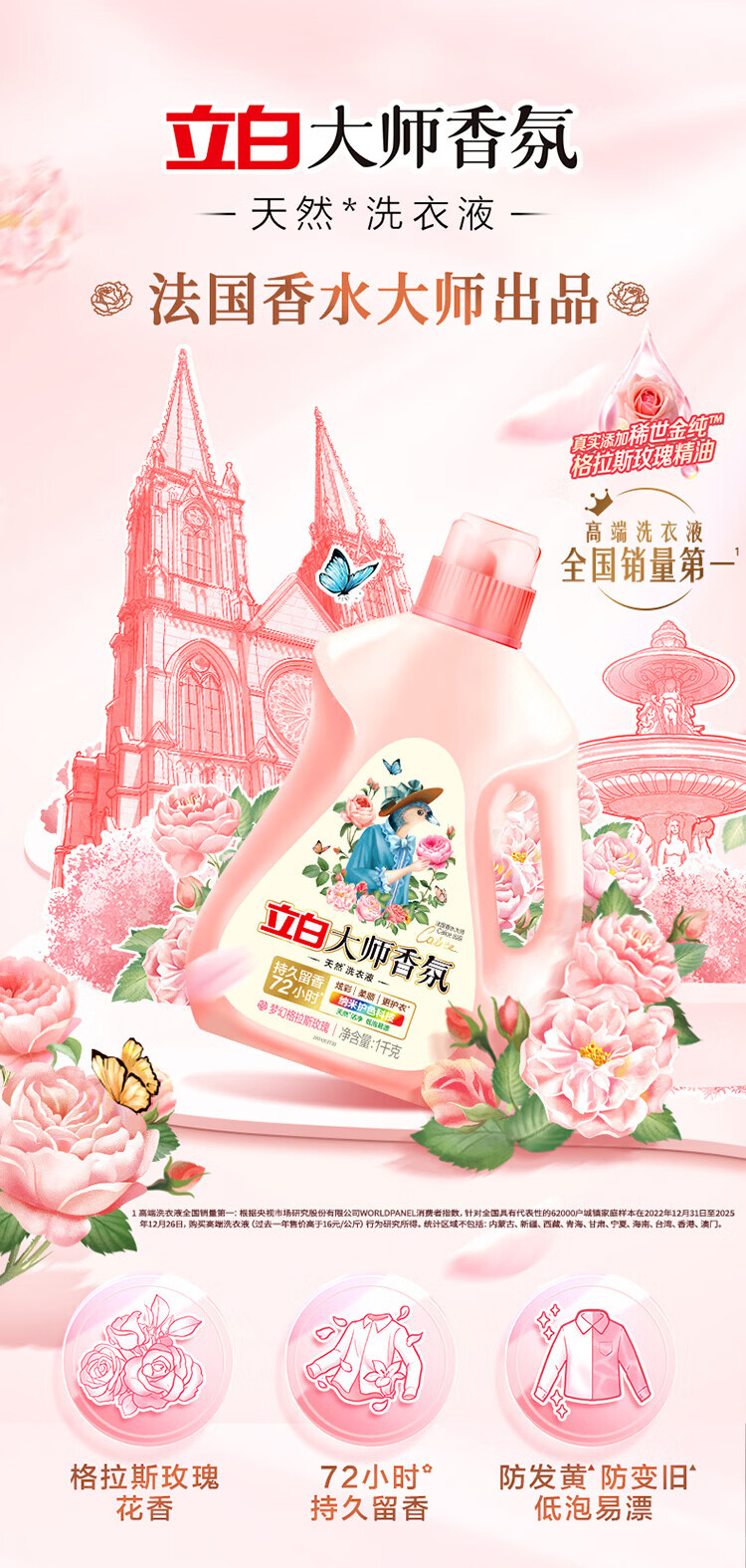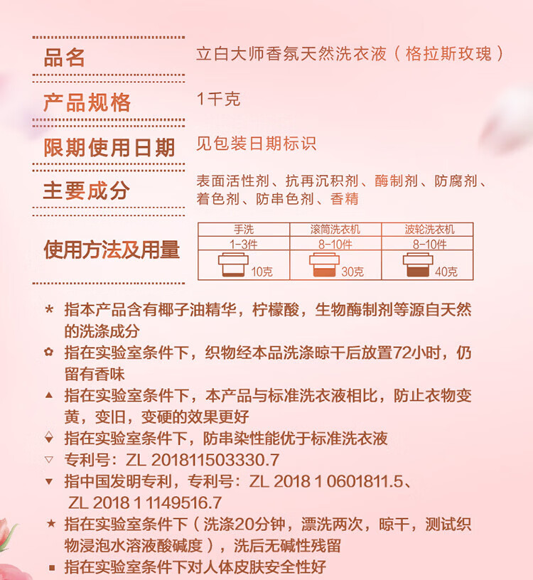 立白大师香氛洗衣液长效持久留香玫瑰花香洁净柔顺护衣实惠装 大师液100g*2袋+御品液80g