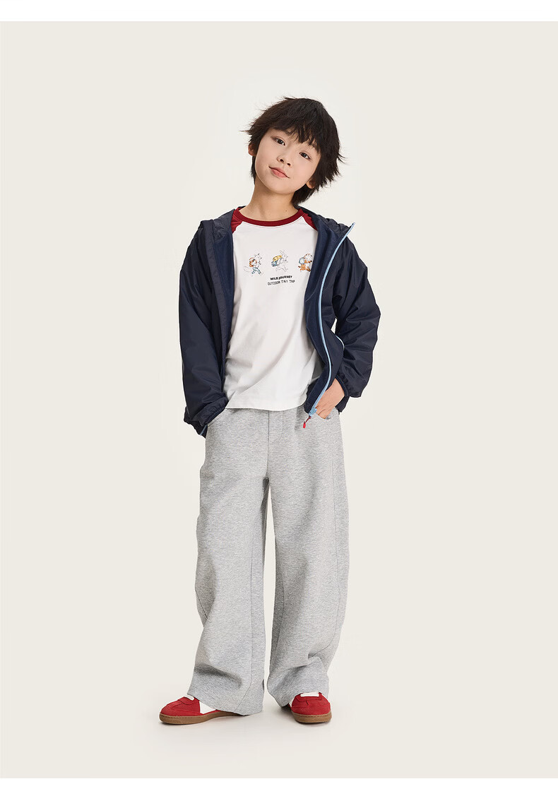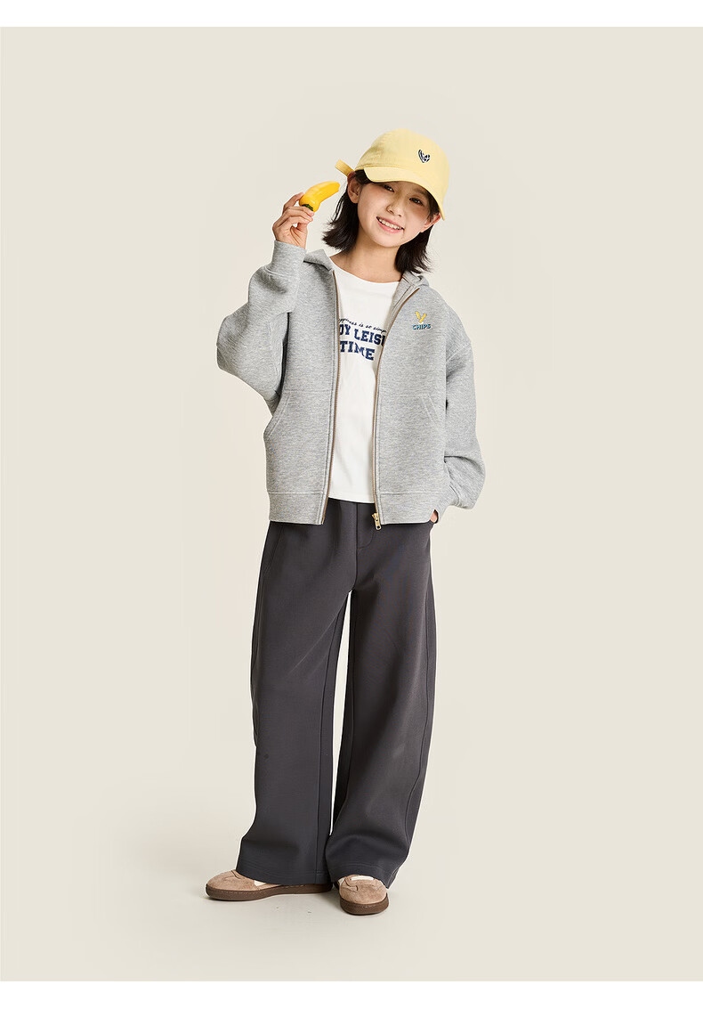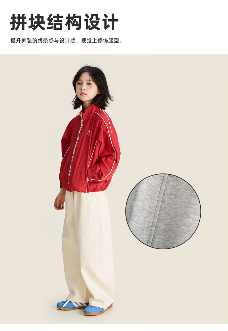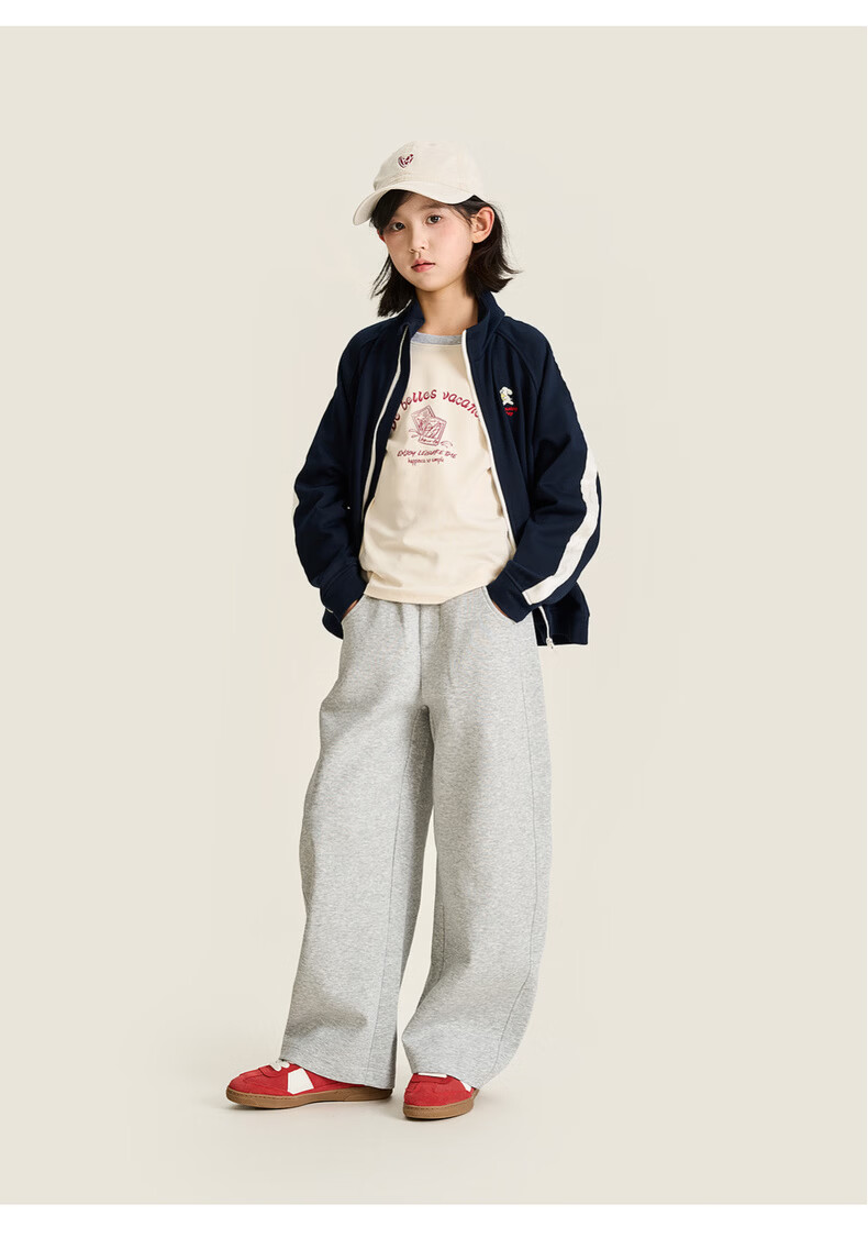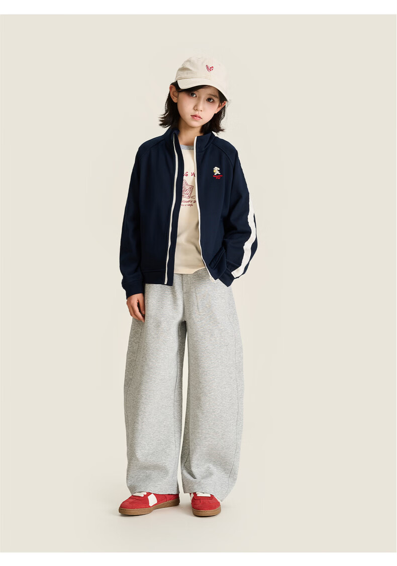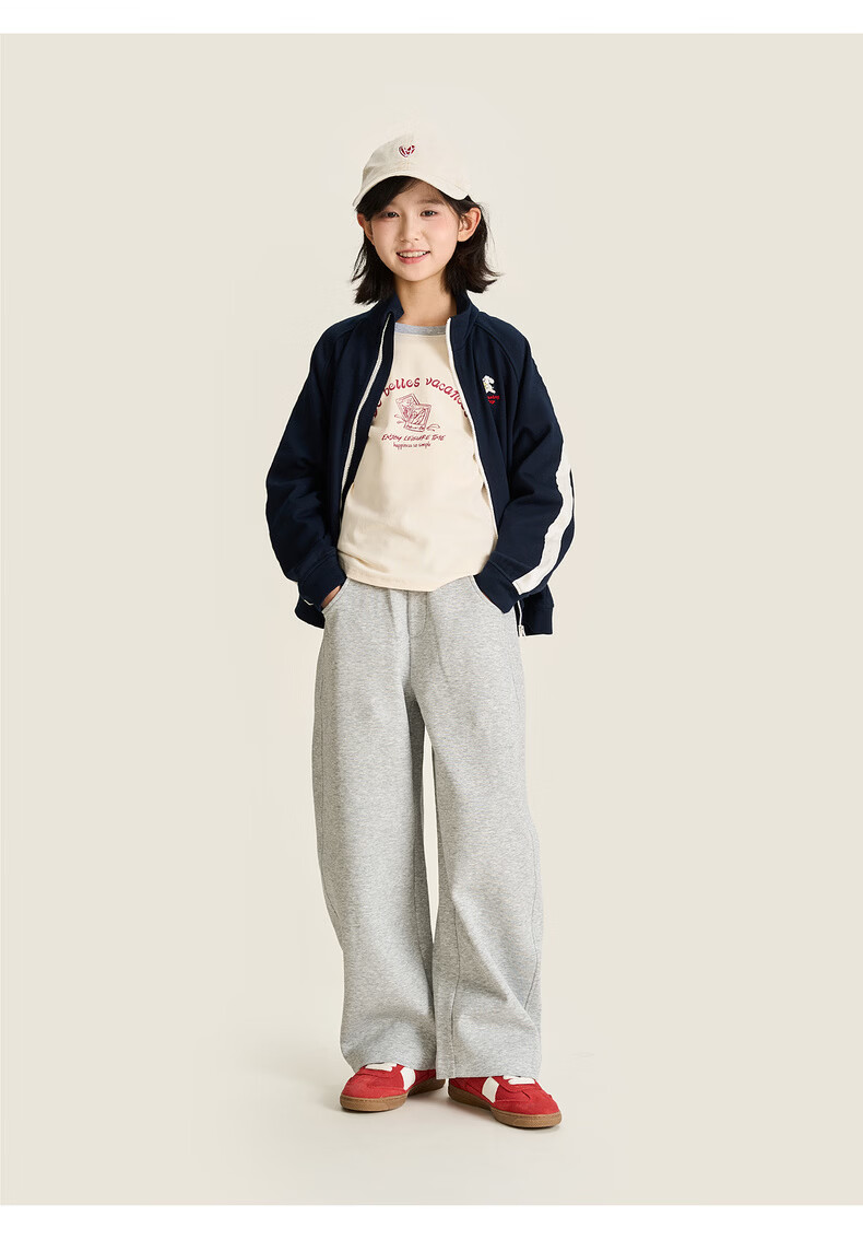 棉叔叔【果冻棉香蕉裤】儿童2026春新品女童休闲裤廓形拼块针织裤男童 麻灰 150 150