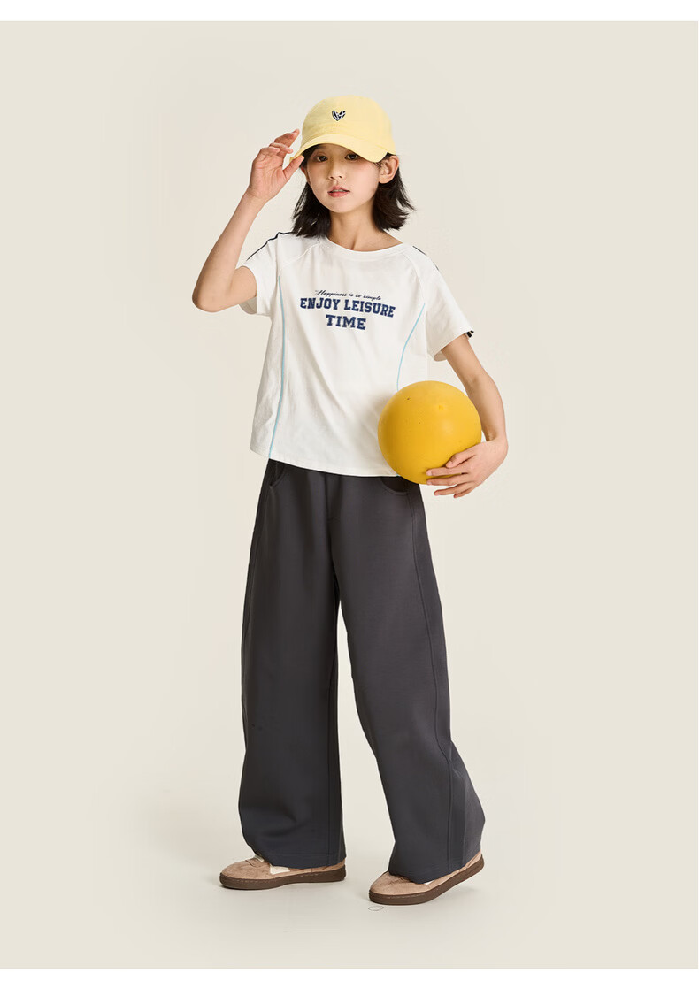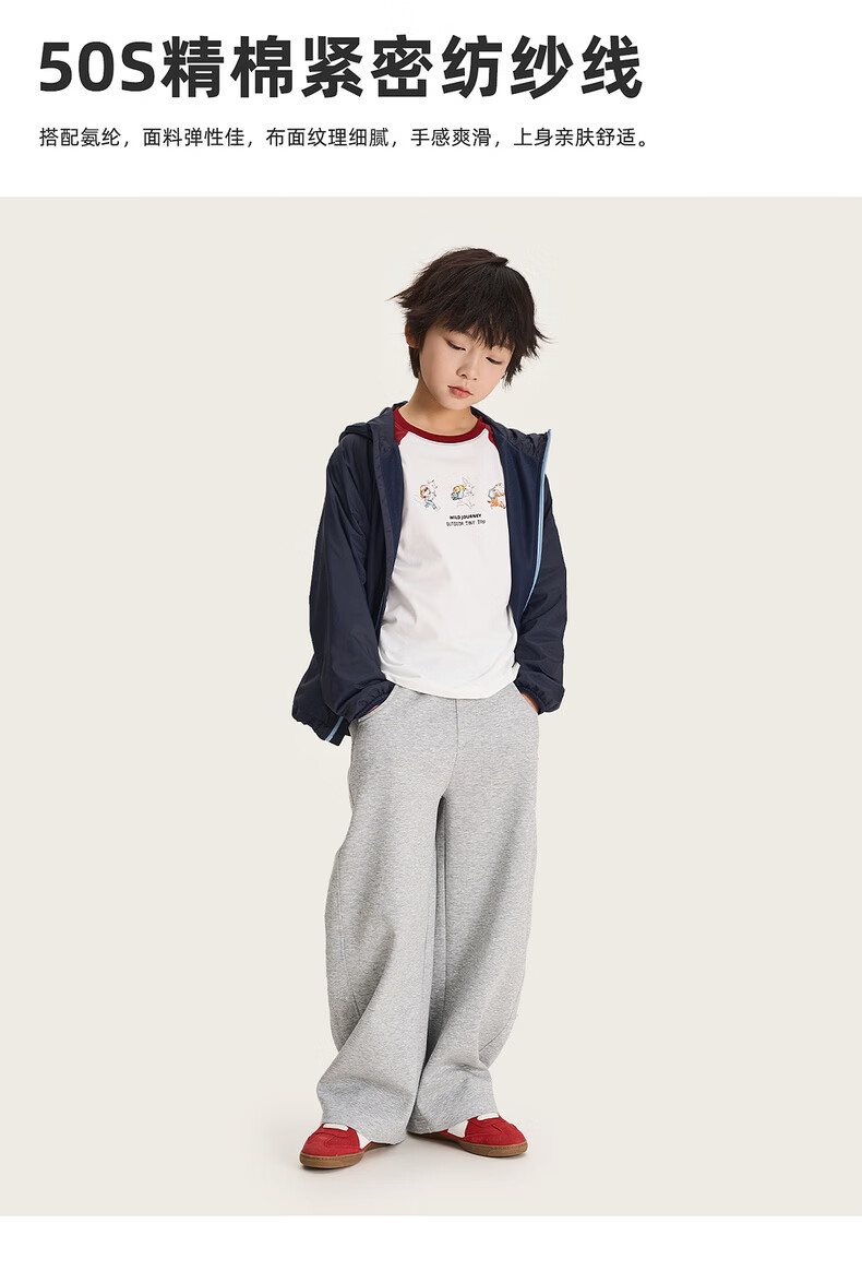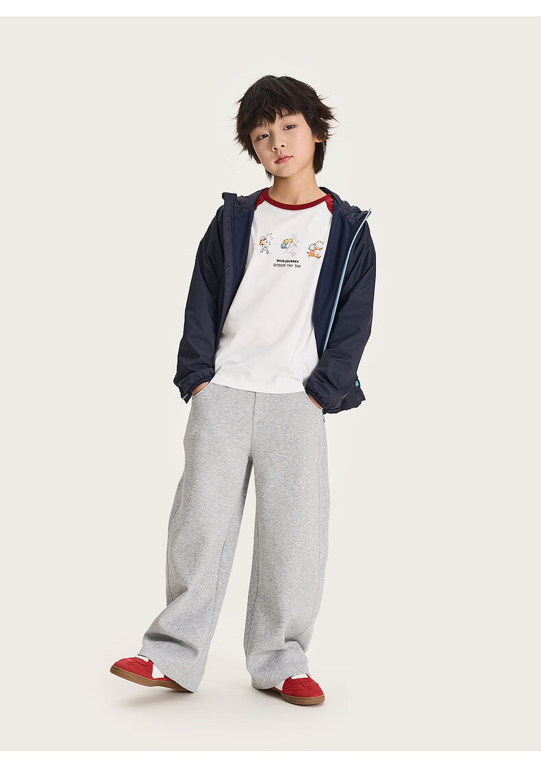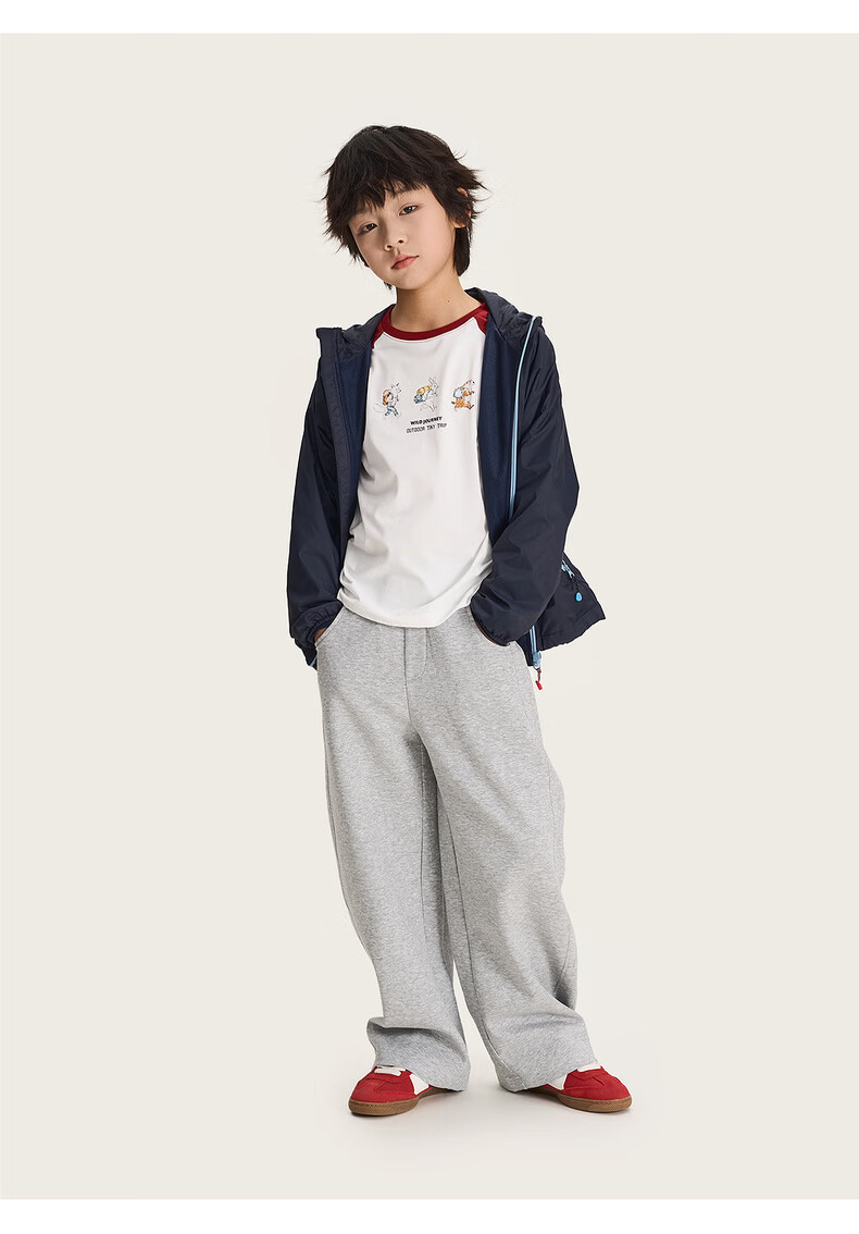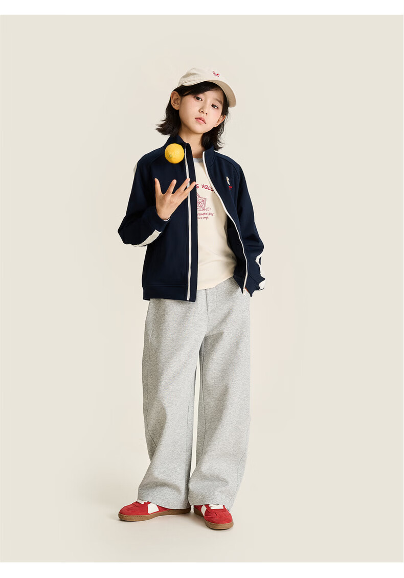 棉叔叔【果冻棉香蕉裤】儿童2026春新品女童休闲裤廓形拼块针织裤男童 麻灰 150 150