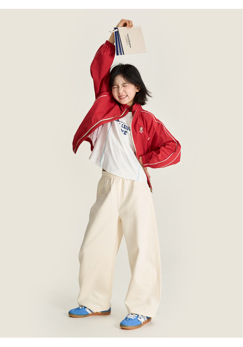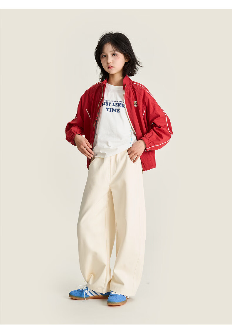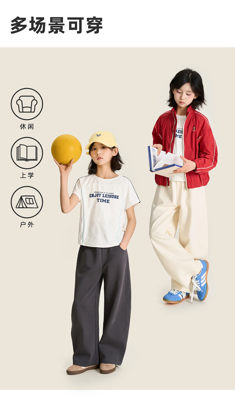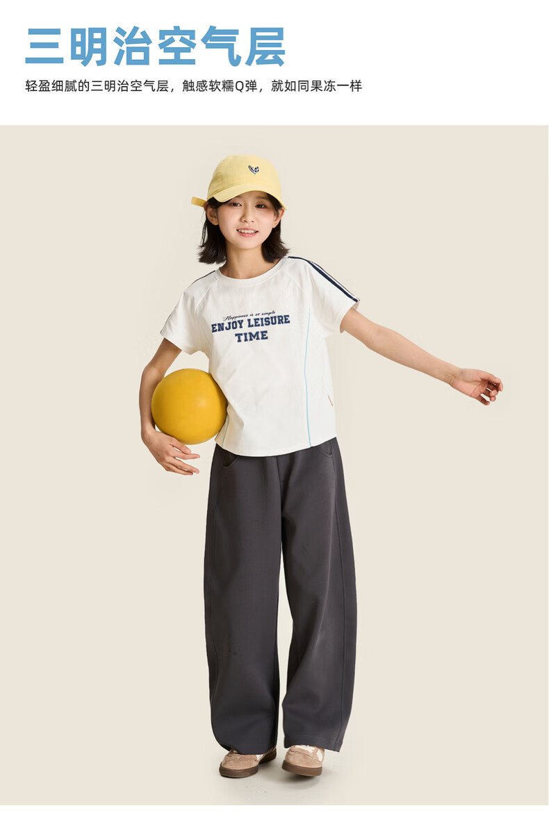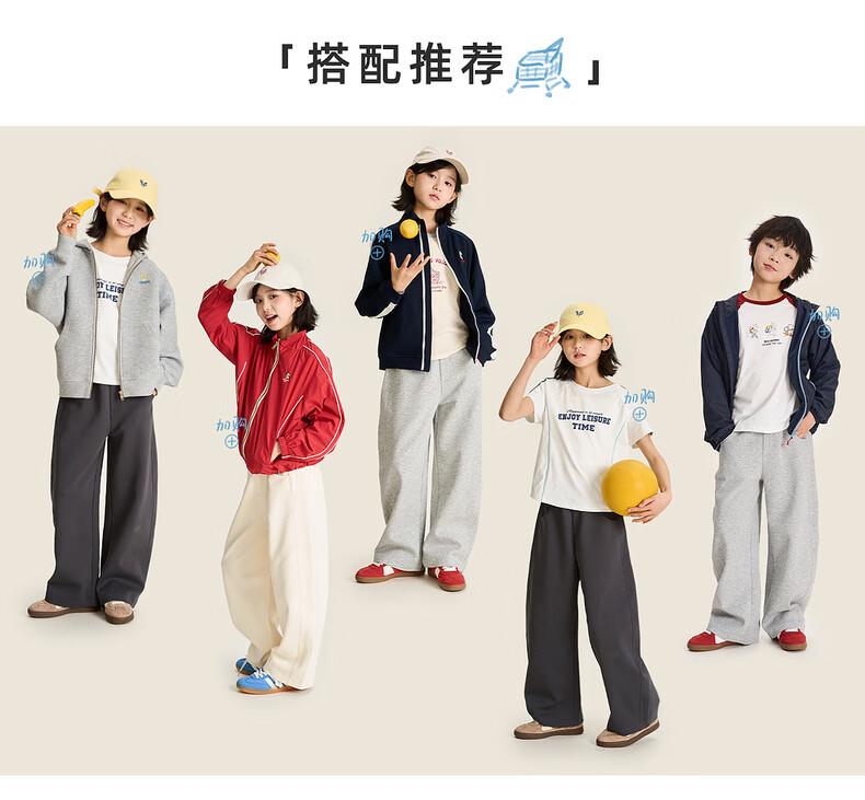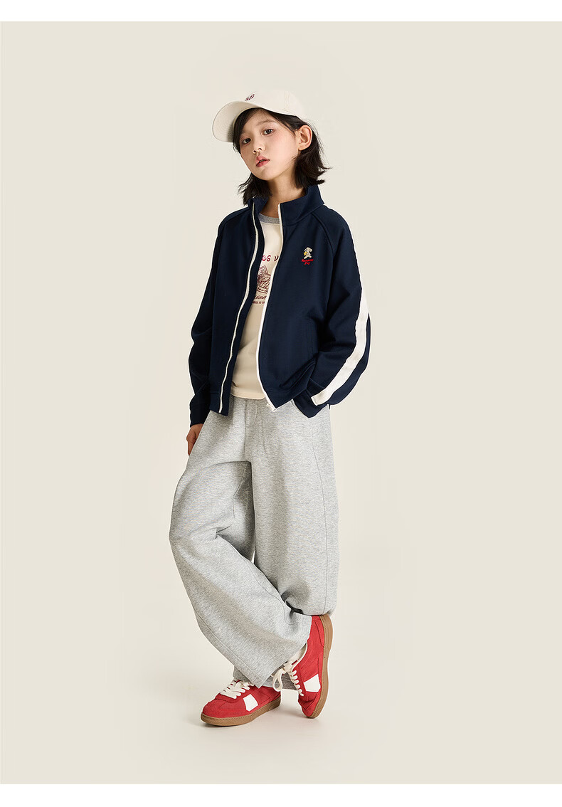 棉叔叔【果冻棉香蕉裤】儿童2026春新品女童休闲裤廓形拼块针织裤男童 麻灰 150 150