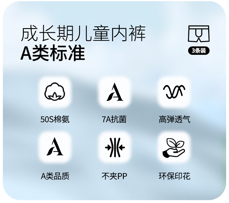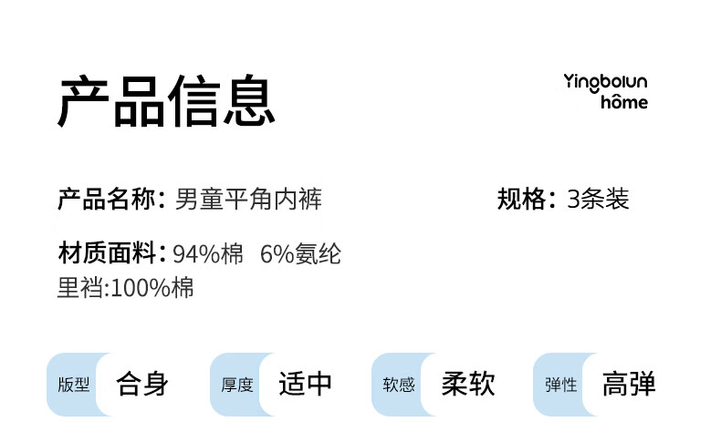 英博伦男儿童内裤纯棉A类男童平角裤宝宝四角大童抑菌短裤 10985 儿童内裤 3条 110