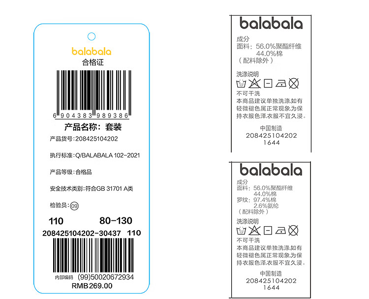 巴拉巴拉童装儿童套装女童男小童两件套2025秋冬舒适可爱衣服208425104202