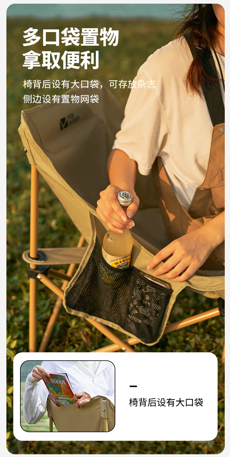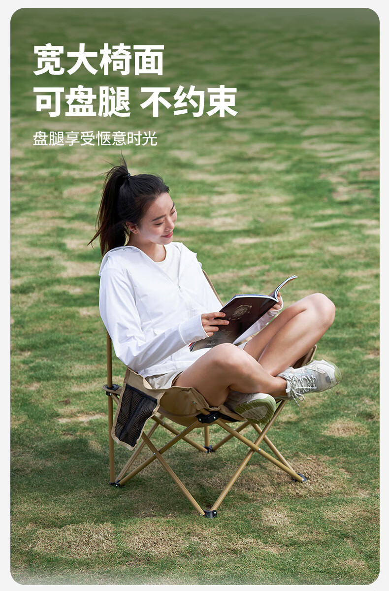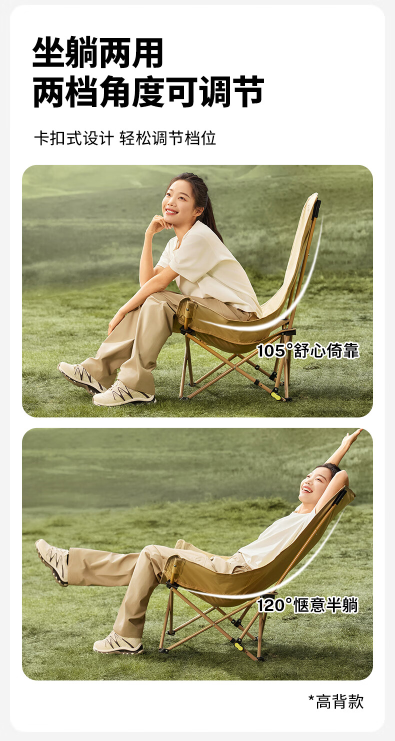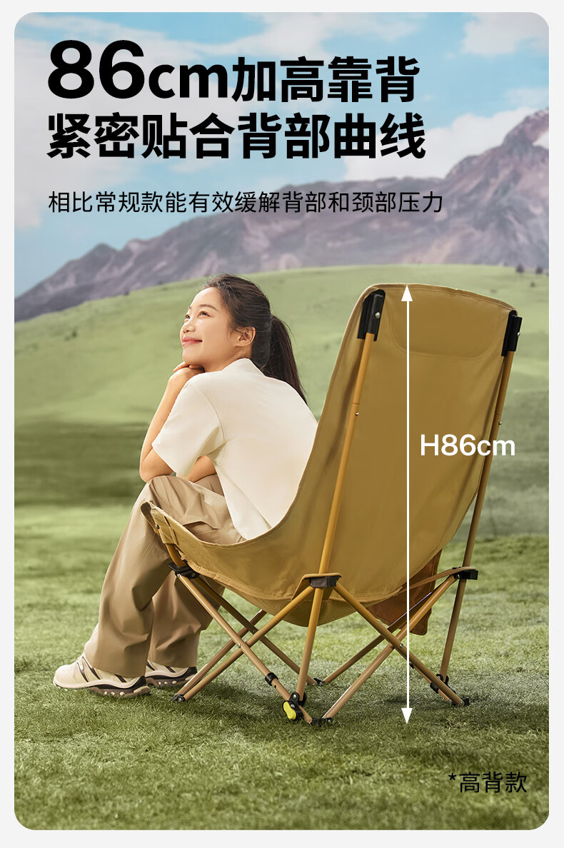 牧高笛(MOBIGARDEN)高背月亮椅可调节 户外露营野餐钓鱼折叠椅 NX25665002 细沙黄