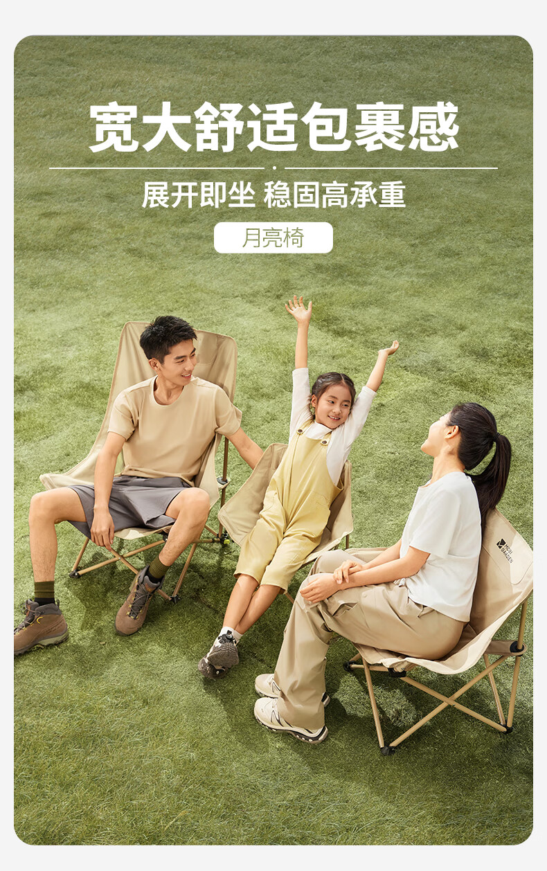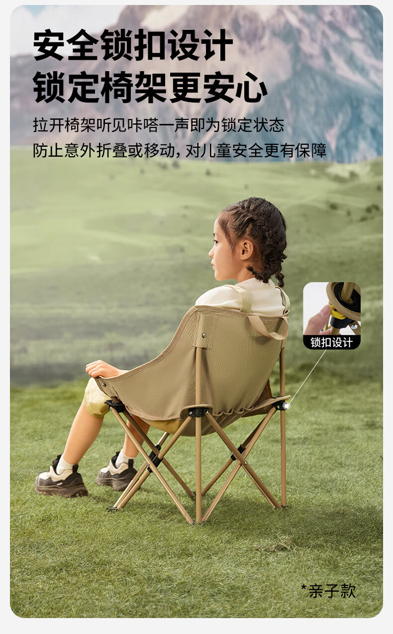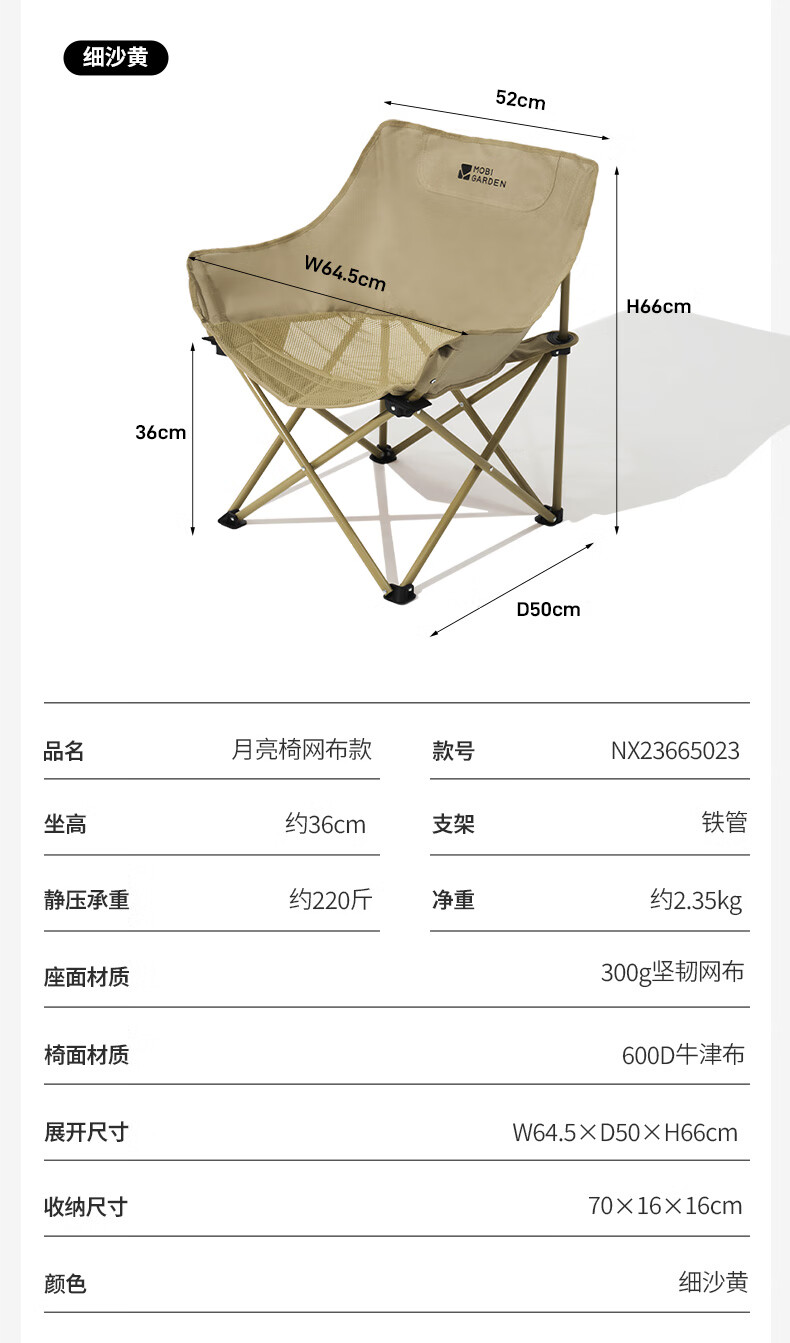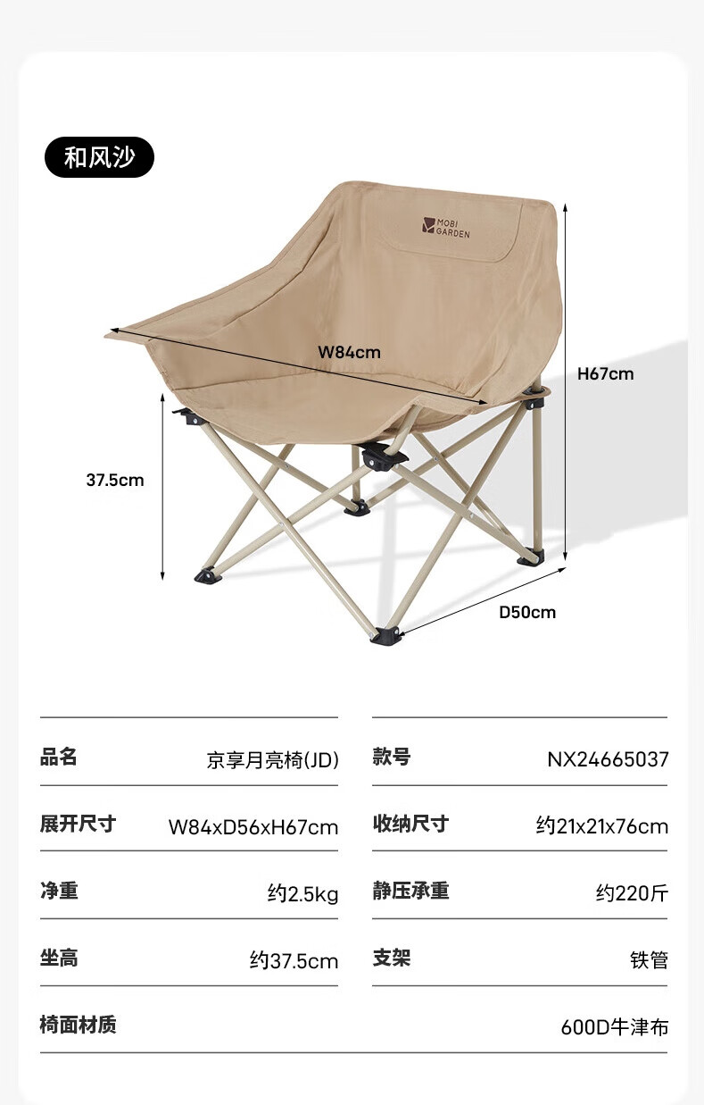 牧高笛(MOBIGARDEN)高背月亮椅可调节 户外露营野餐钓鱼折叠椅 NX25665002 细沙黄