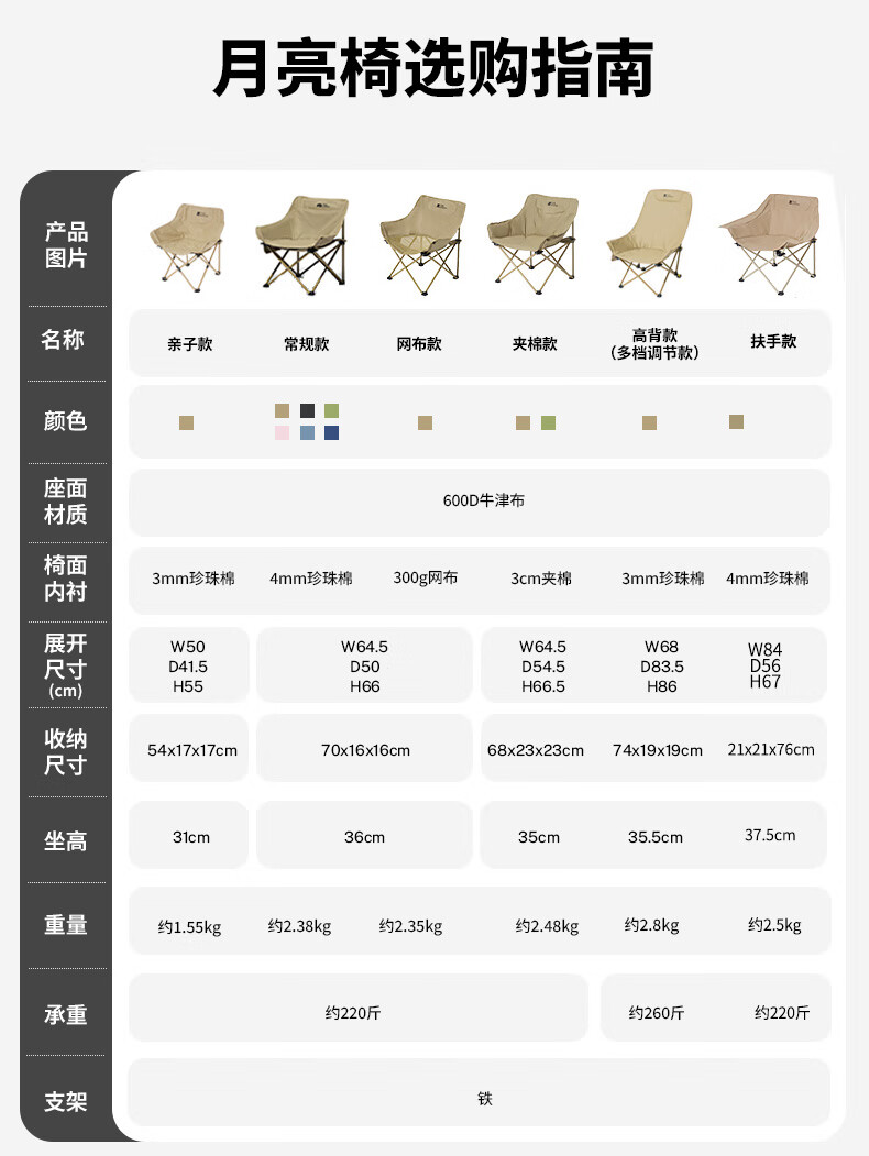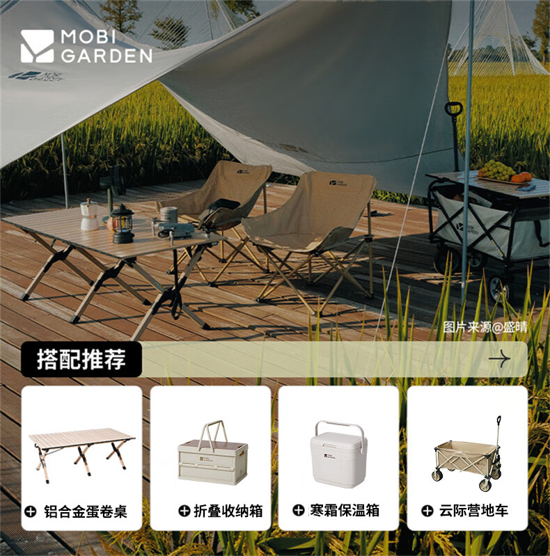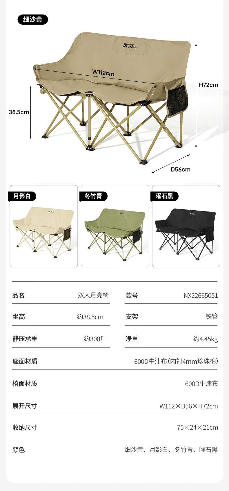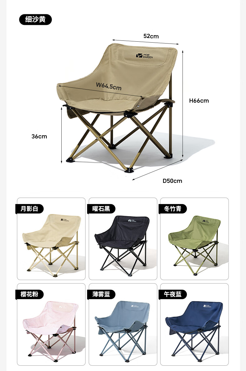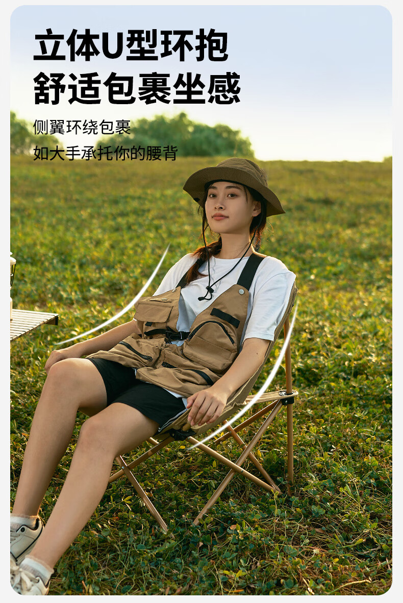 牧高笛(MOBIGARDEN)高背月亮椅可调节 户外露营野餐钓鱼折叠椅 NX25665002 细沙黄