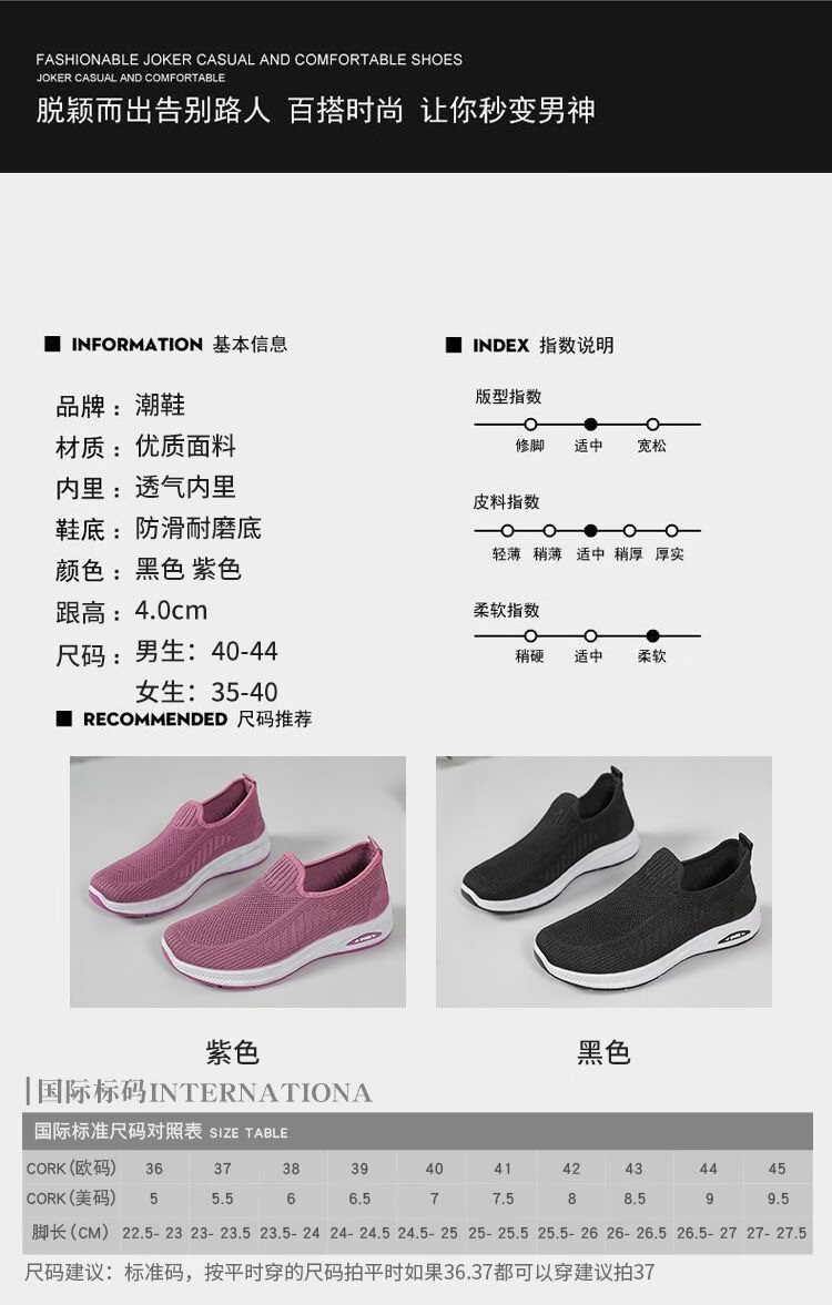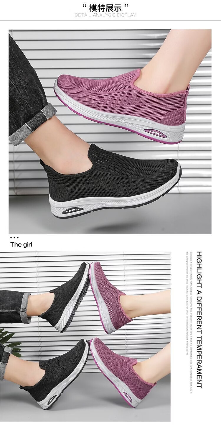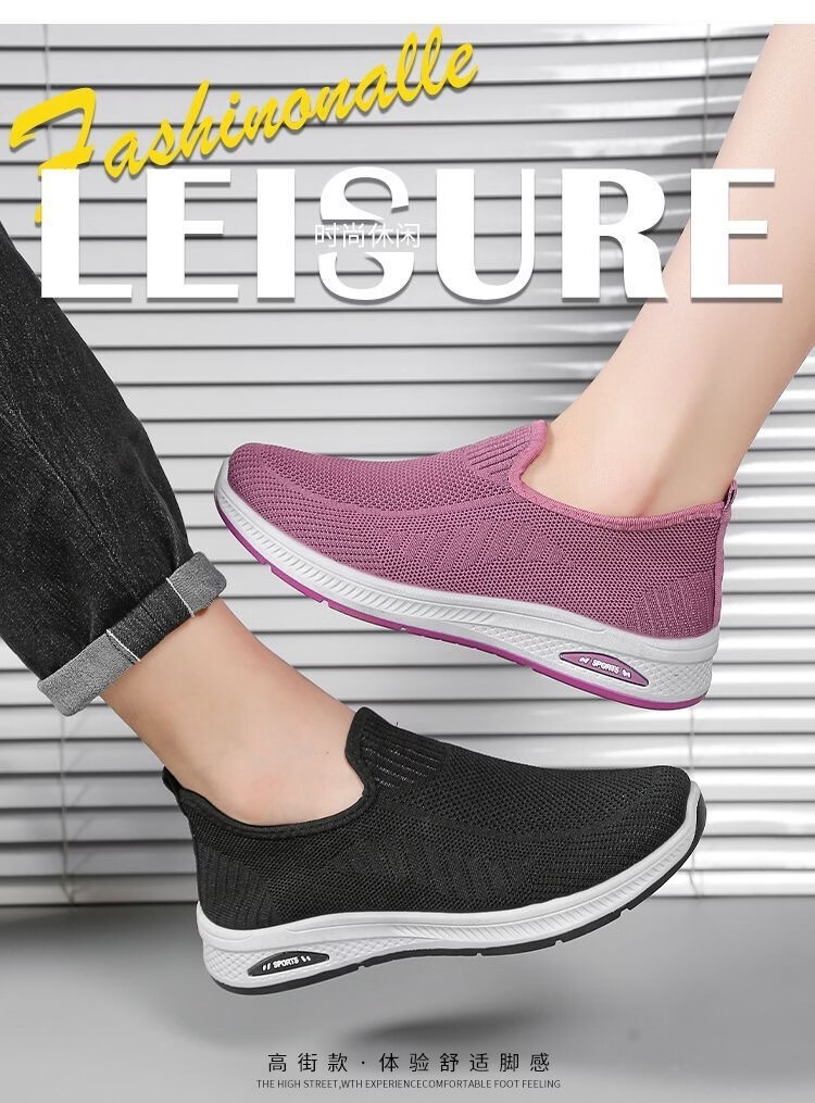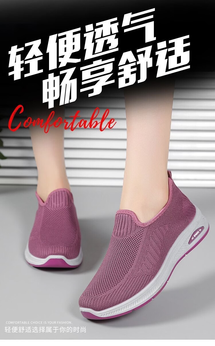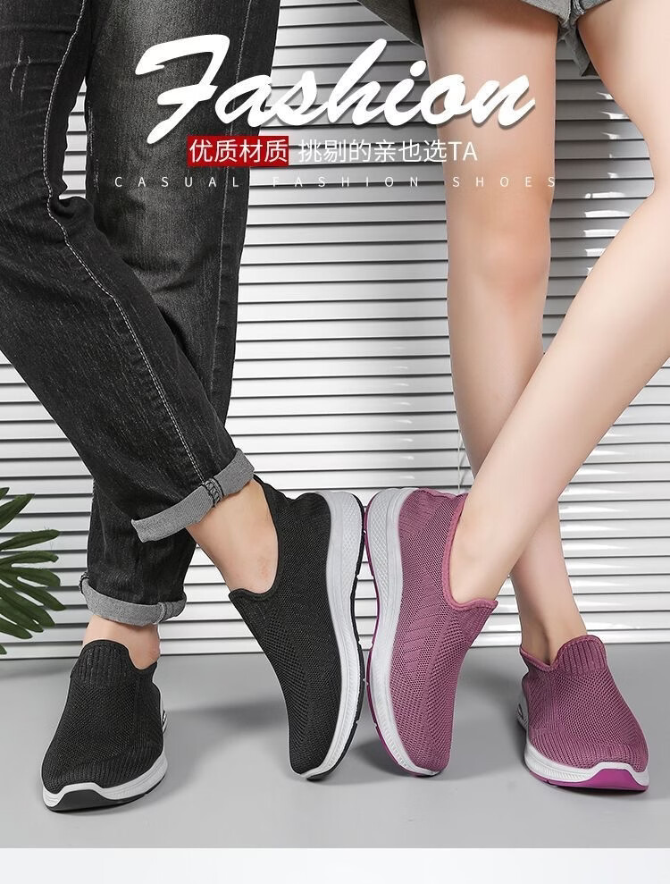 福虹辰2026新款鞋子中老年爸爸妈妈鞋休闲女鞋飞织透气单鞋一脚蹬布鞋Z 紫色 35