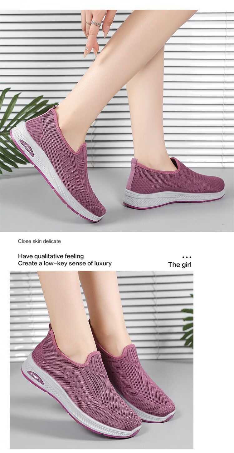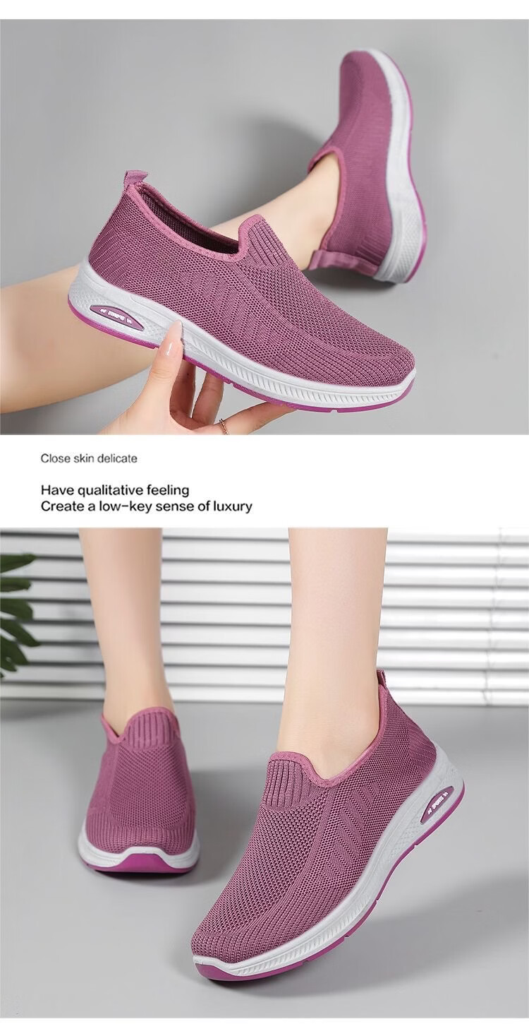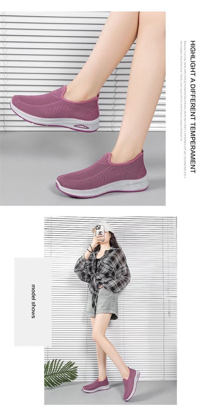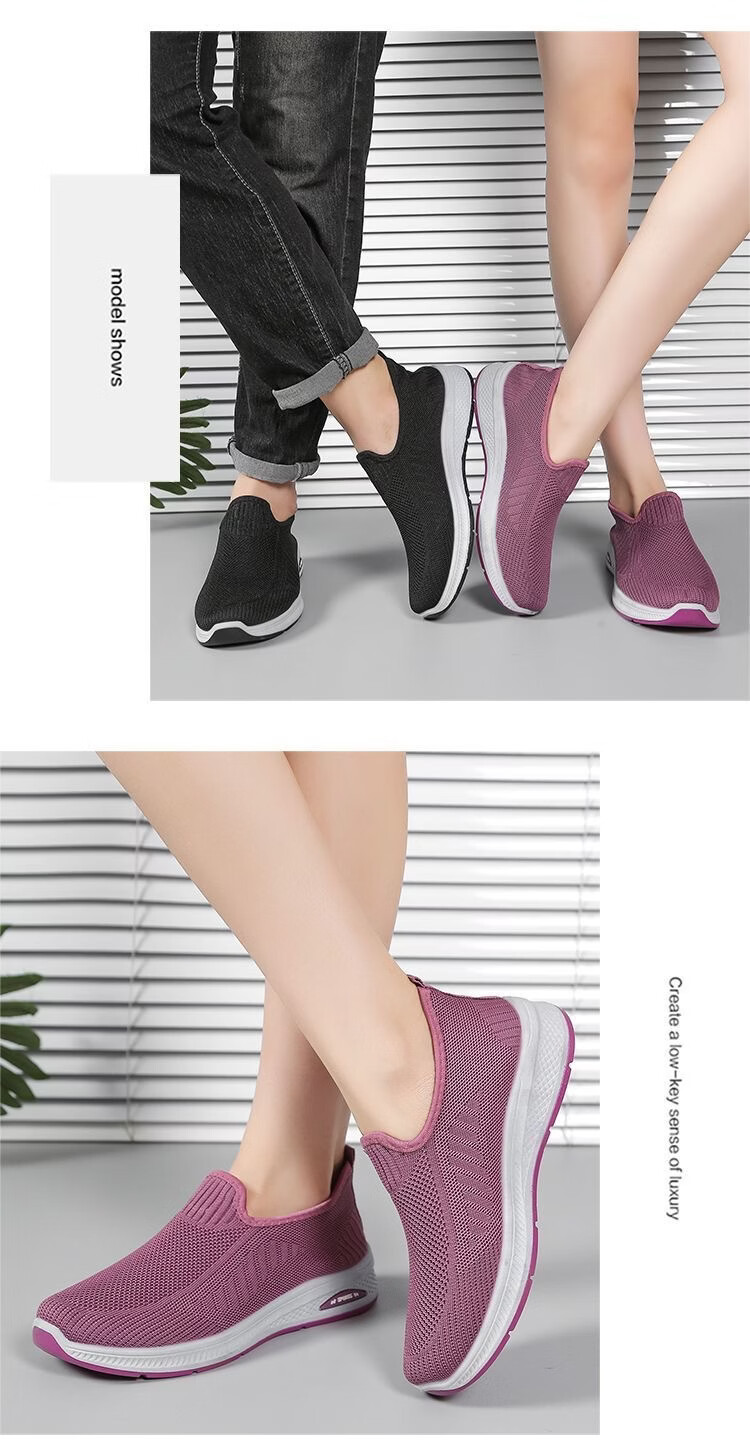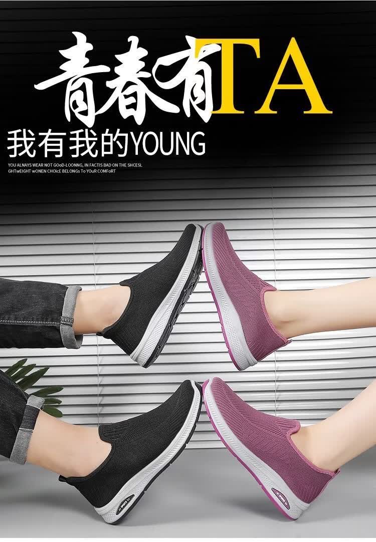 福虹辰2026新款鞋子中老年爸爸妈妈鞋休闲女鞋飞织透气单鞋一脚蹬布鞋Z 紫色 35