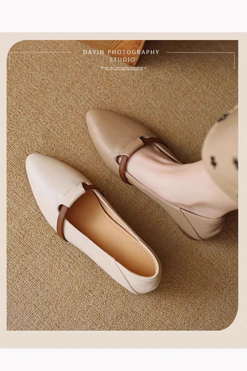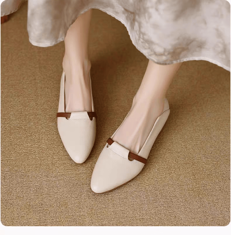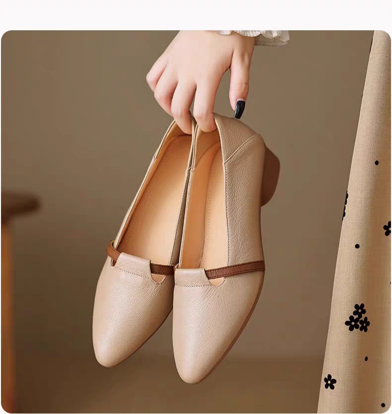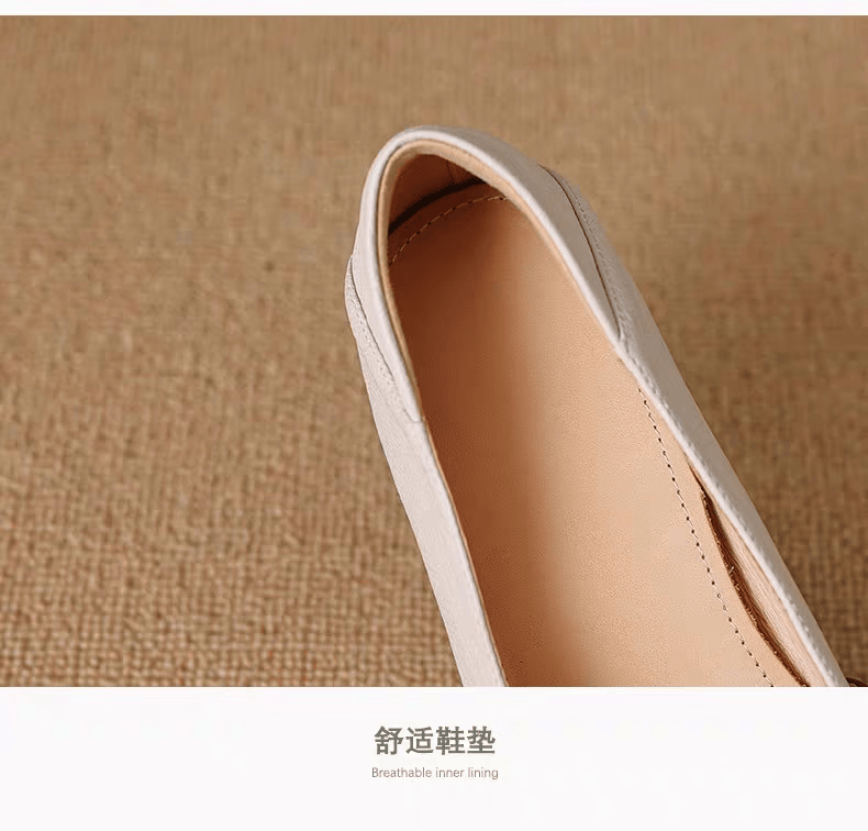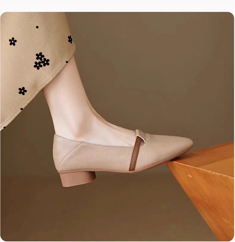啄木鸟真软皮2026秋季新款浅口尖头法式皮鞋平底单鞋女配裙子外穿女 黑色 35