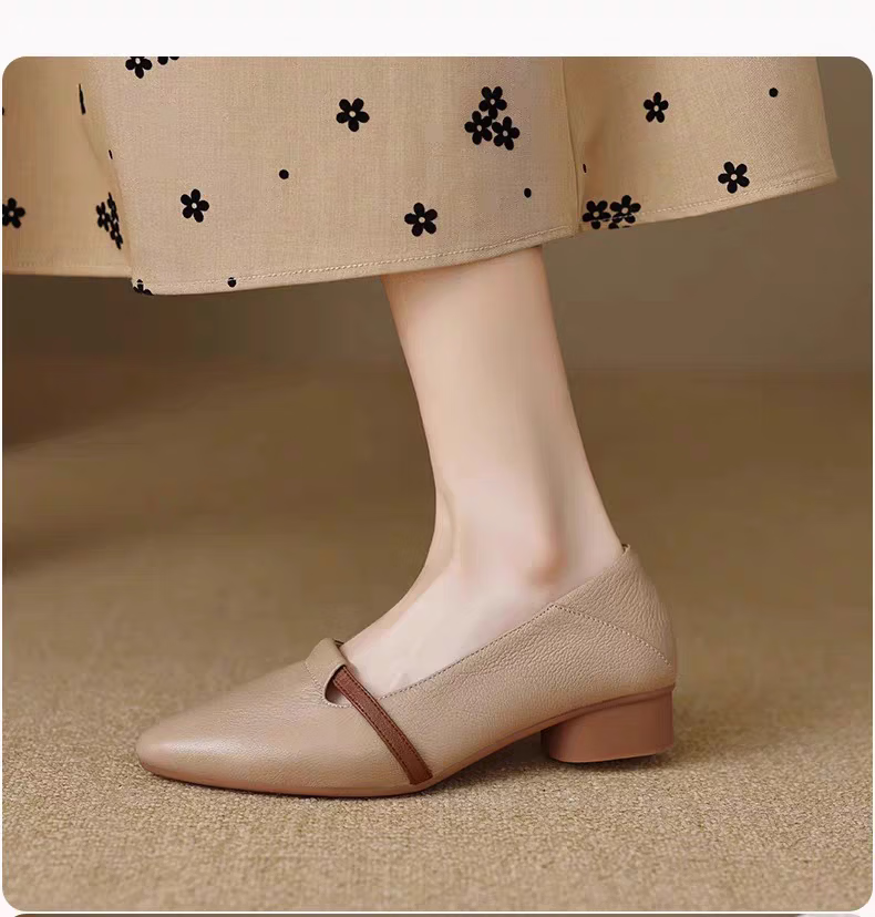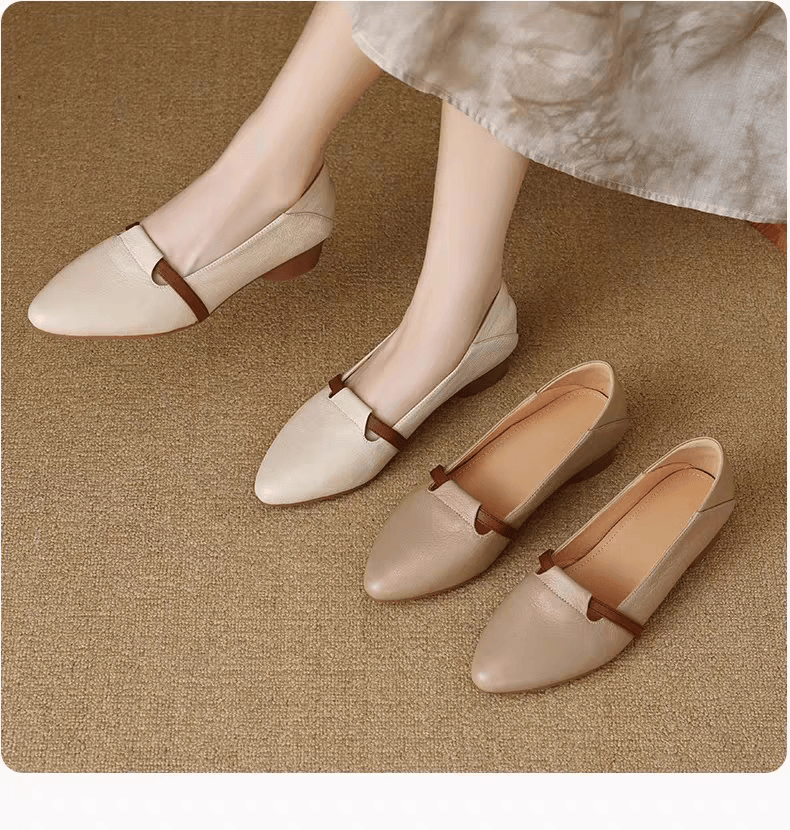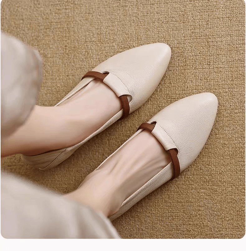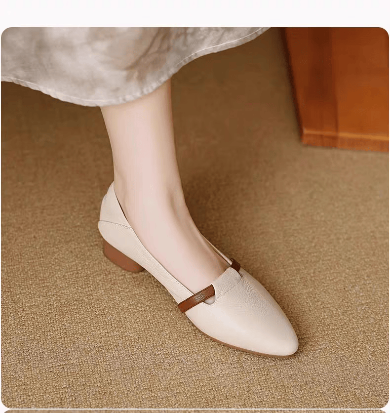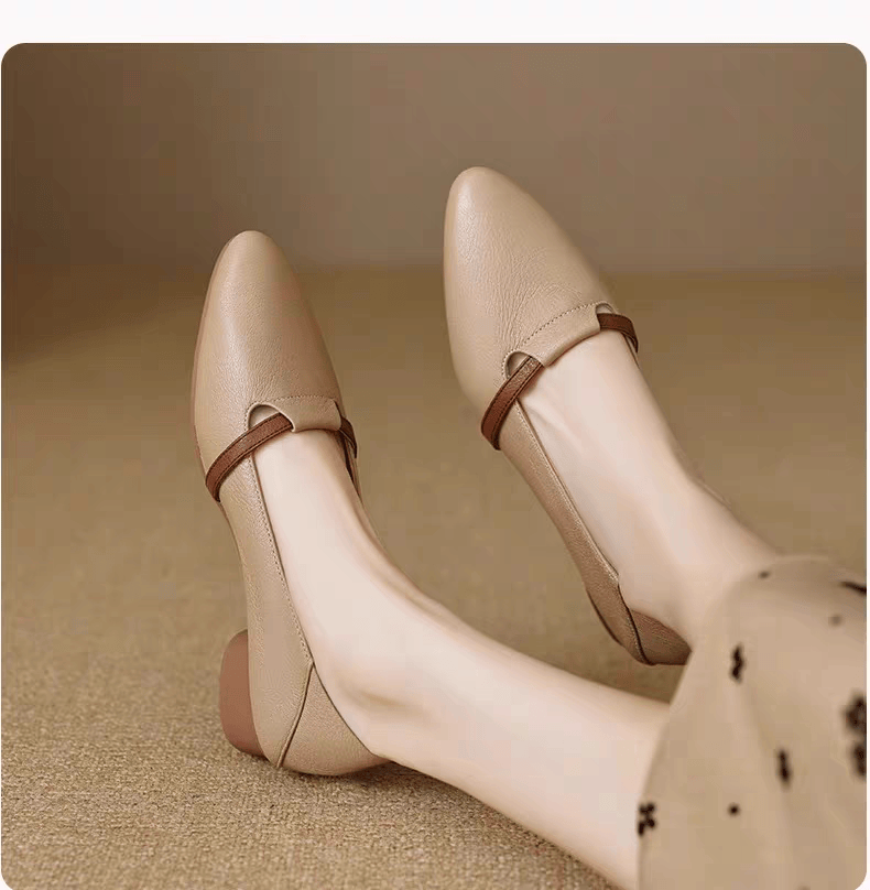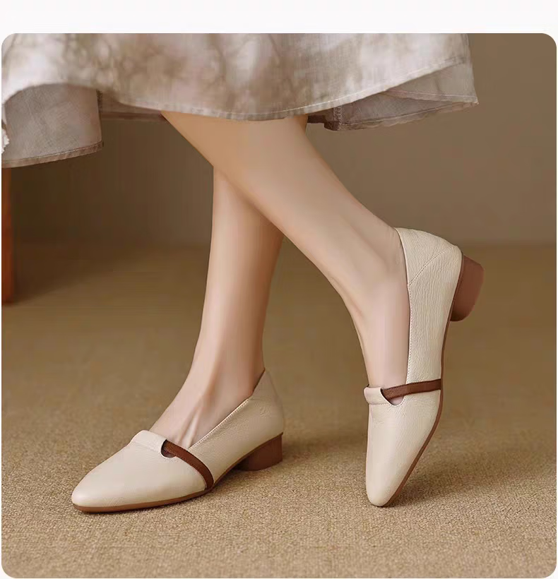 啄木鸟真软皮2026秋季新款浅口尖头法式皮鞋平底单鞋女配裙子外穿女 黑色 35