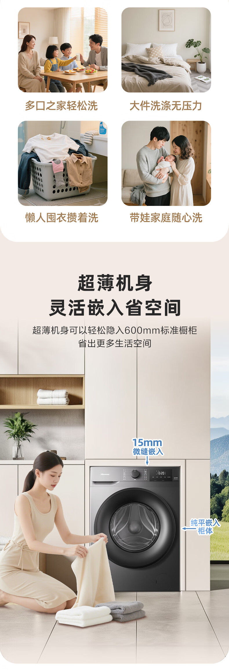 海信(Hisense)全自动滚筒单洗洗衣机 12KG超薄高洗净比一级能效 出租家用WF120A0Q-7以旧换新家电补贴 京东自营