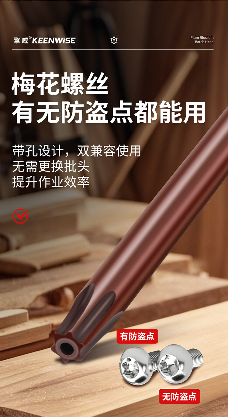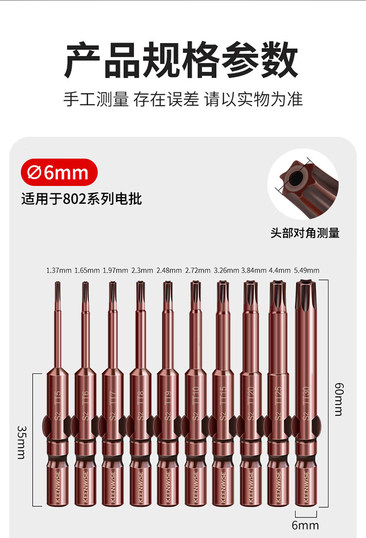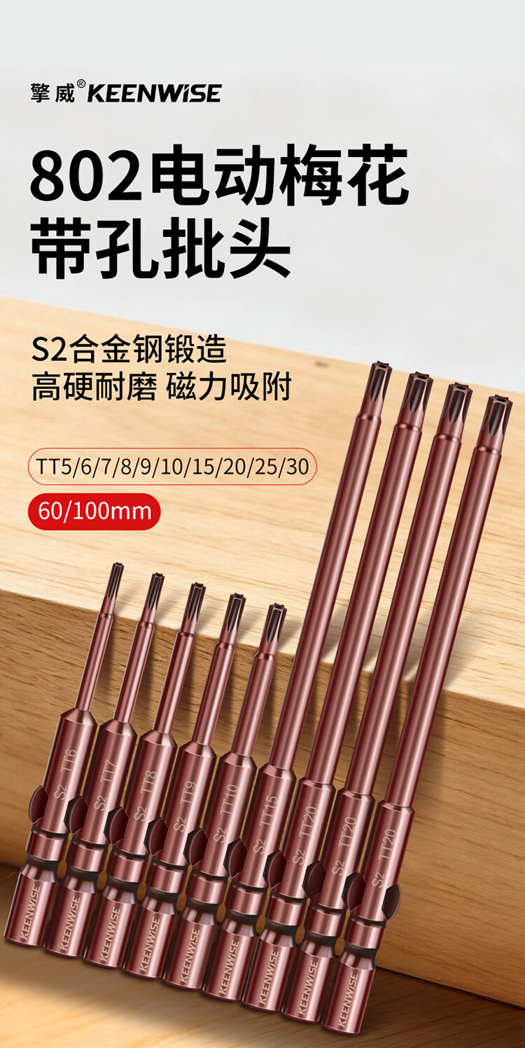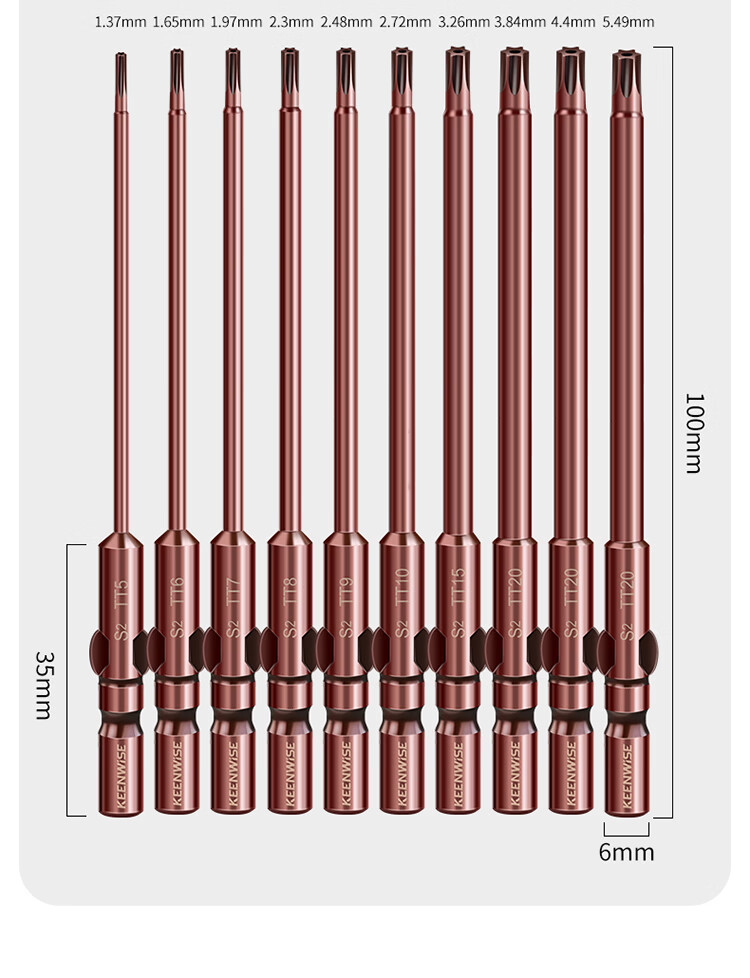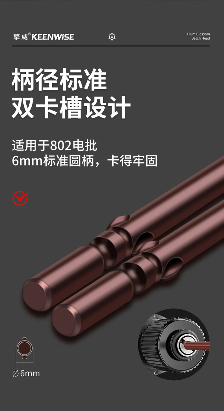 擎威802电动螺丝刀梅花批头加长高硬度六星带中孔批咀星型强磁起子头 尾6mm粗*长度60mm(10种各一支)