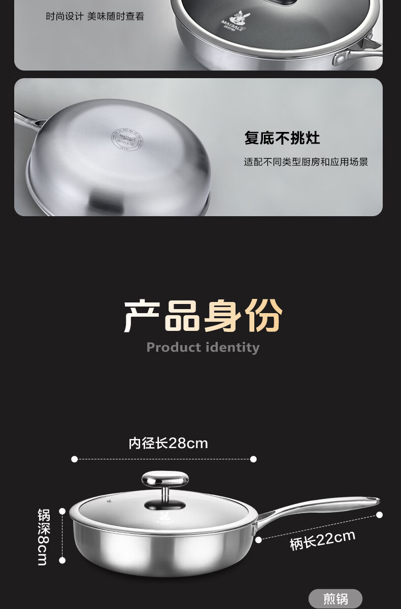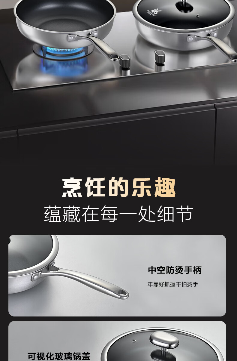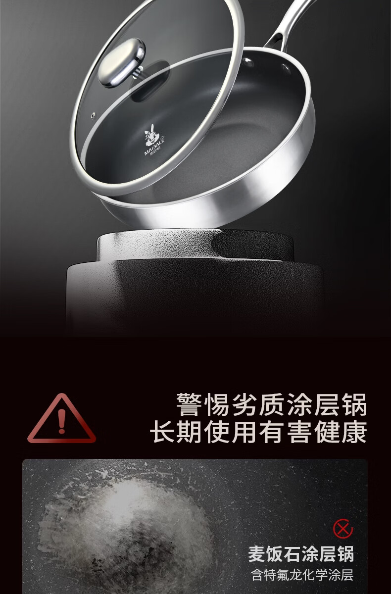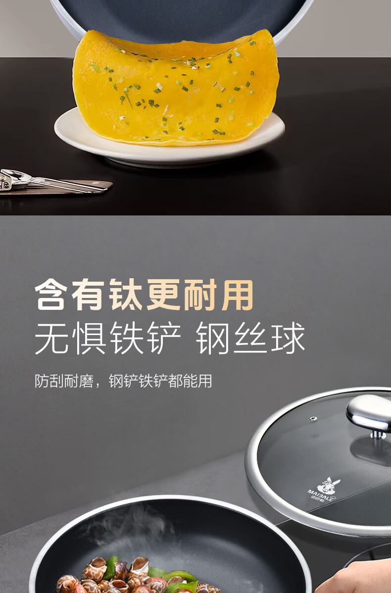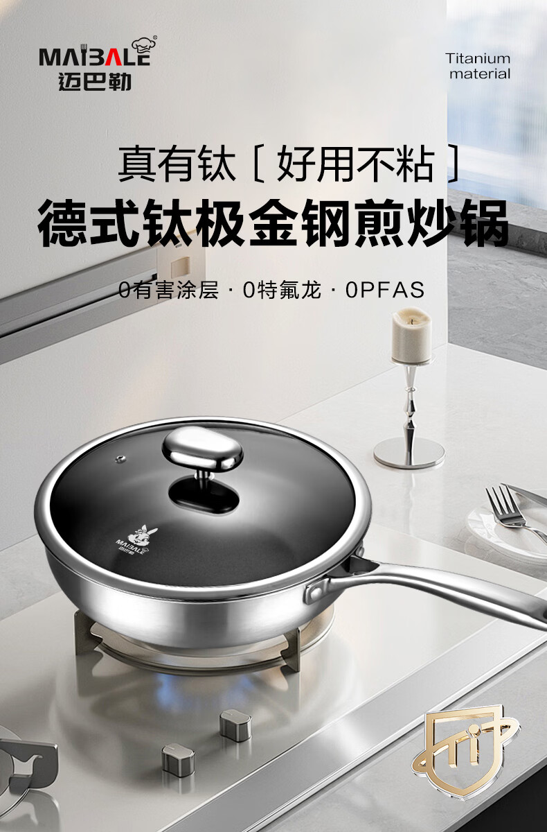 迈巴勒 德式钛极金刚煎炒锅健康不粘锅家用无油烟轻便耐用燃气通用
