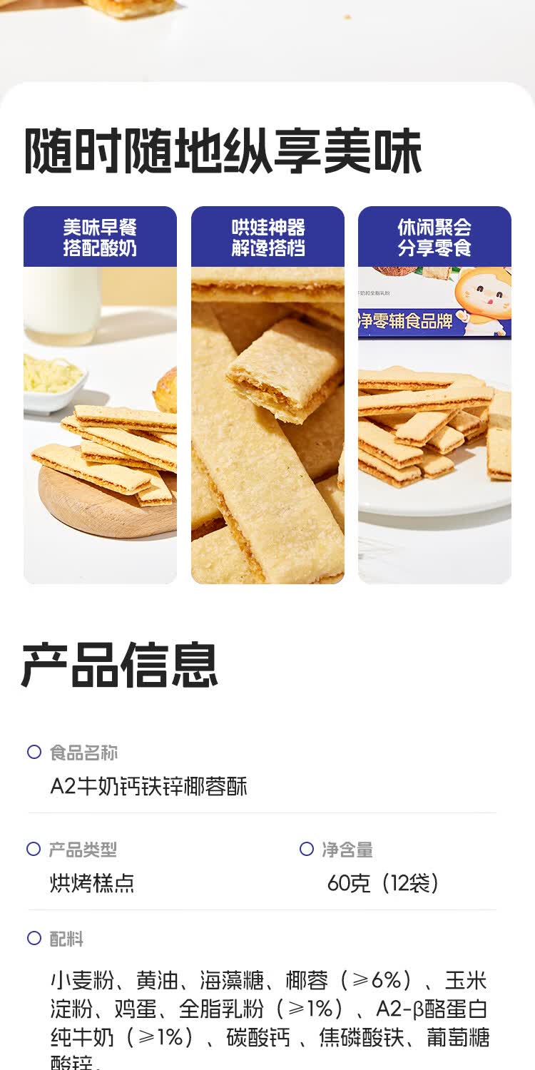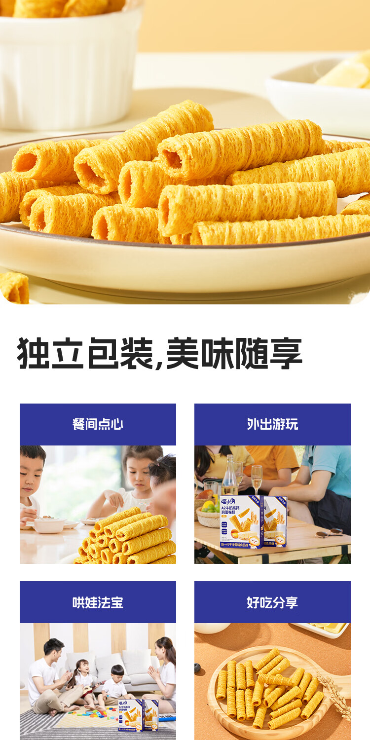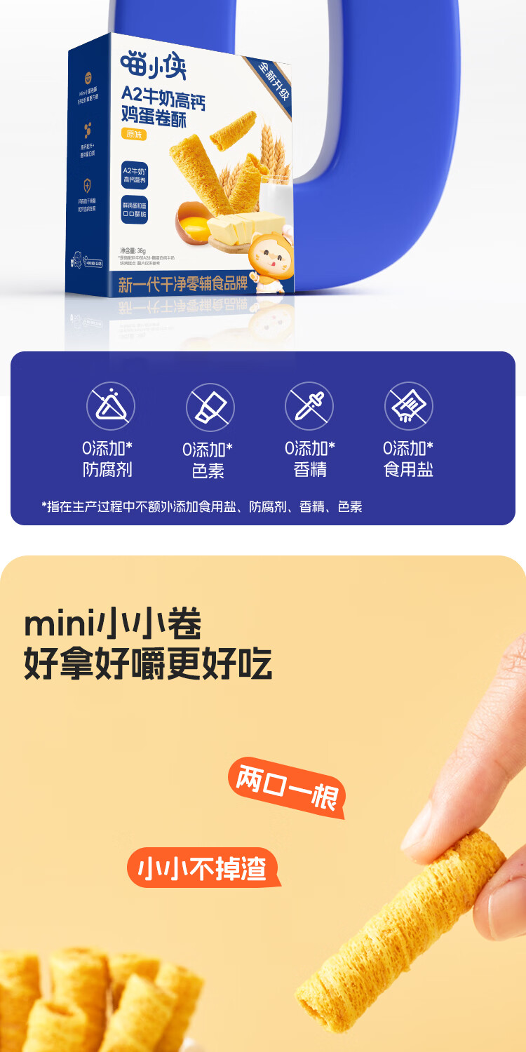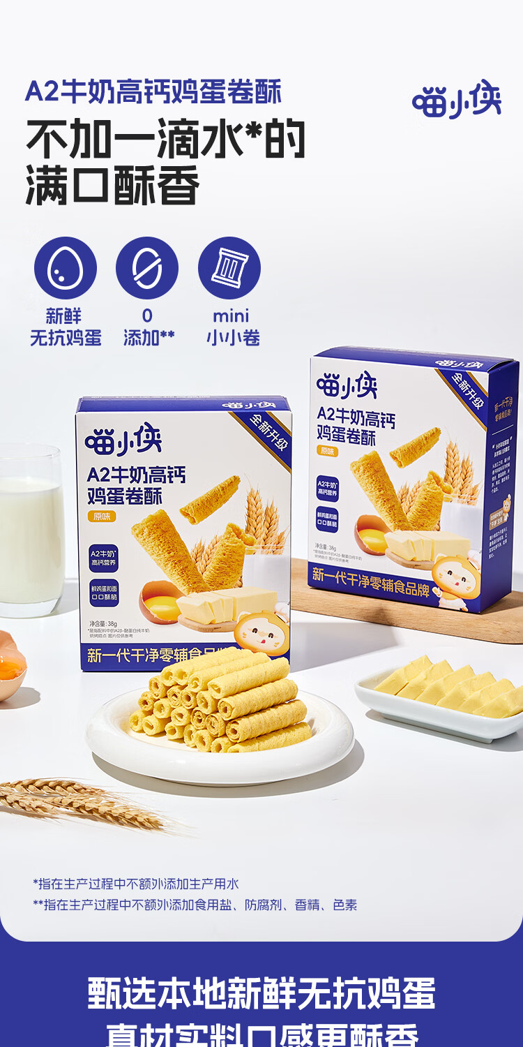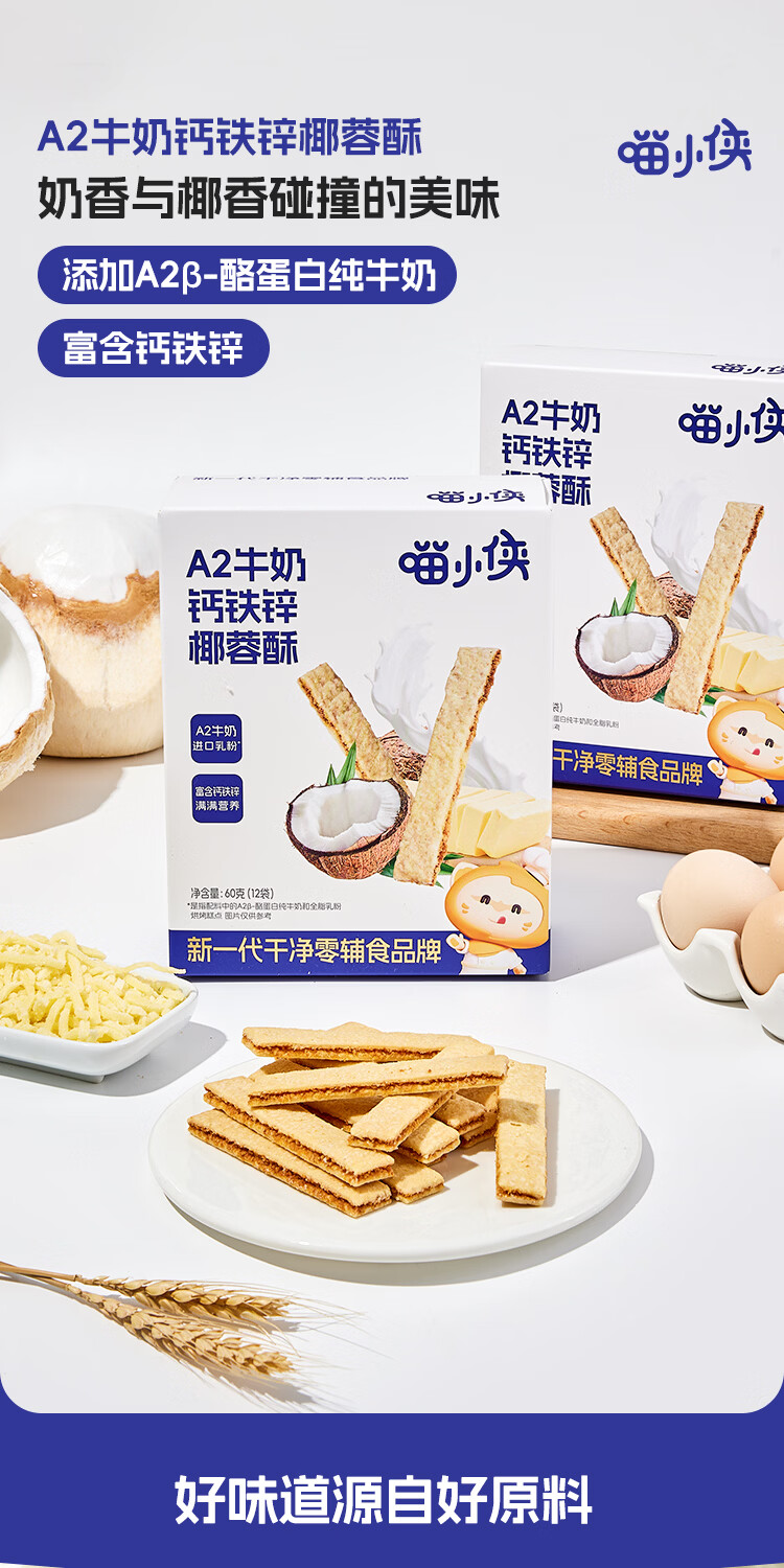 喵小侠A2牛奶高钙鸡蛋卷椰蓉酥儿童高钙营养零食,送宝宝婴幼儿辅食食谱 鸡蛋卷酥*1盒+椰蓉酥*1盒