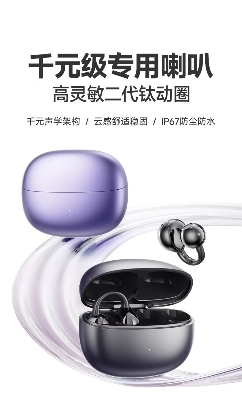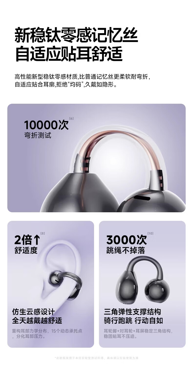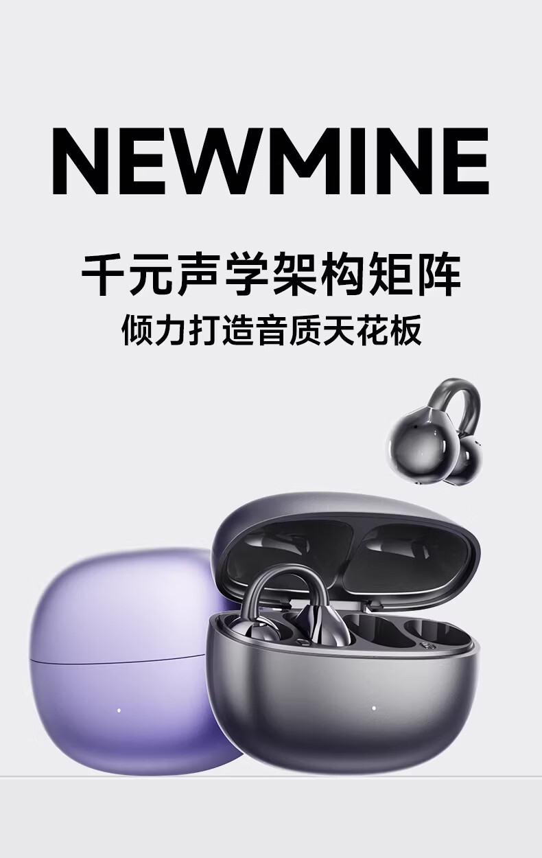 纽曼(Newmine)【热销200W+丨旗舰之音】蓝牙耳机开放式耳夹骨传导 真无线不入耳运动跑步狂甩不掉通话降噪长续航 【舒适佩戴感丨久戴不痛丨蓝牙5.4】星芒紫