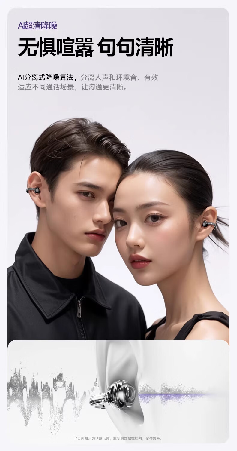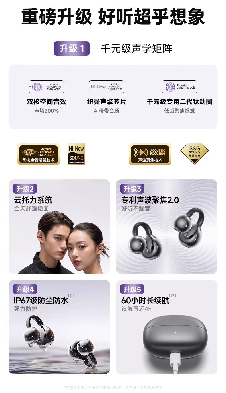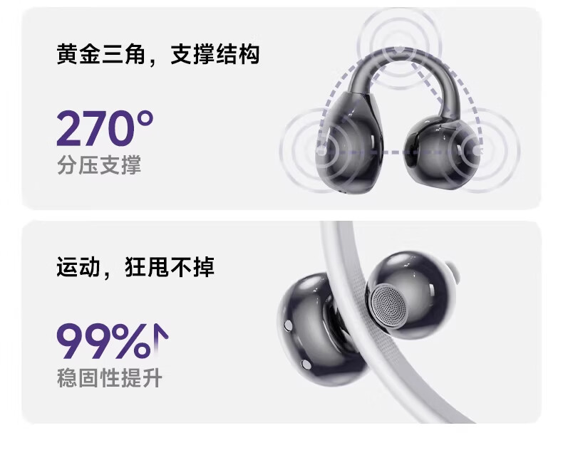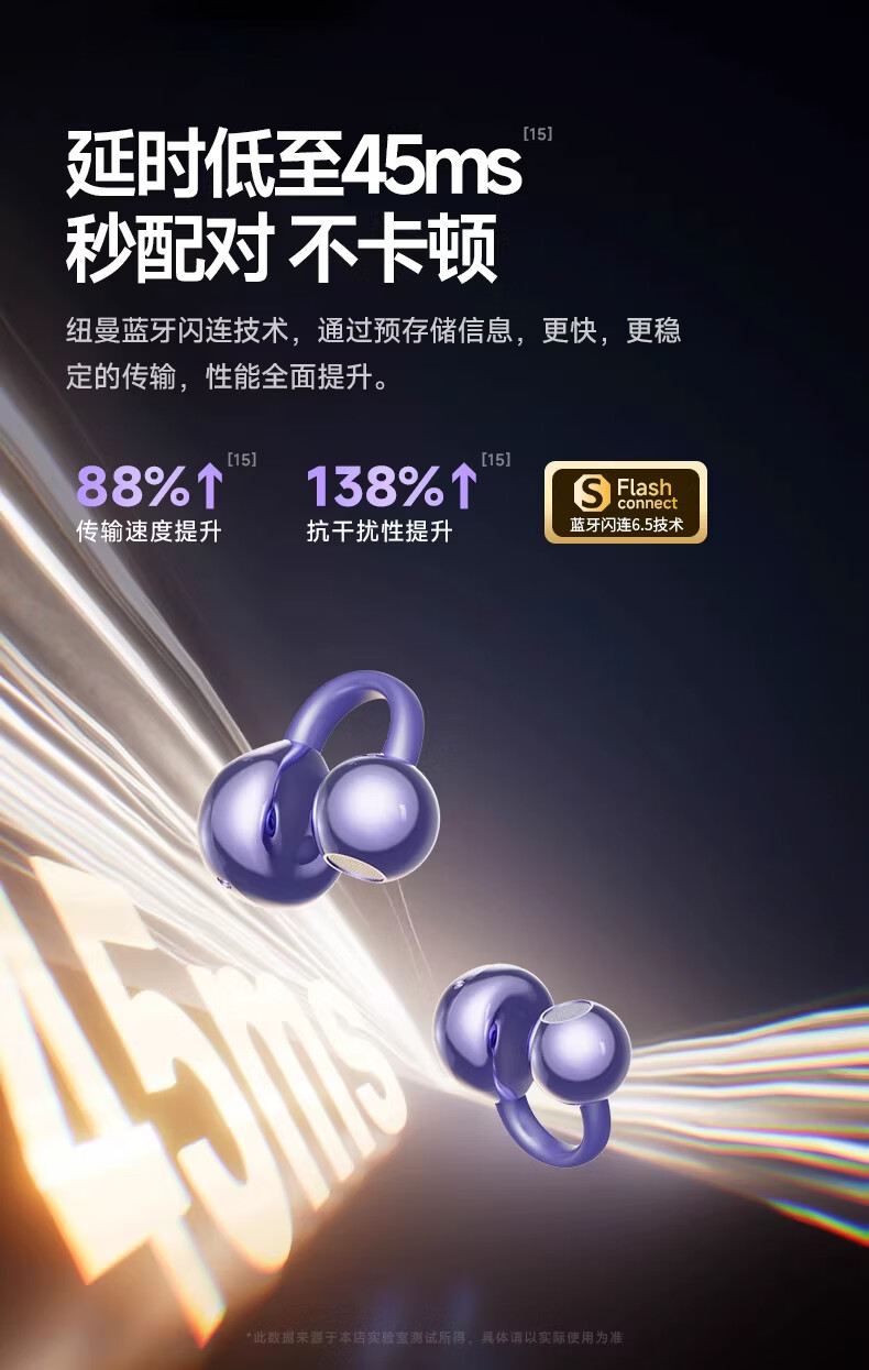 纽曼(Newmine)【热销200W+丨旗舰之音】蓝牙耳机开放式耳夹骨传导 真无线不入耳运动跑步狂甩不掉通话降噪长续航 【舒适佩戴感丨久戴不痛丨蓝牙5.4】星芒紫