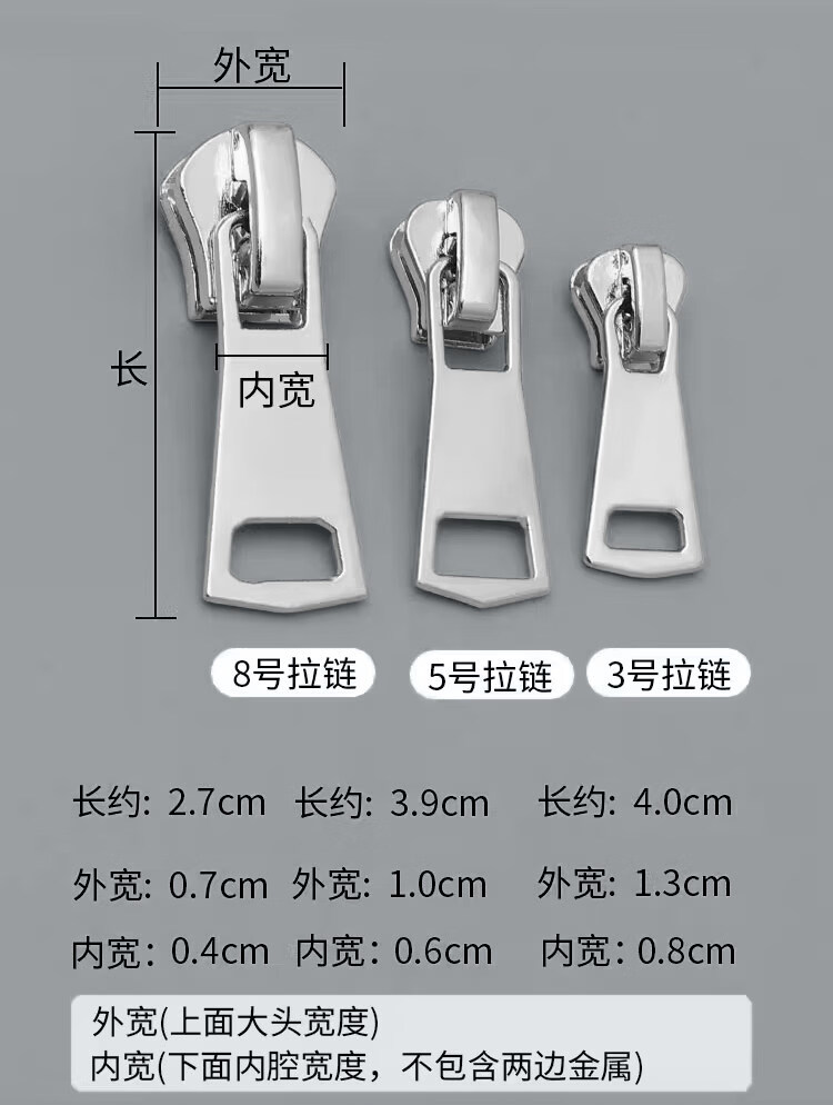 千百绘拉链头替换金属拉锁修复神器羽绒服行李箱可拆卸拉锁配件通用 【德国精工质保十年】3+5+8号银色各3个