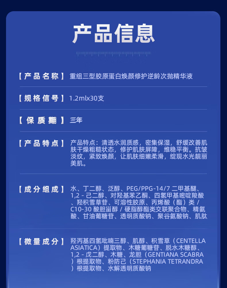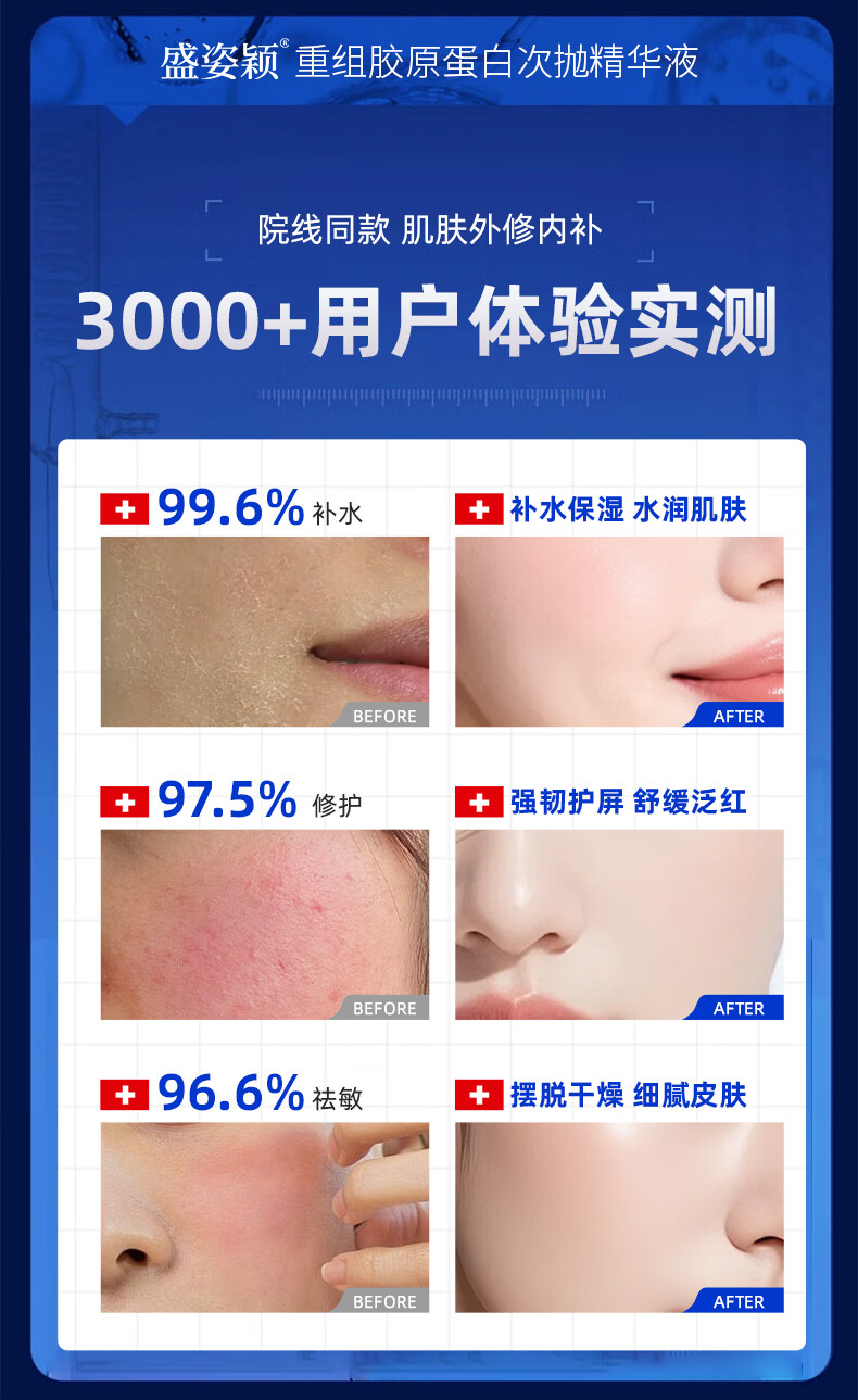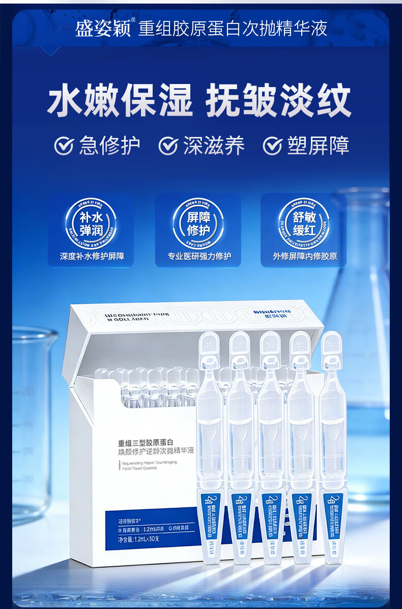 盛姿颖重组三型人源化胶原蛋白次抛精华液胶原棒敏感肌舒缓补水保湿修护 30支/盒 【即将售罄】