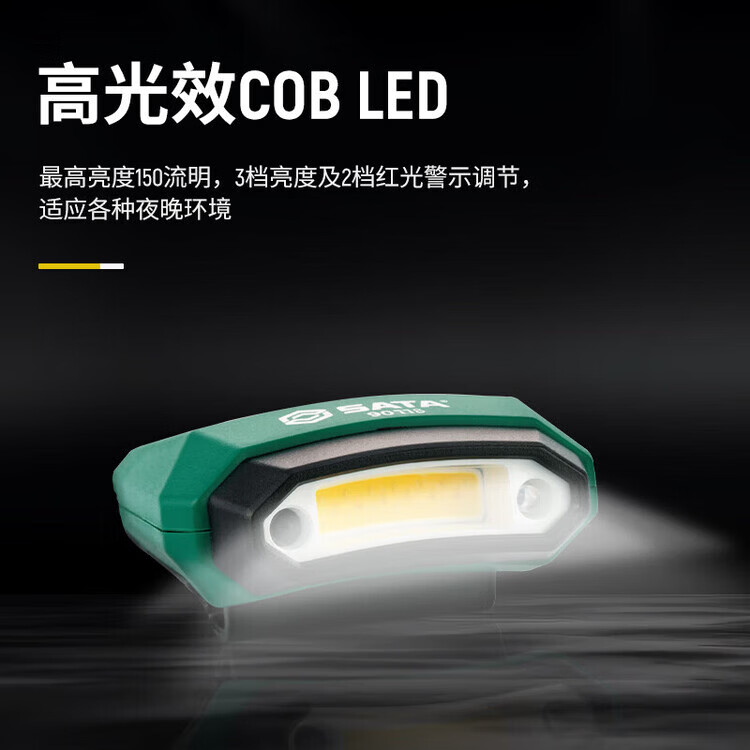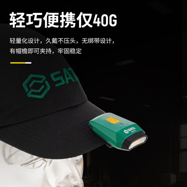 世达(SATA)帽夹灯锂电头灯散光聚光多亮度便携式防水照明工作灯90905/90778 90905 帽夹灯【150LM】