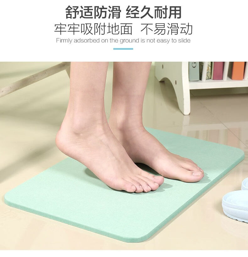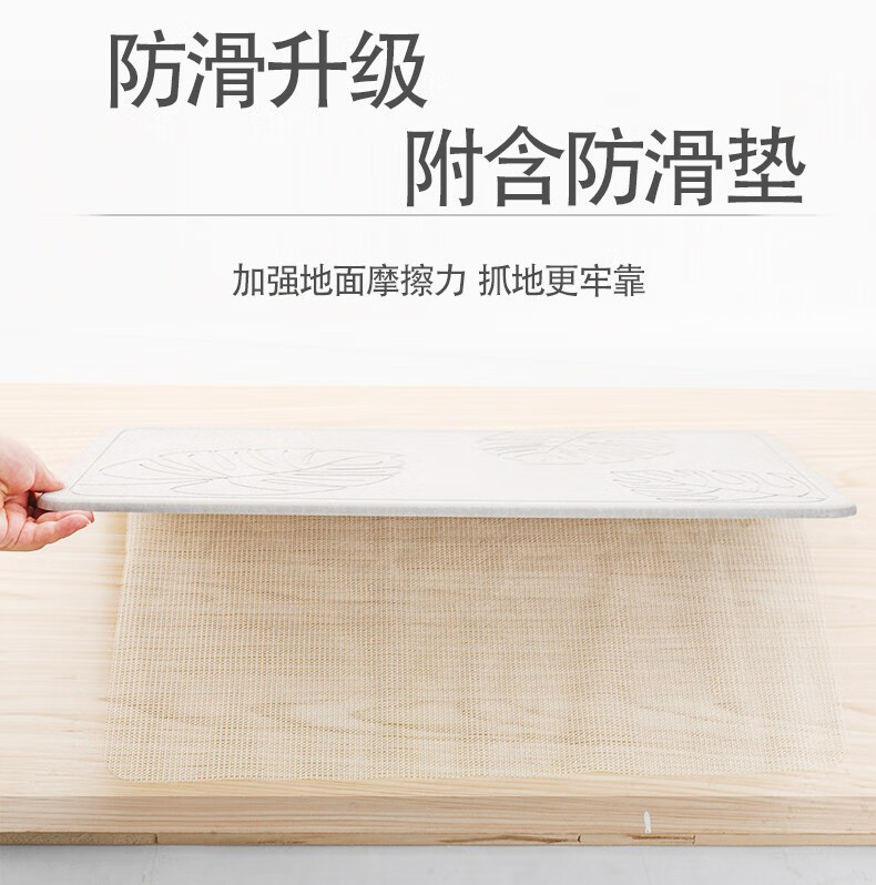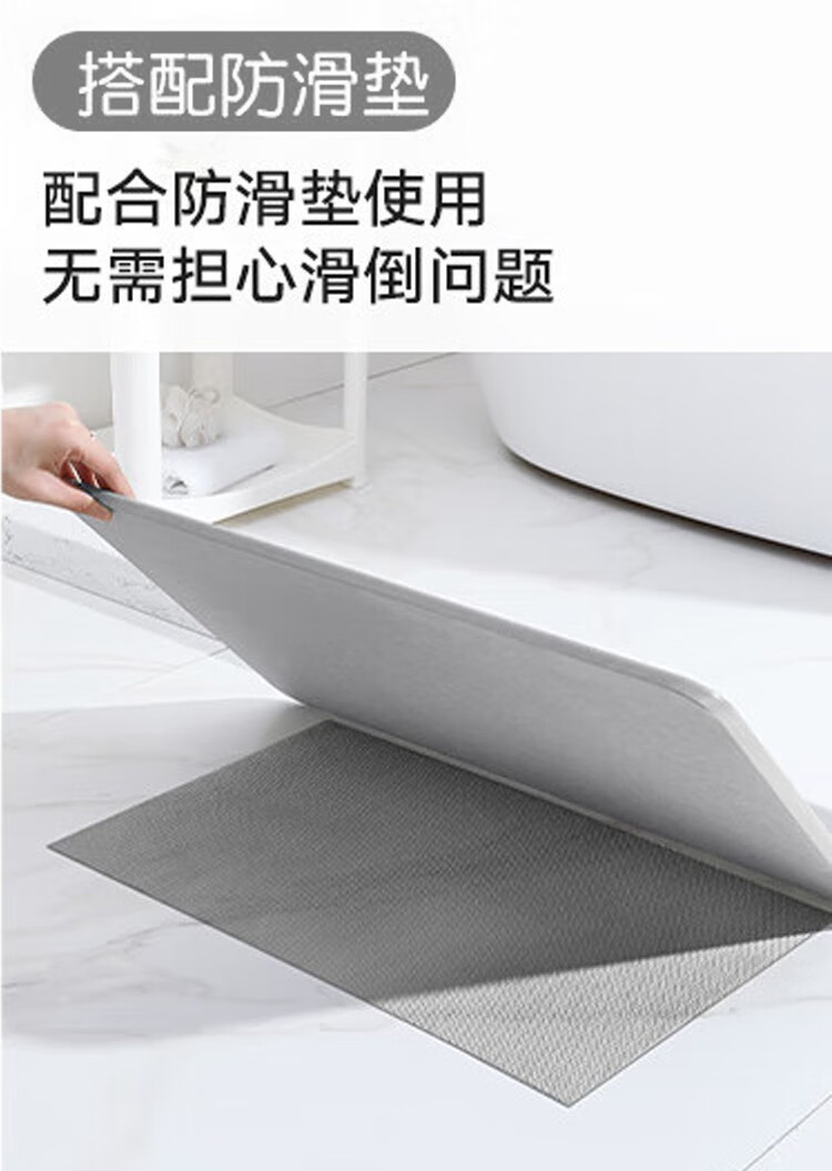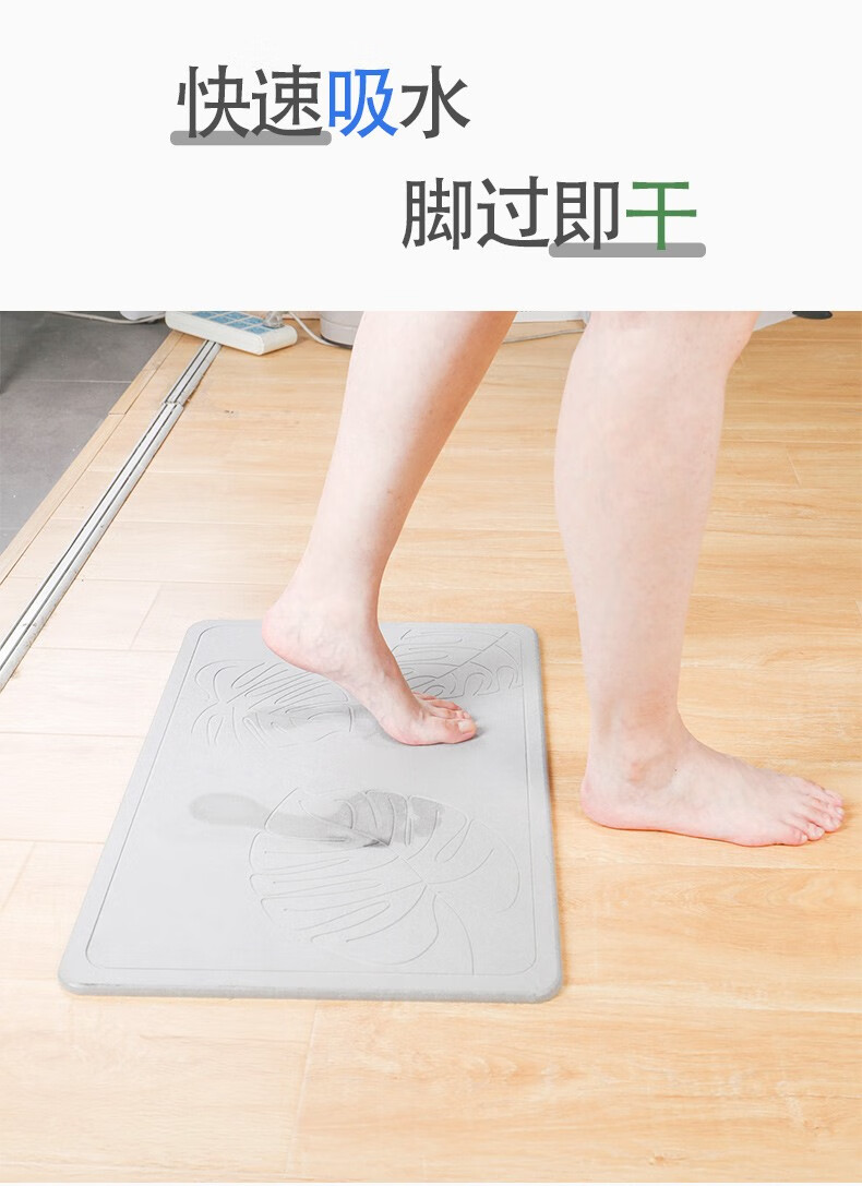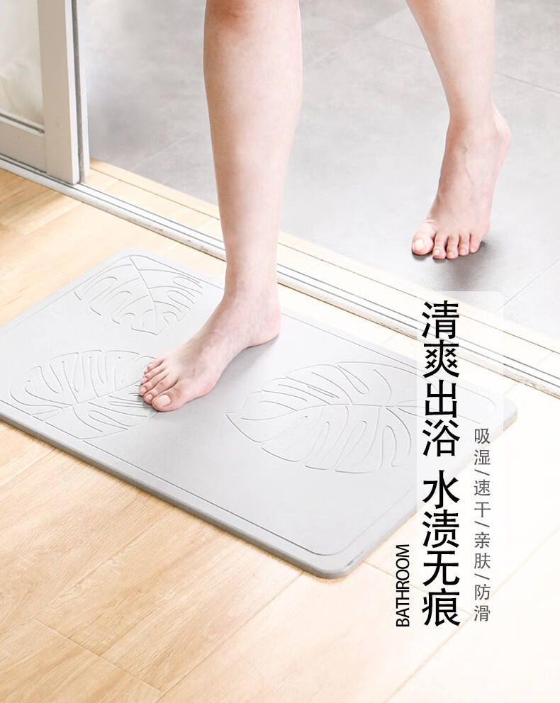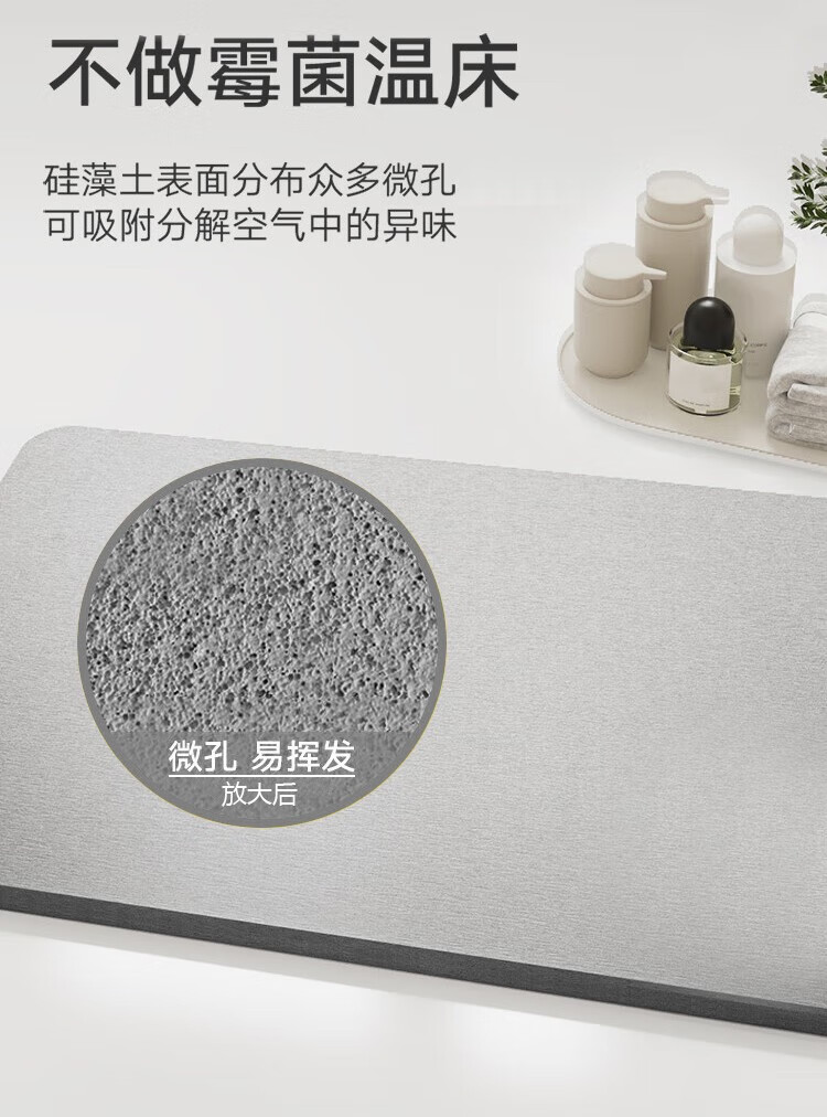 宝优妮天然硅藻泥地垫吸水垫硬质硅藻土速干脚垫浴室卫生间门垫防滑垫 小号40*30cm浅灰色9061-24