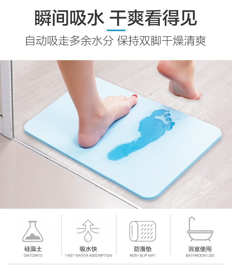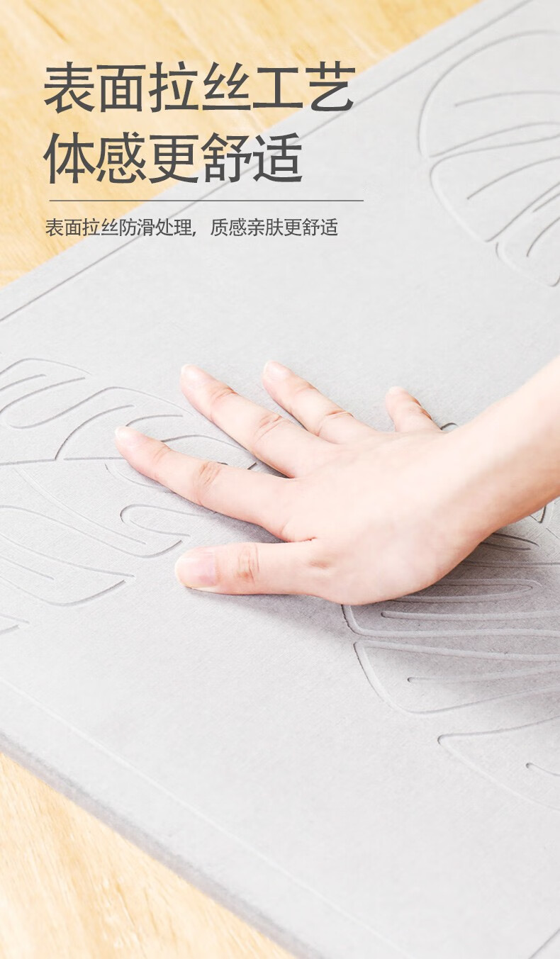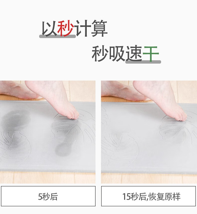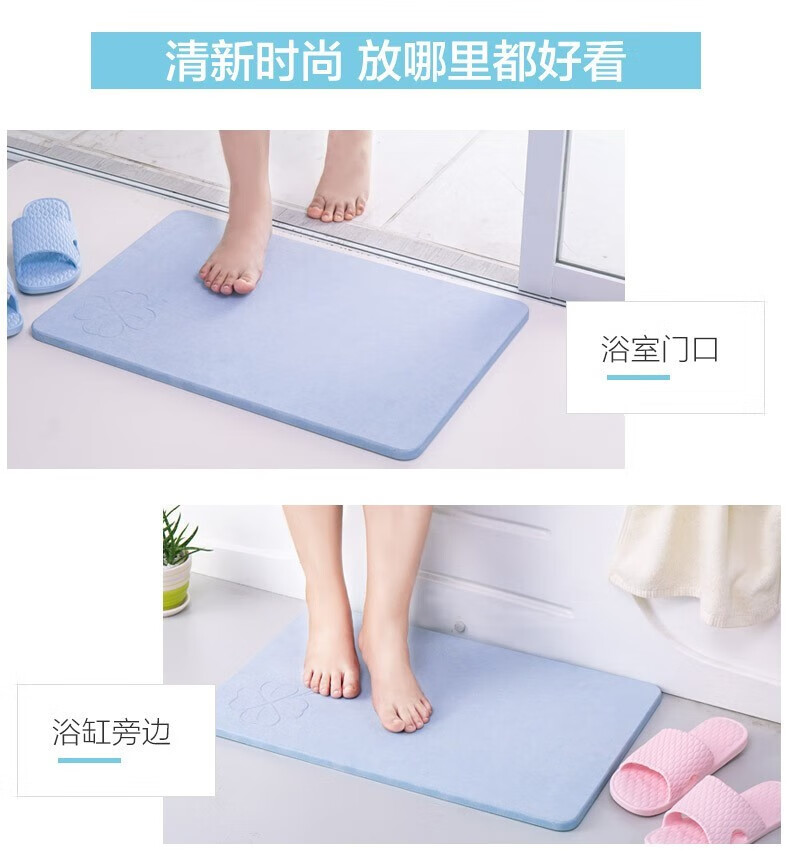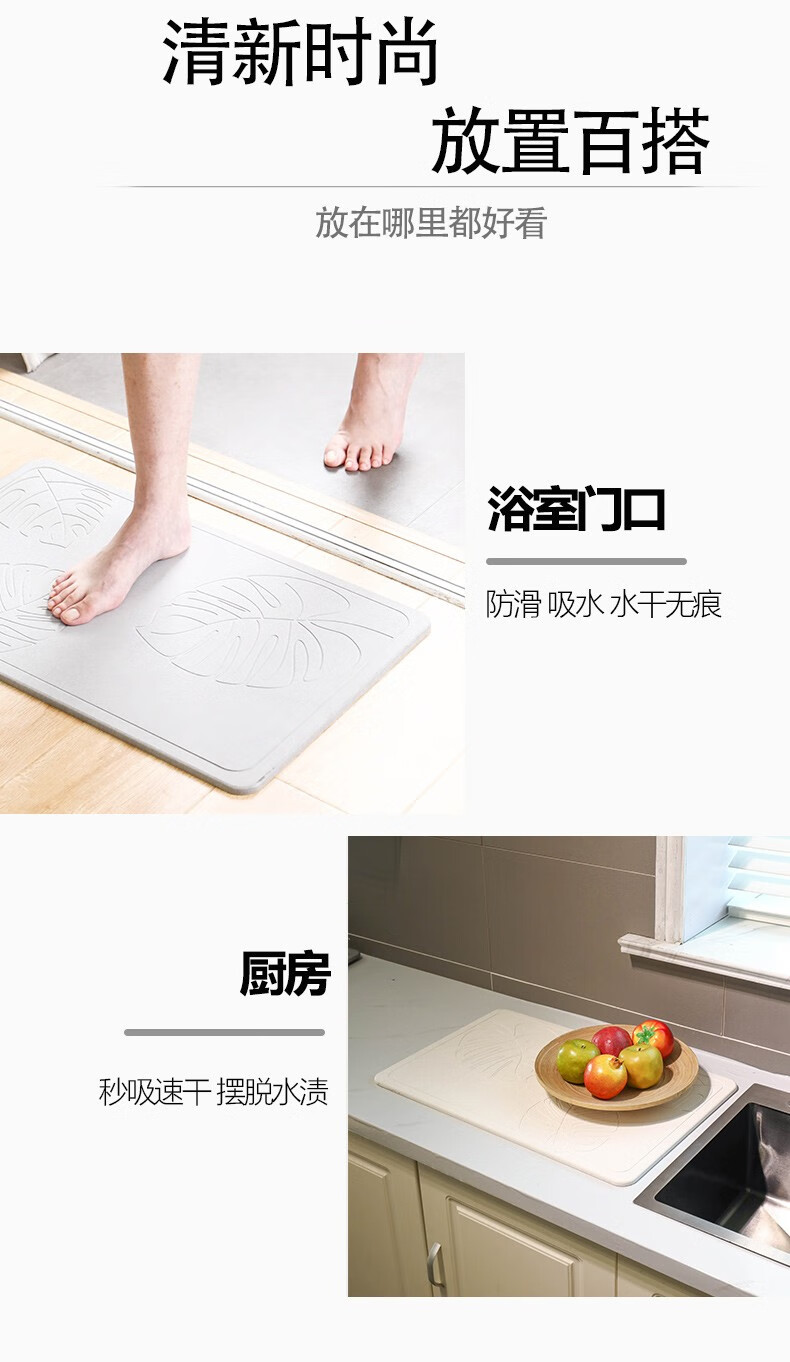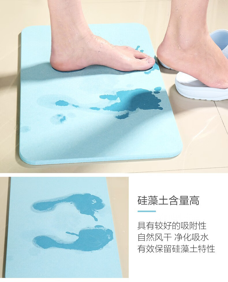 宝优妮天然硅藻泥地垫吸水垫硬质硅藻土速干脚垫浴室卫生间门垫防滑垫 小号40*30cm浅灰色9061-24