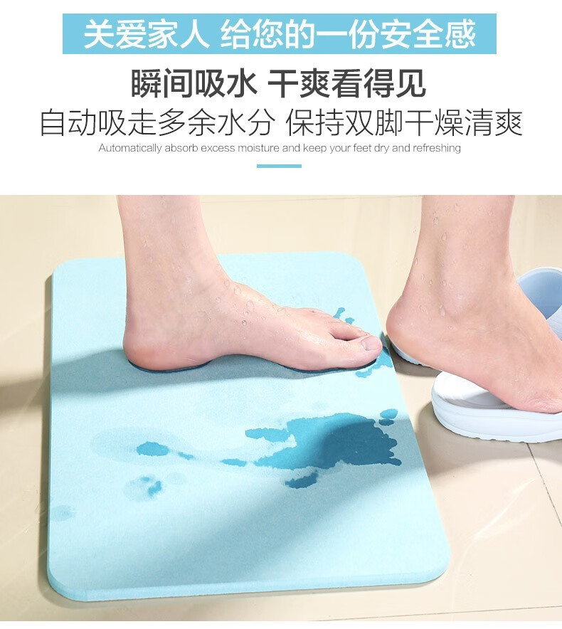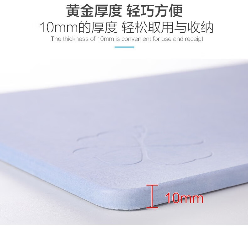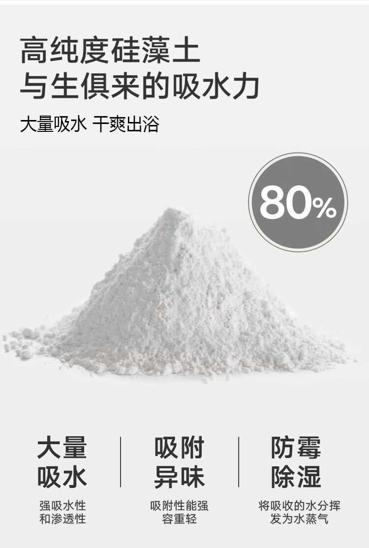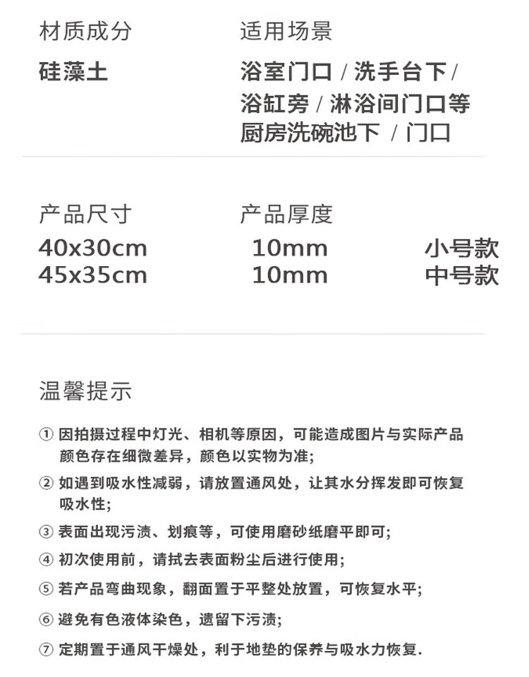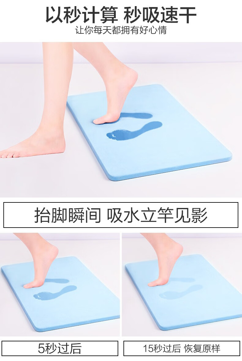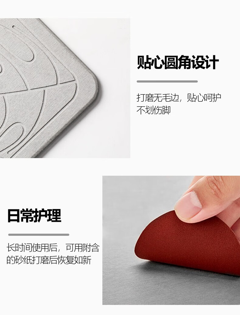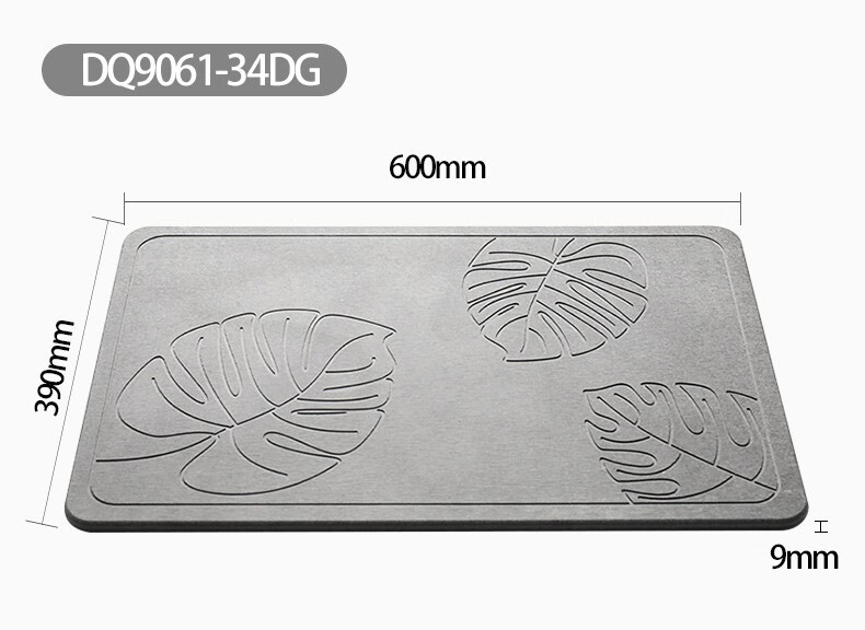 宝优妮天然硅藻泥地垫吸水垫硬质硅藻土速干脚垫浴室卫生间门垫防滑垫 小号40*30cm浅灰色9061-24