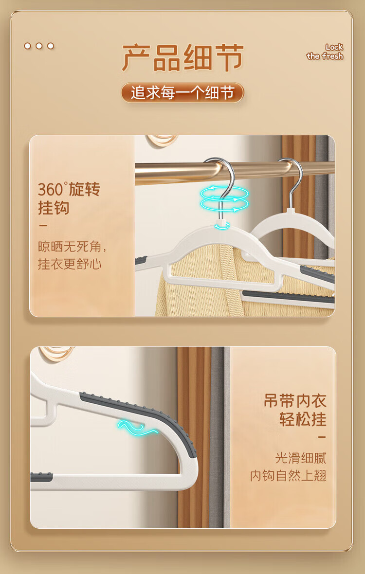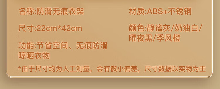 洋臣无痕衣架加粗款防滑家用衣挂可旋转多功能宽肩宿舍干湿两用衣撑子 季风橙 10个
