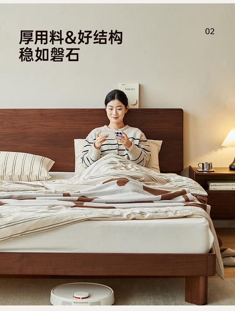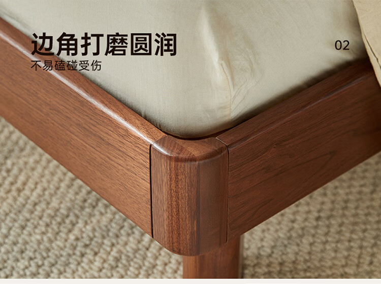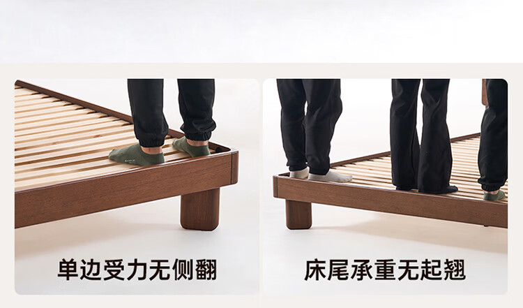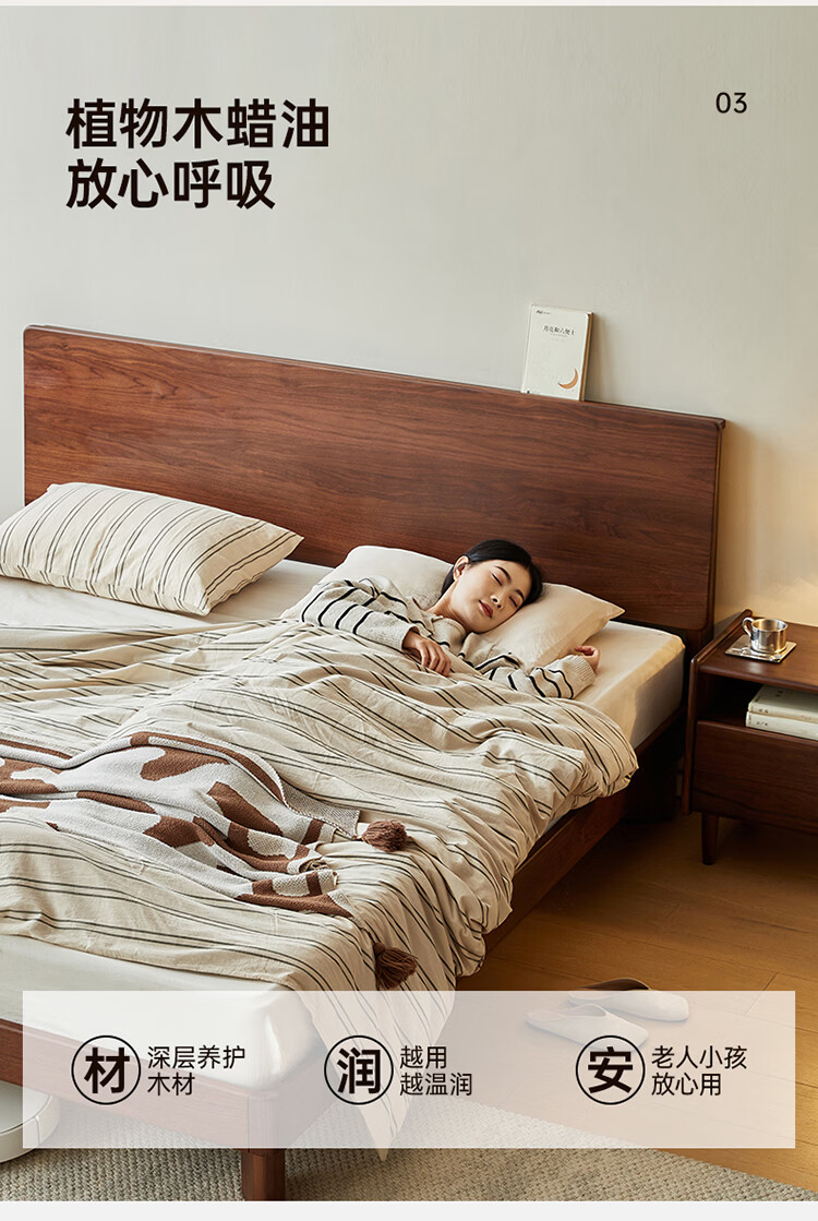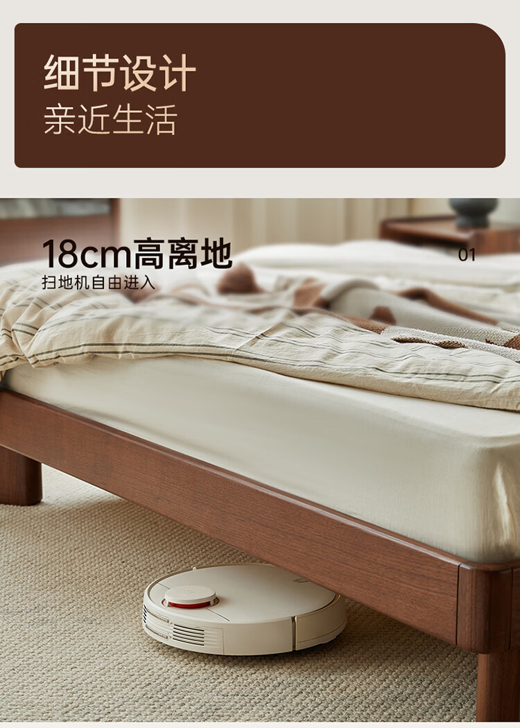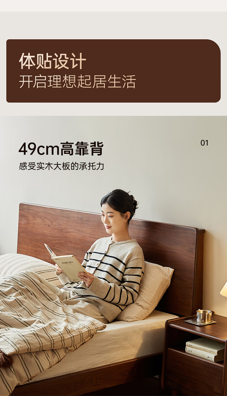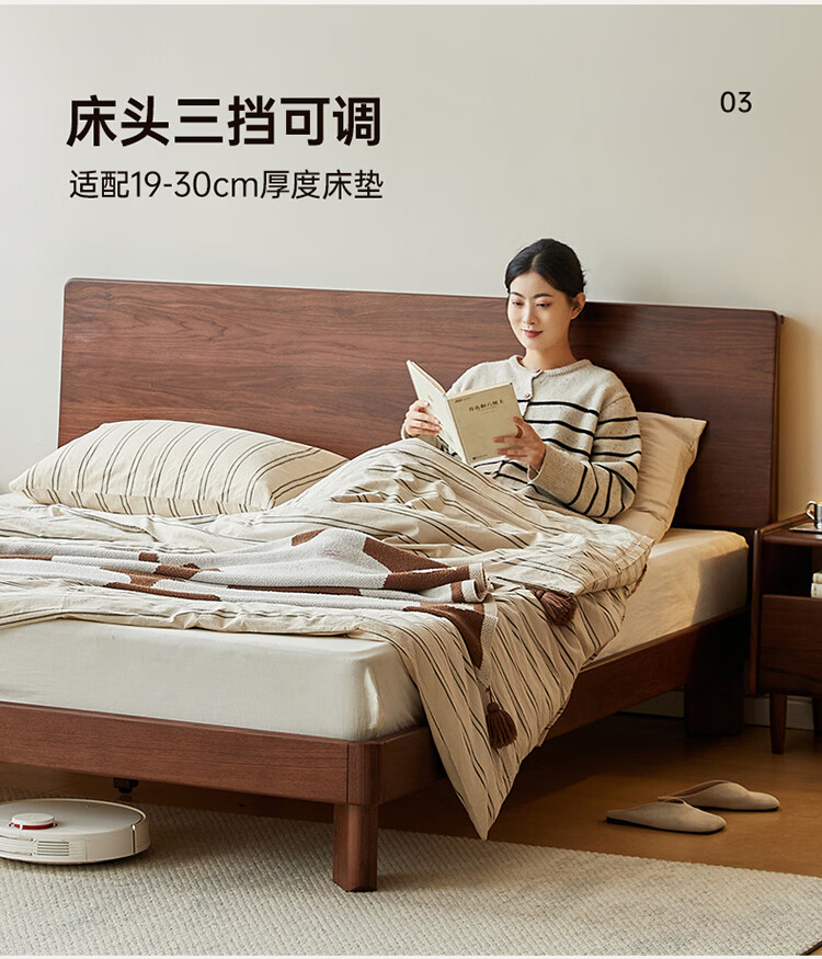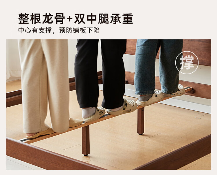 全友家居新中式全实木床家用主卧室多功能床头储物黑胡桃木双人高脚床 松木铺板【黑胡桃木 | 公牛插座】 1.8米x2米 单床