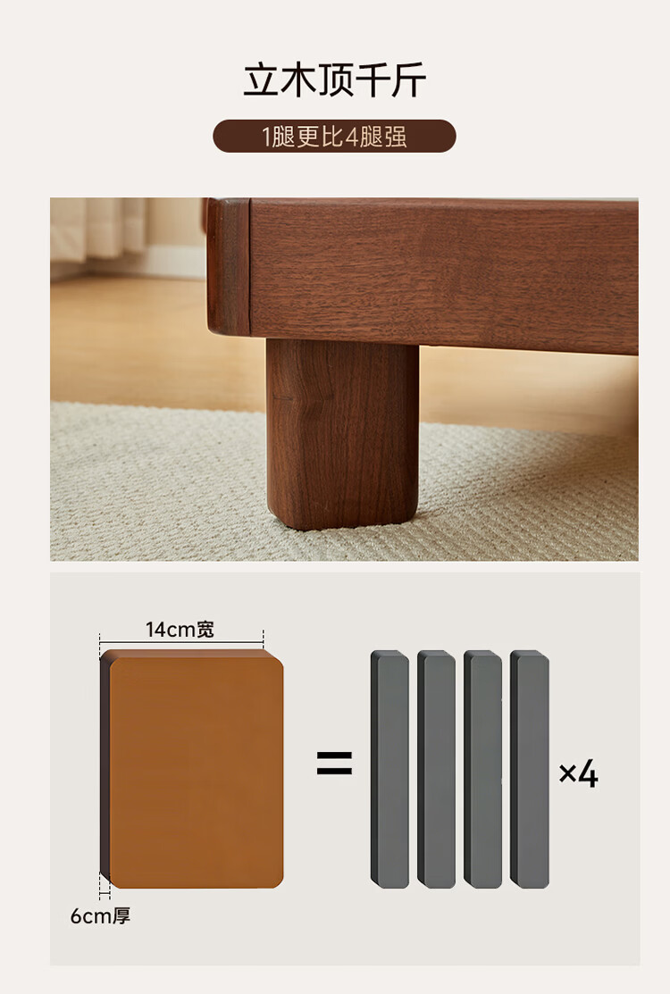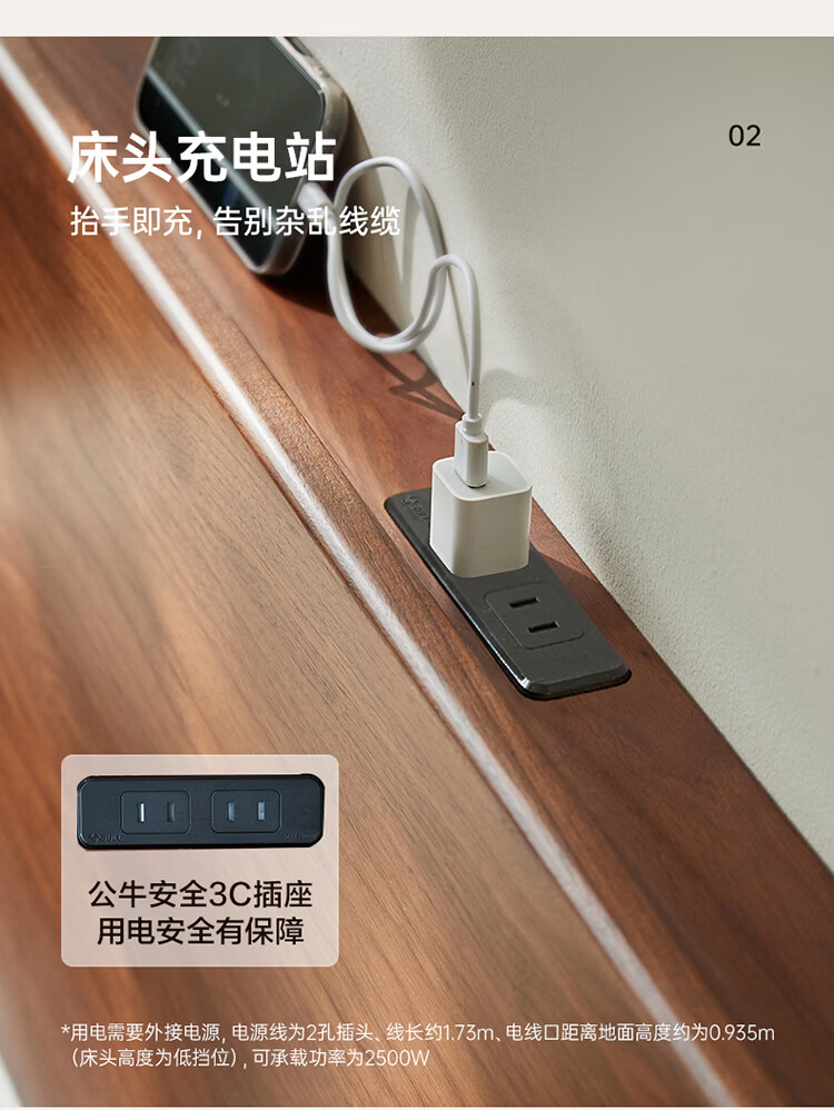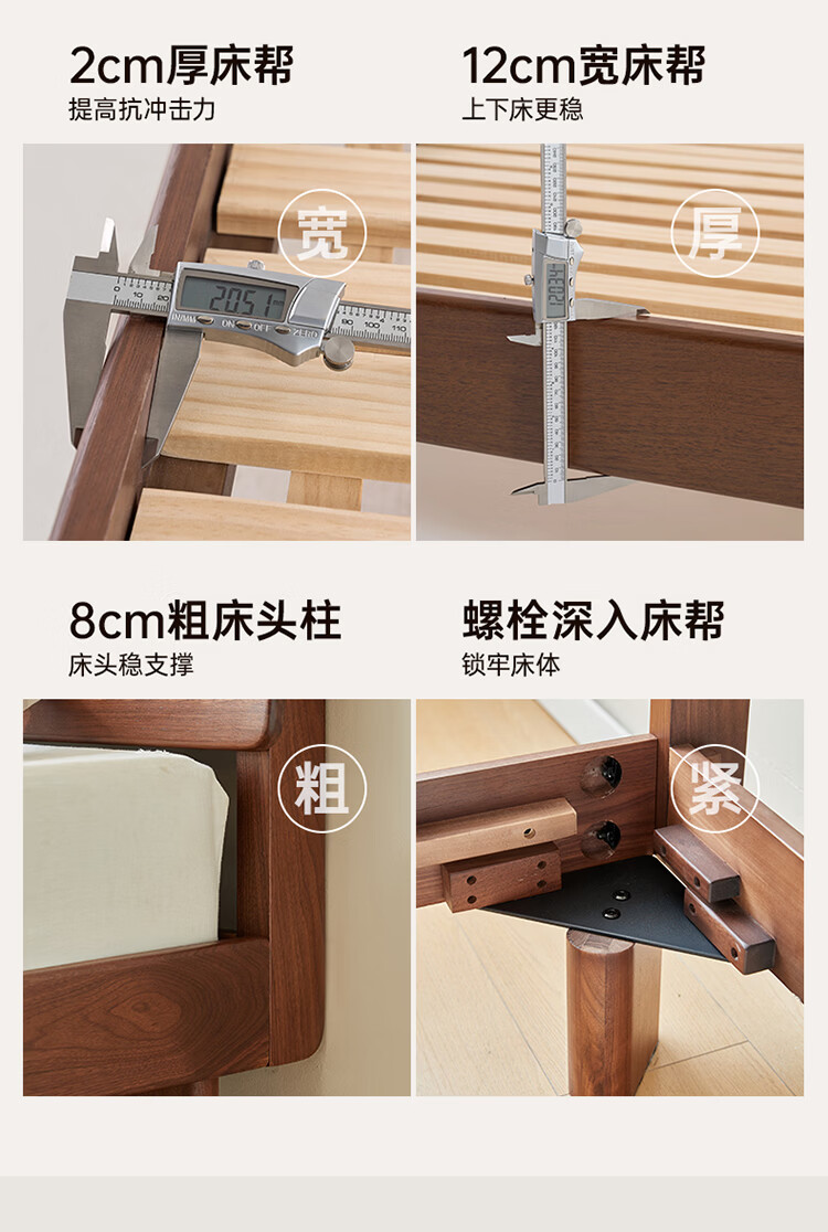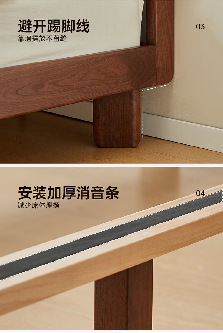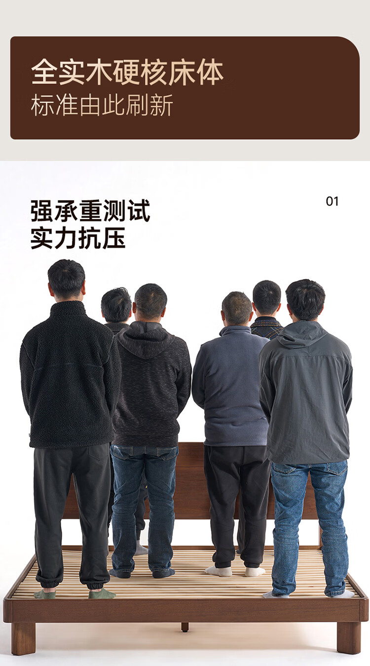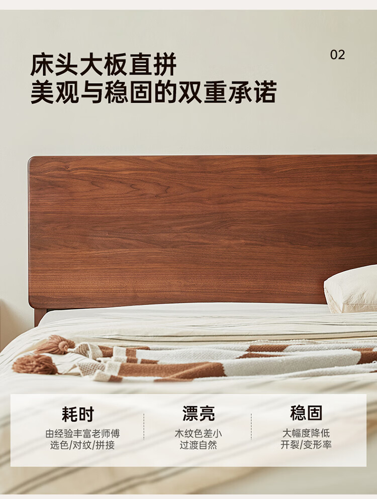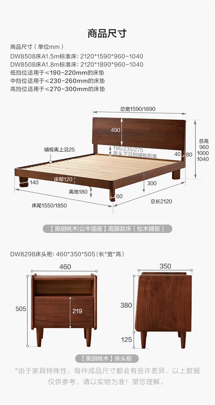 全友家居新中式全实木床家用主卧室多功能床头储物黑胡桃木双人高脚床 松木铺板【黑胡桃木 | 公牛插座】 1.8米x2米 单床