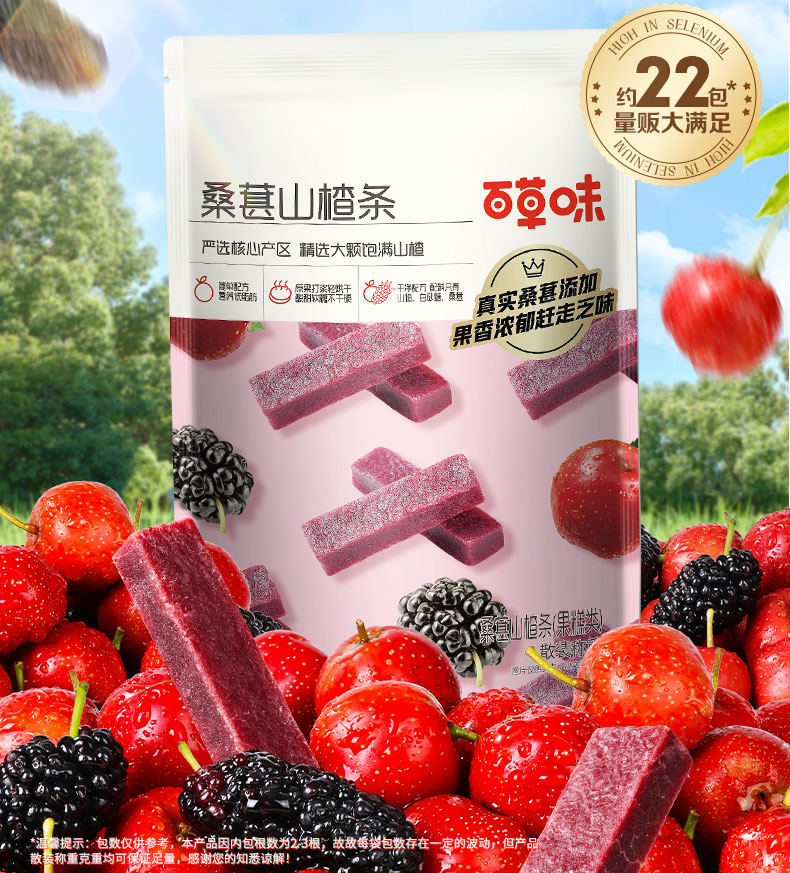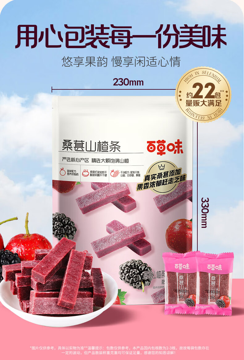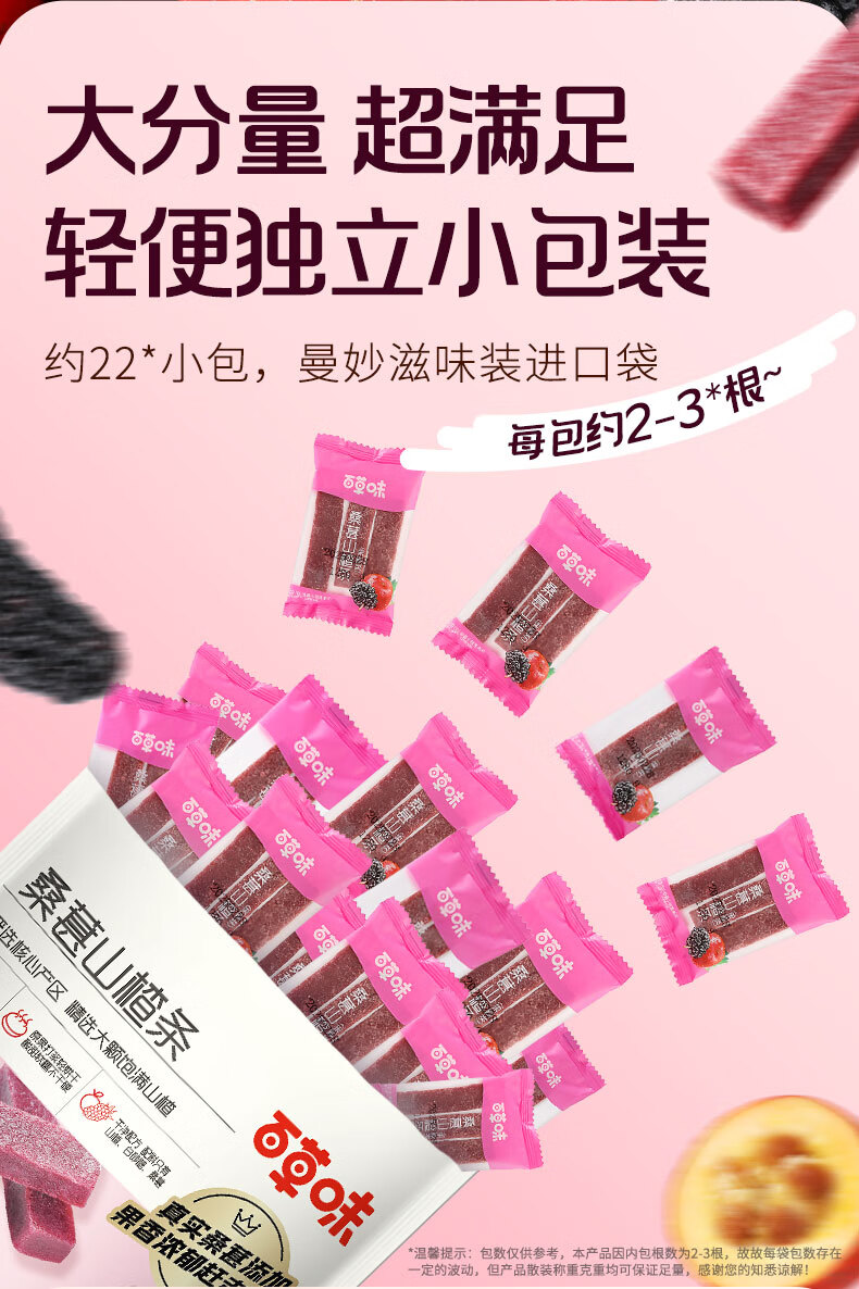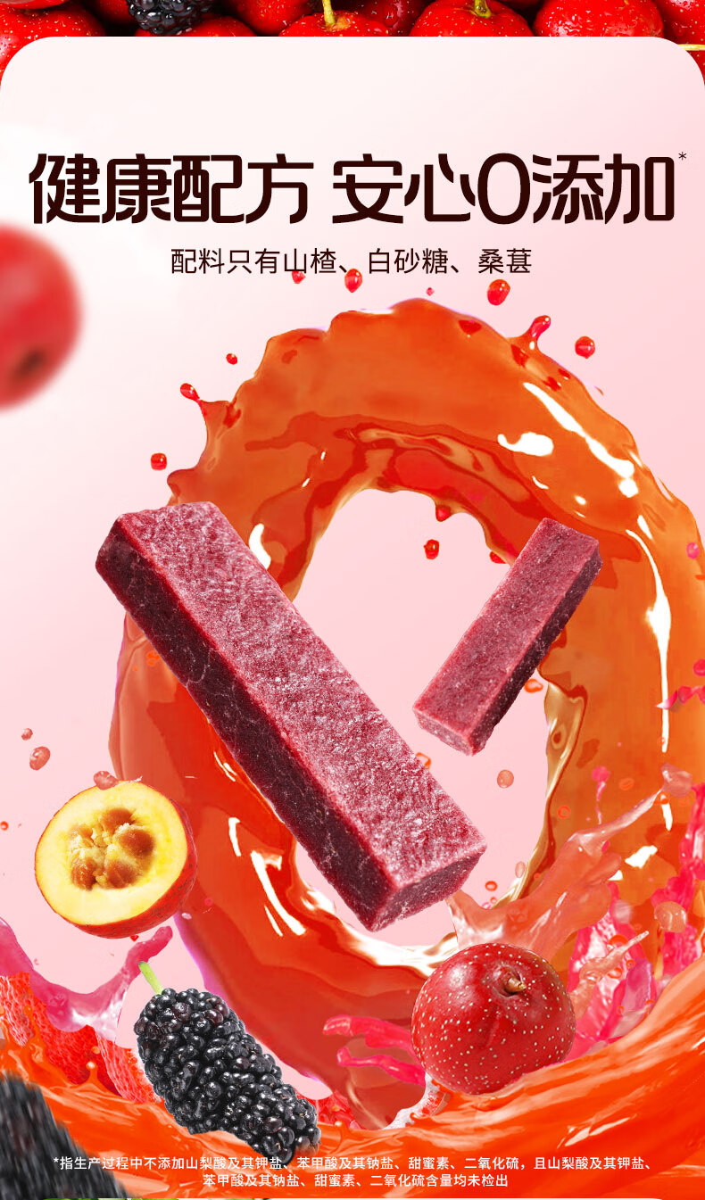 百草味桑葚山楂条408g 山楂干片卷果丹皮蜜饯酸甜开胃办公休闲零食 桑葚山楂条408g*2