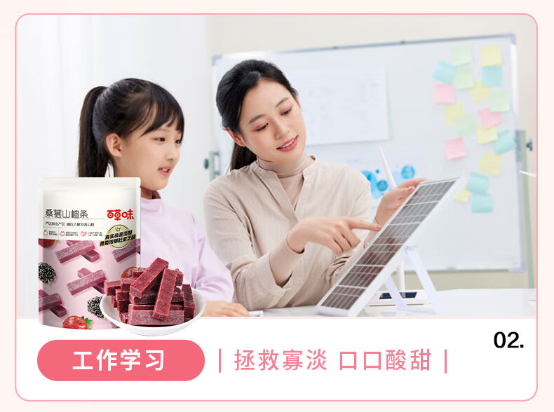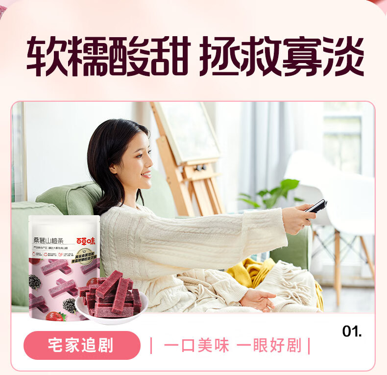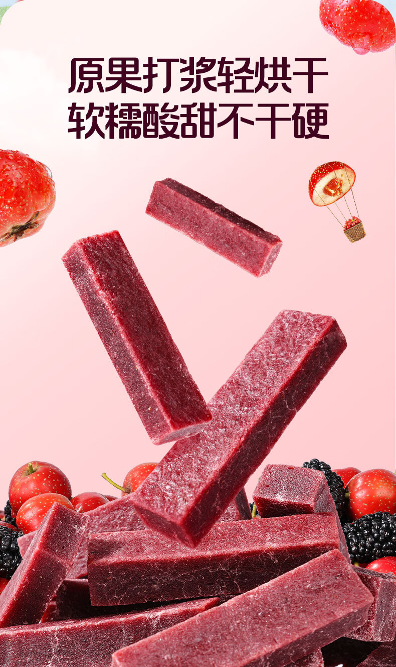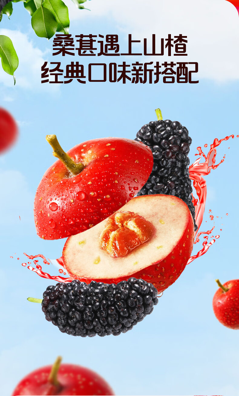 百草味桑葚山楂条408g 山楂干片卷果丹皮蜜饯酸甜开胃办公休闲零食 桑葚山楂条408g*2