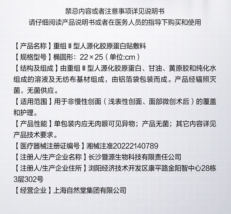 屈臣氏自然堂重组III型人源化胶原蛋白贴敷料 5片