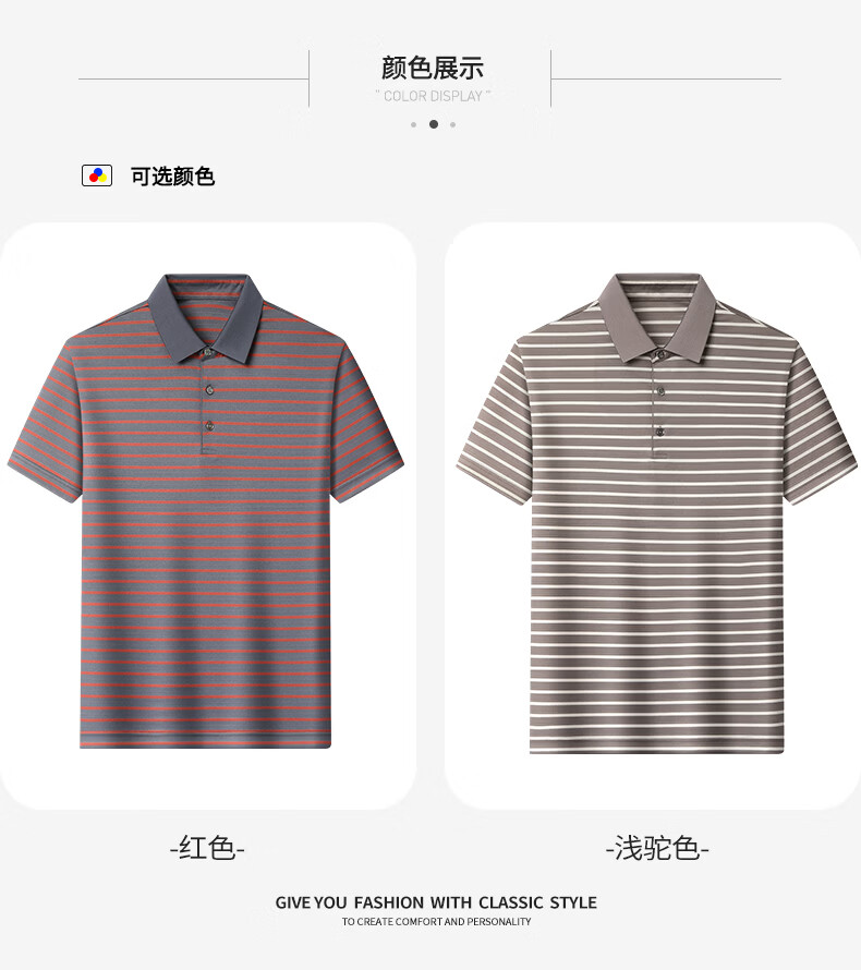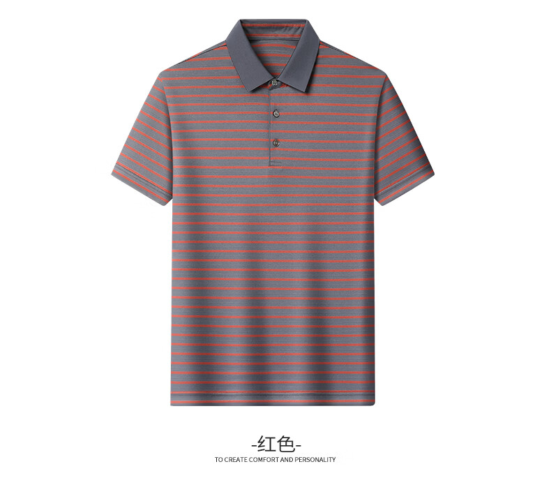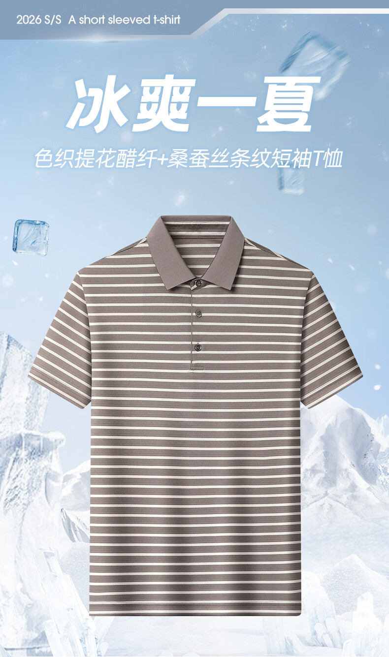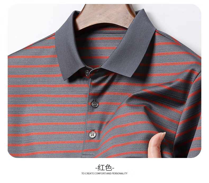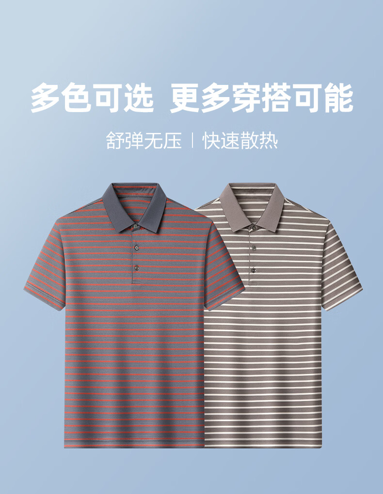 SHANSHAN杉杉短袖T恤男2026夏季新款条纹弹力Polo衫男商务休闲爸爸装衣服 红色 S /165
