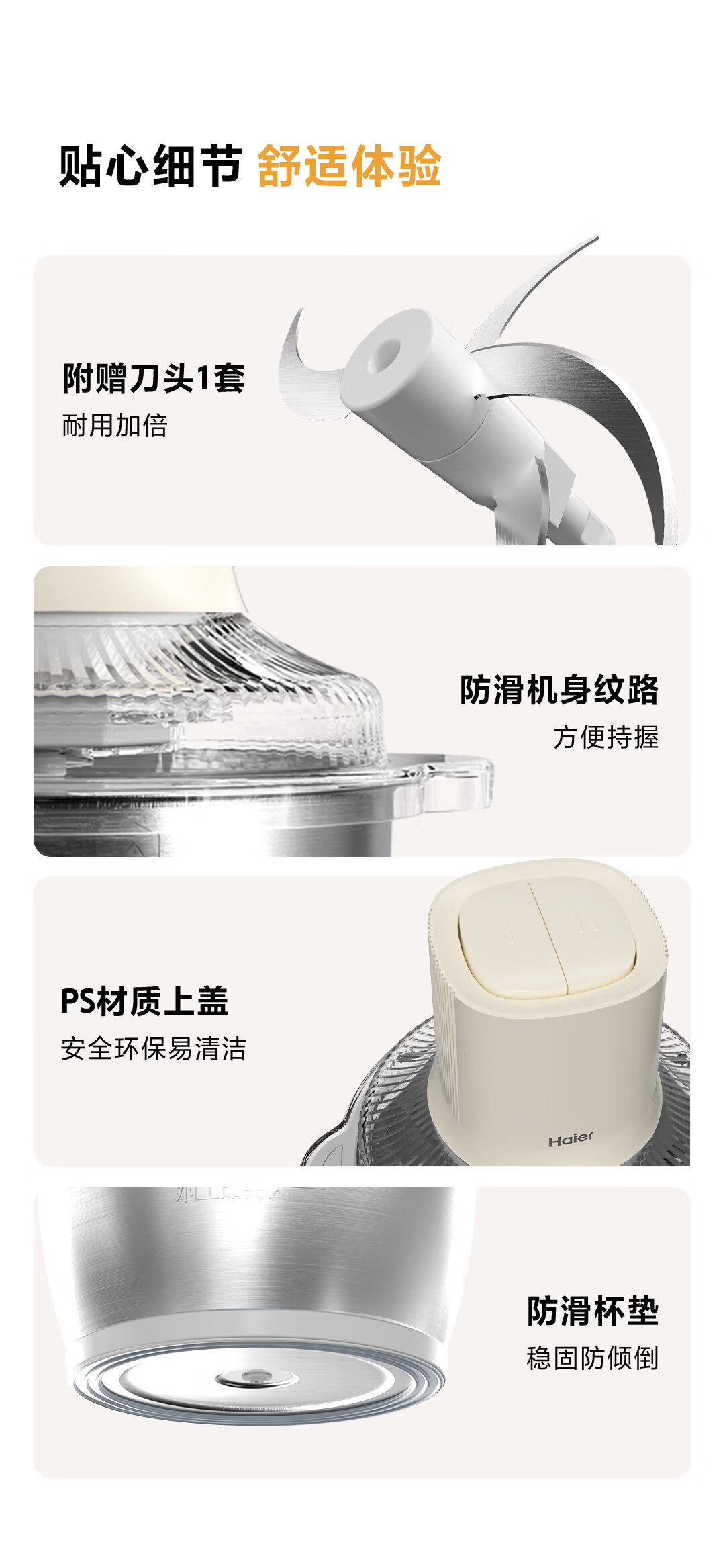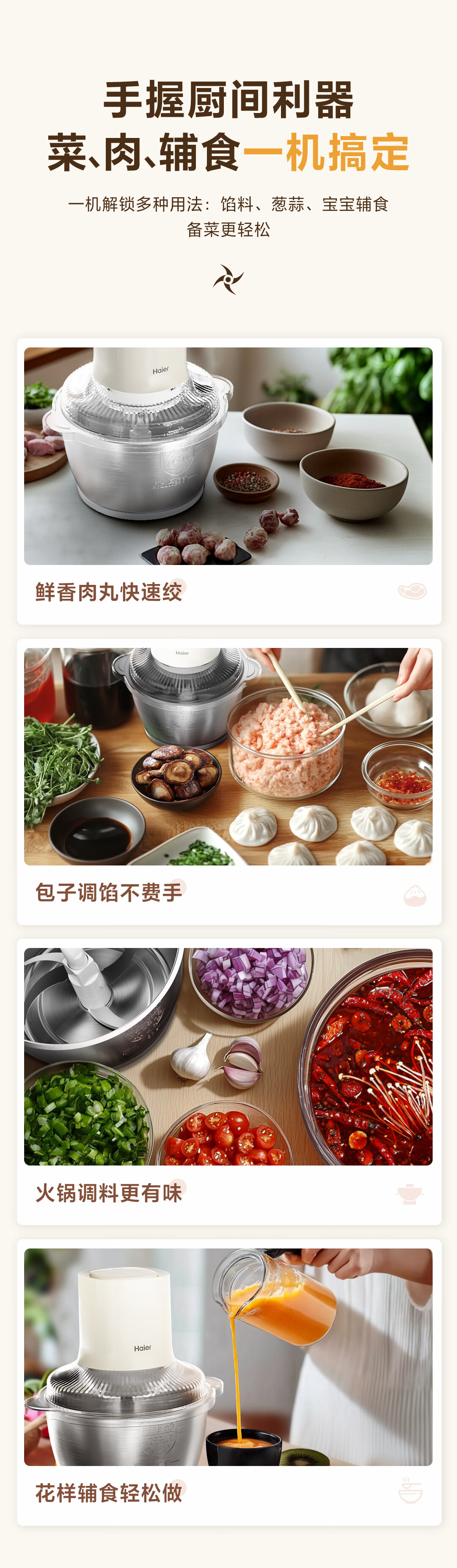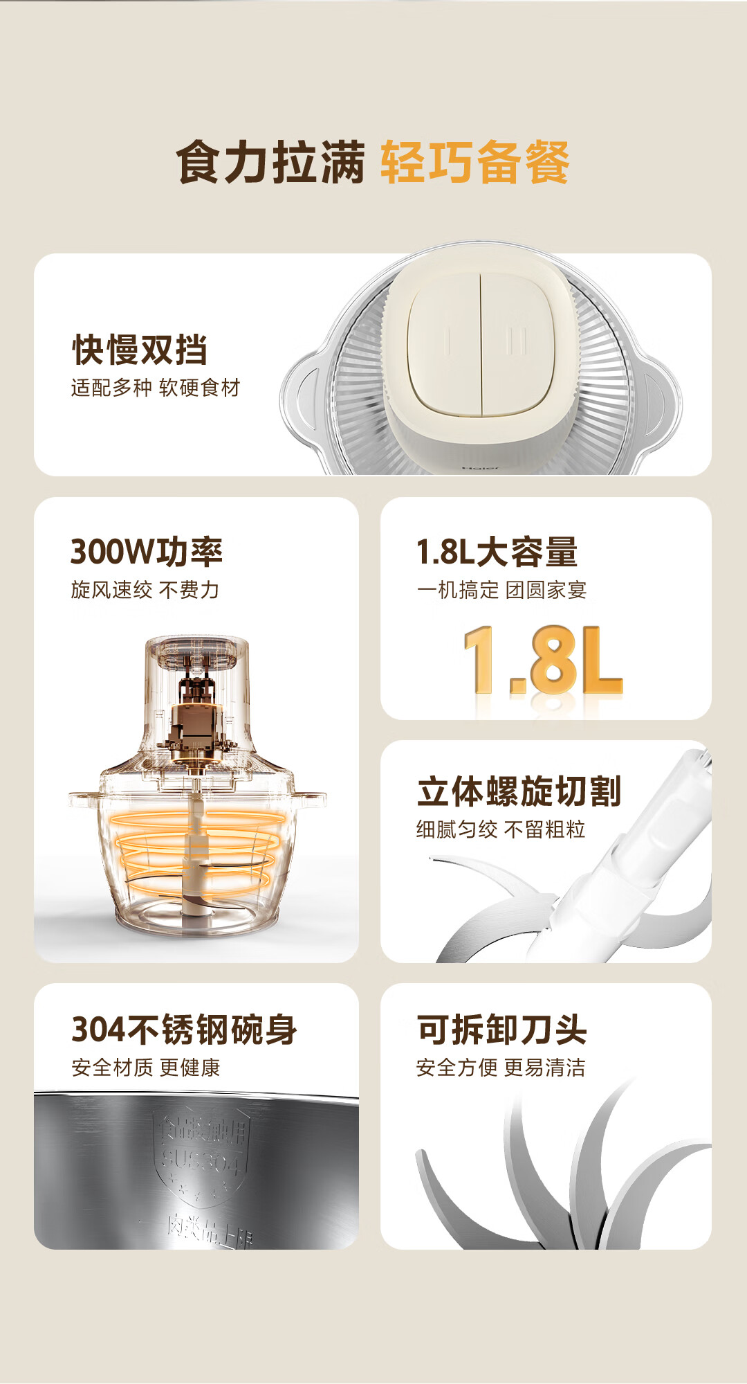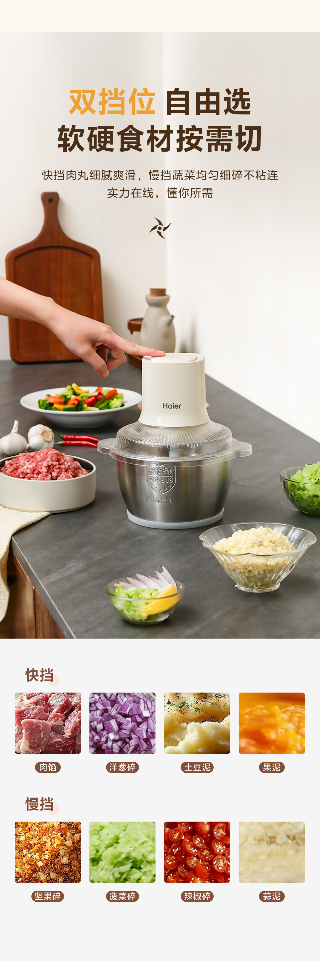 海尔绞肉机 绞馅机 碎肉机 小型电动多功能料理搅拌打肉饺子肉馅 蒜蓉机 1.8L 双刀不锈钢碗HJR-DK202Y2S