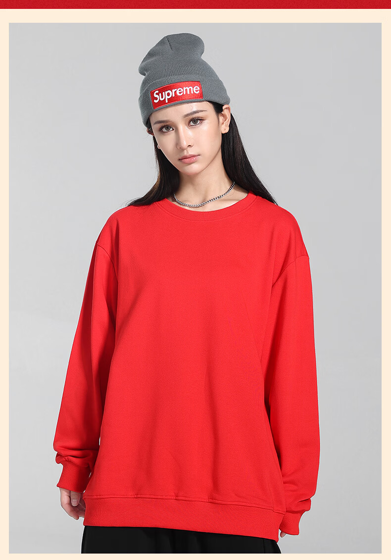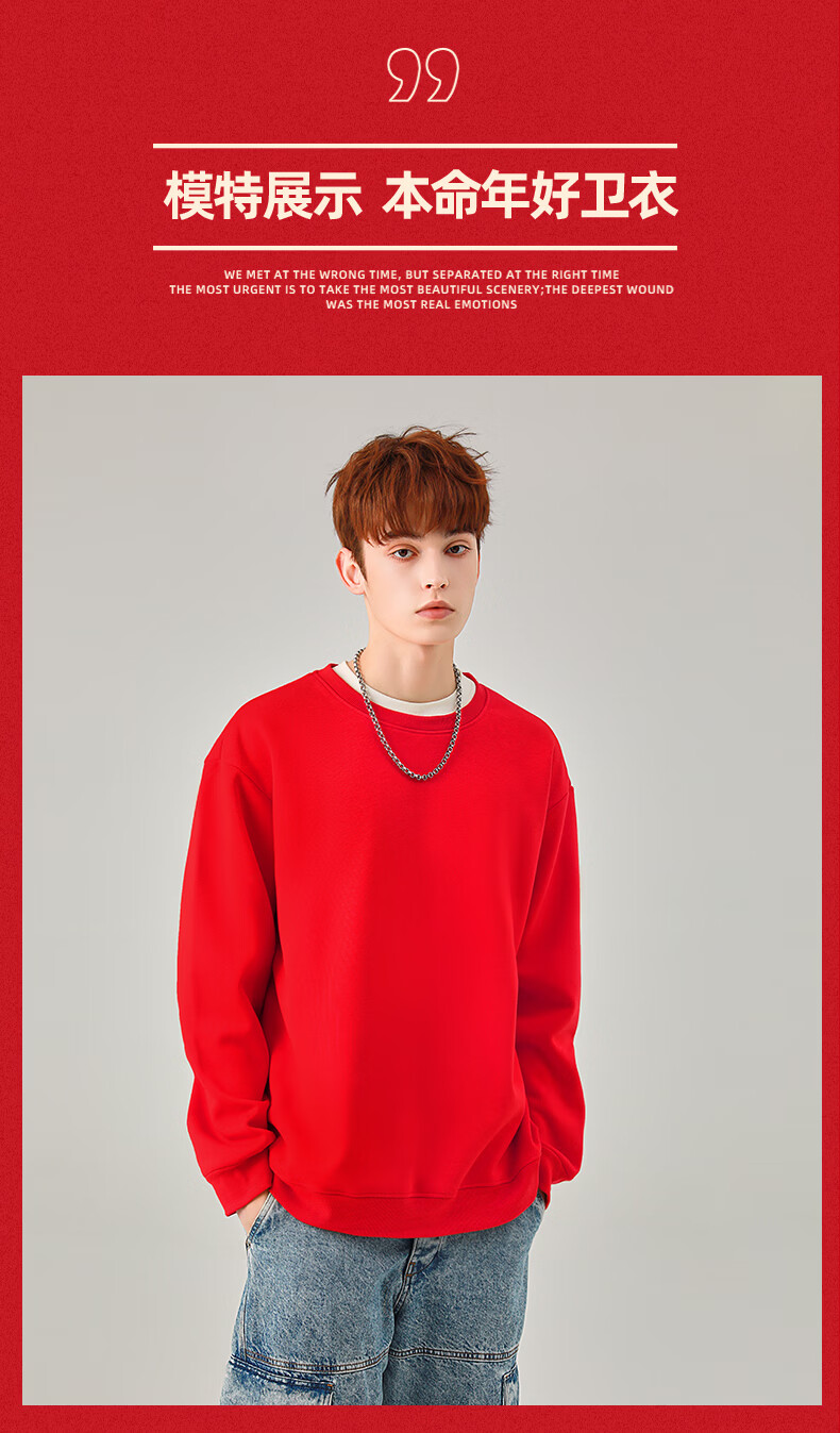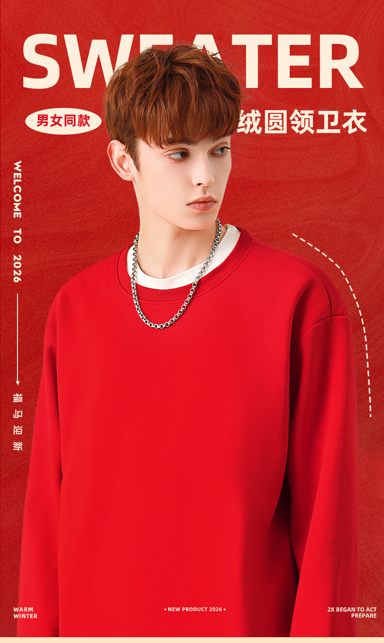 真维斯(Jeanswest)本命年红色加绒卫衣男款2026马年新年加厚保暖上衣休闲宽松套头衫 加绒 红色 喜乐平安马_K S
