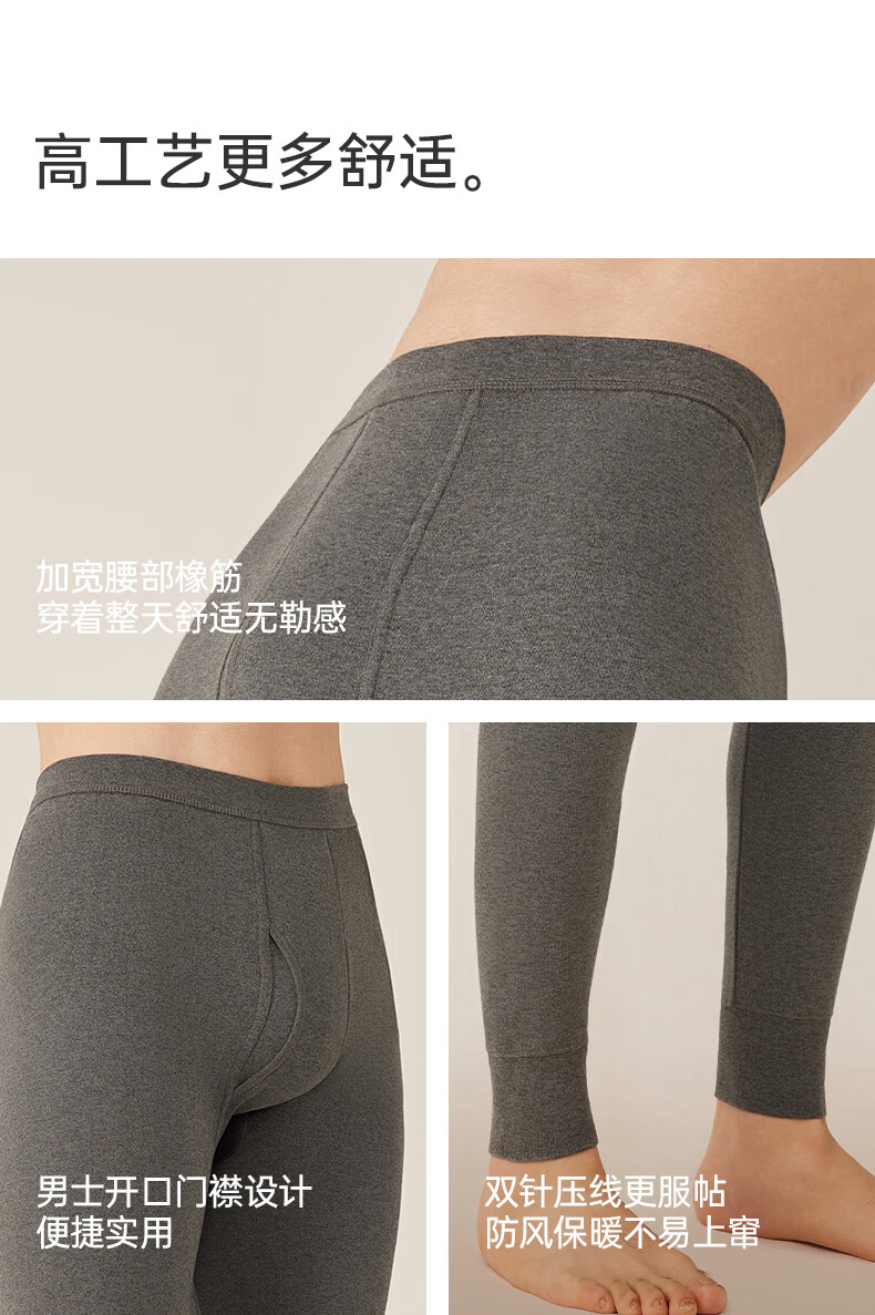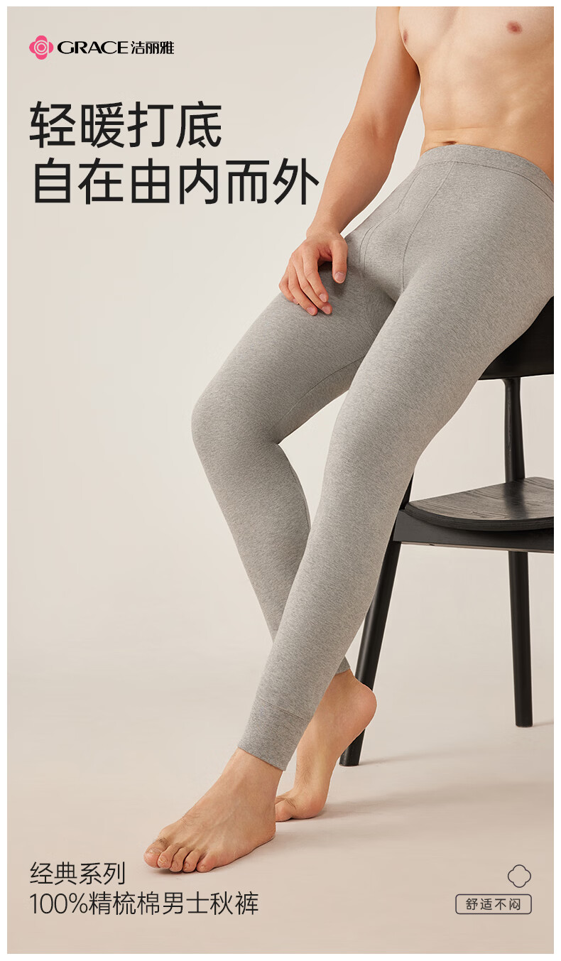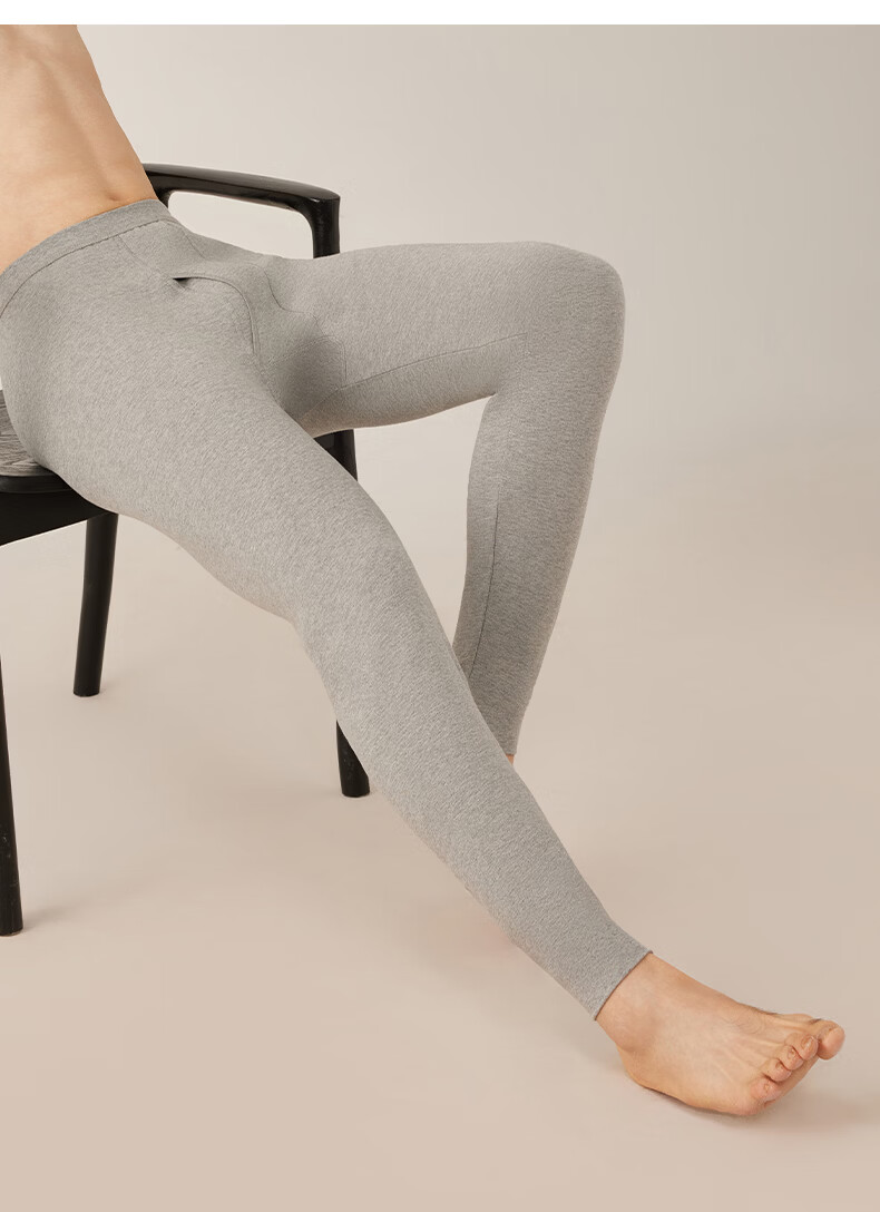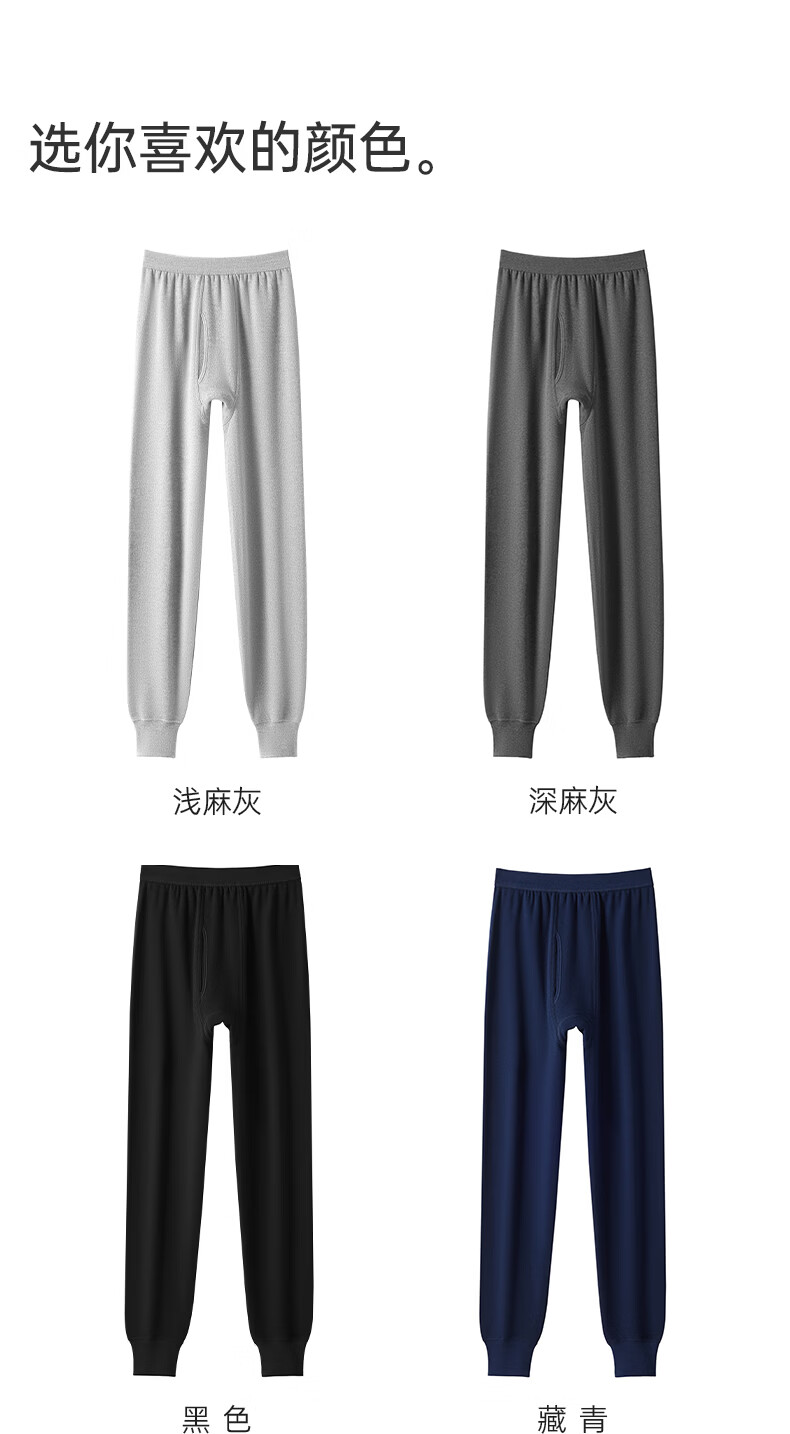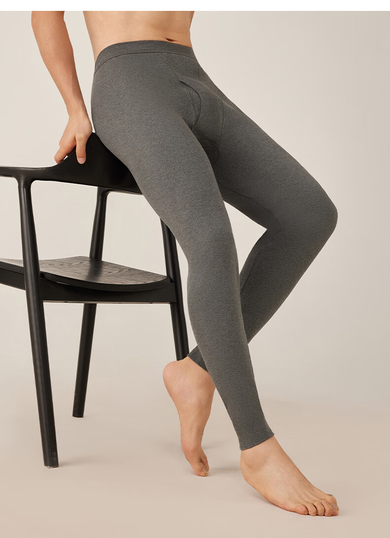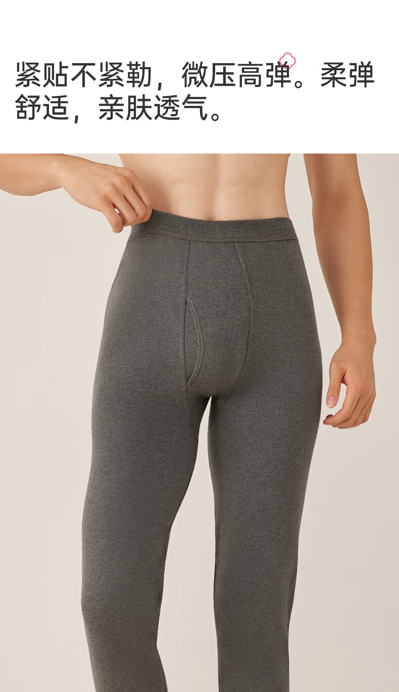 洁丽雅男士保暖秋裤男款7A抑菌纯棉毛裤打底裤青少年全棉裤 【浅麻灰+深麻灰】2条装 L