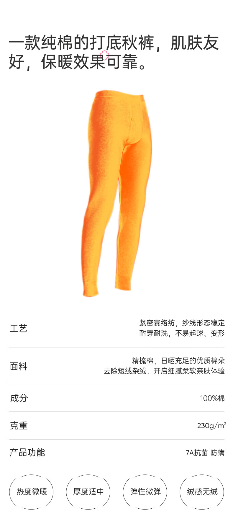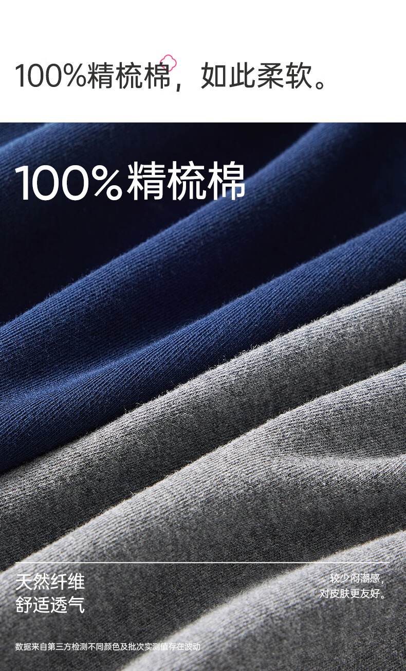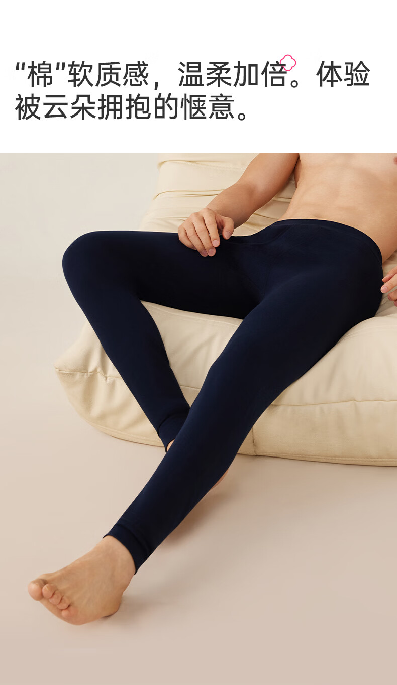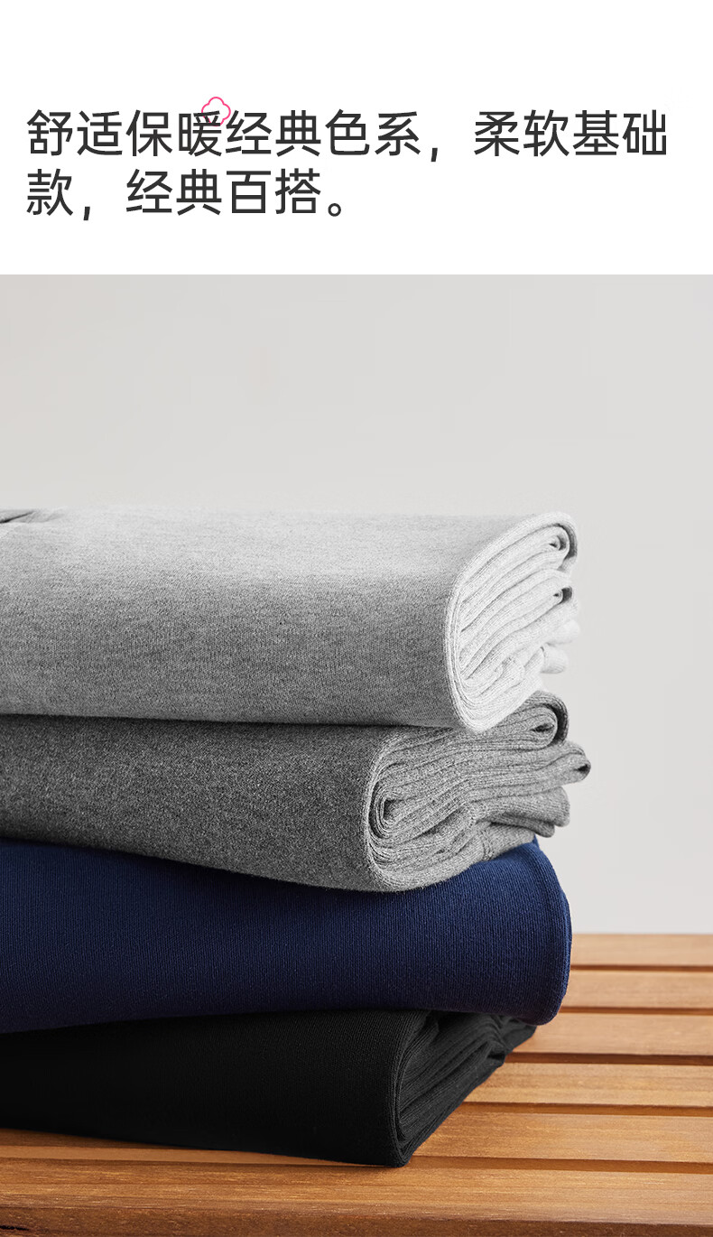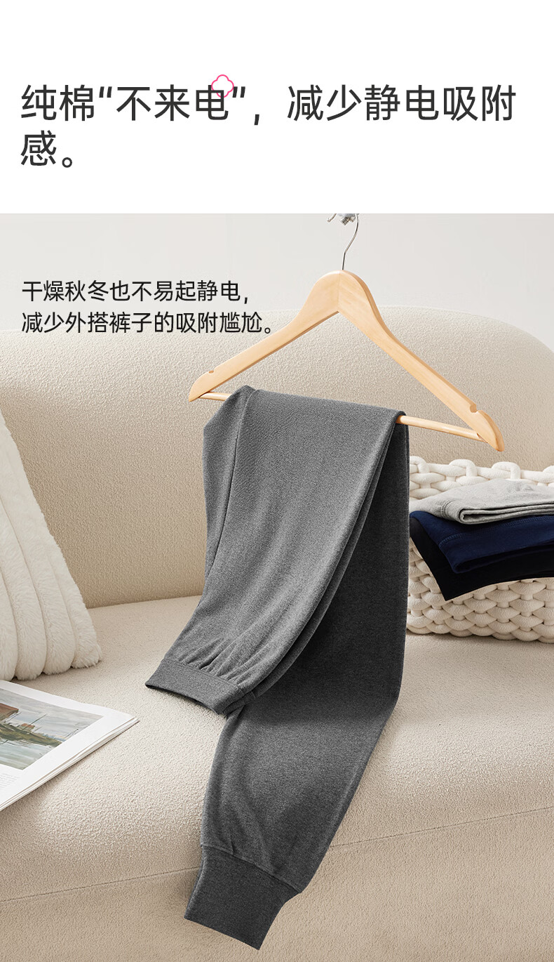 洁丽雅男士保暖秋裤男款7A抑菌纯棉毛裤打底裤青少年全棉裤 【浅麻灰+深麻灰】2条装 L