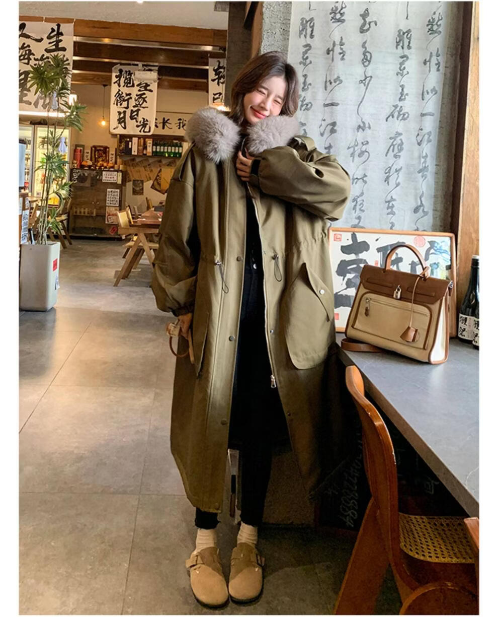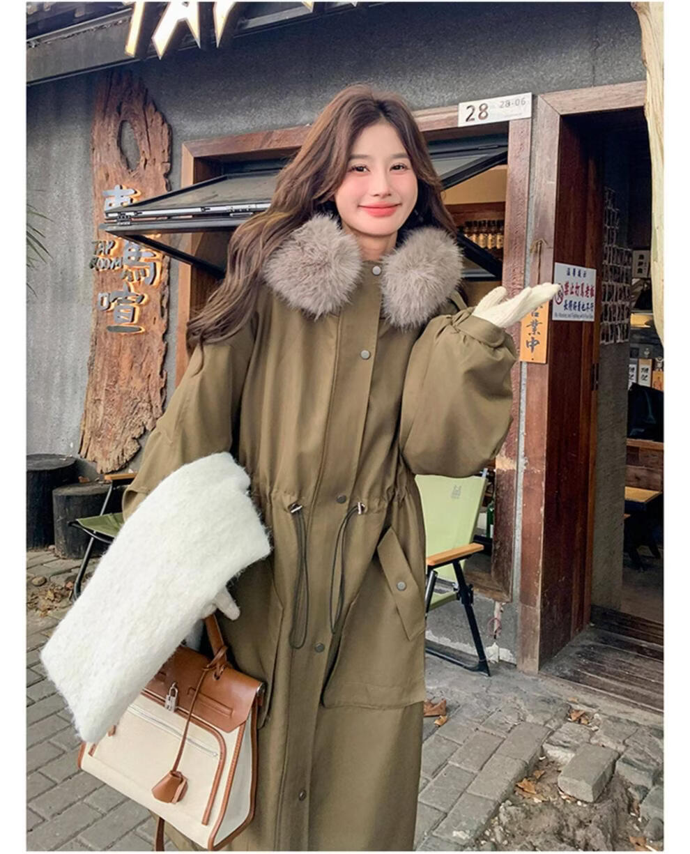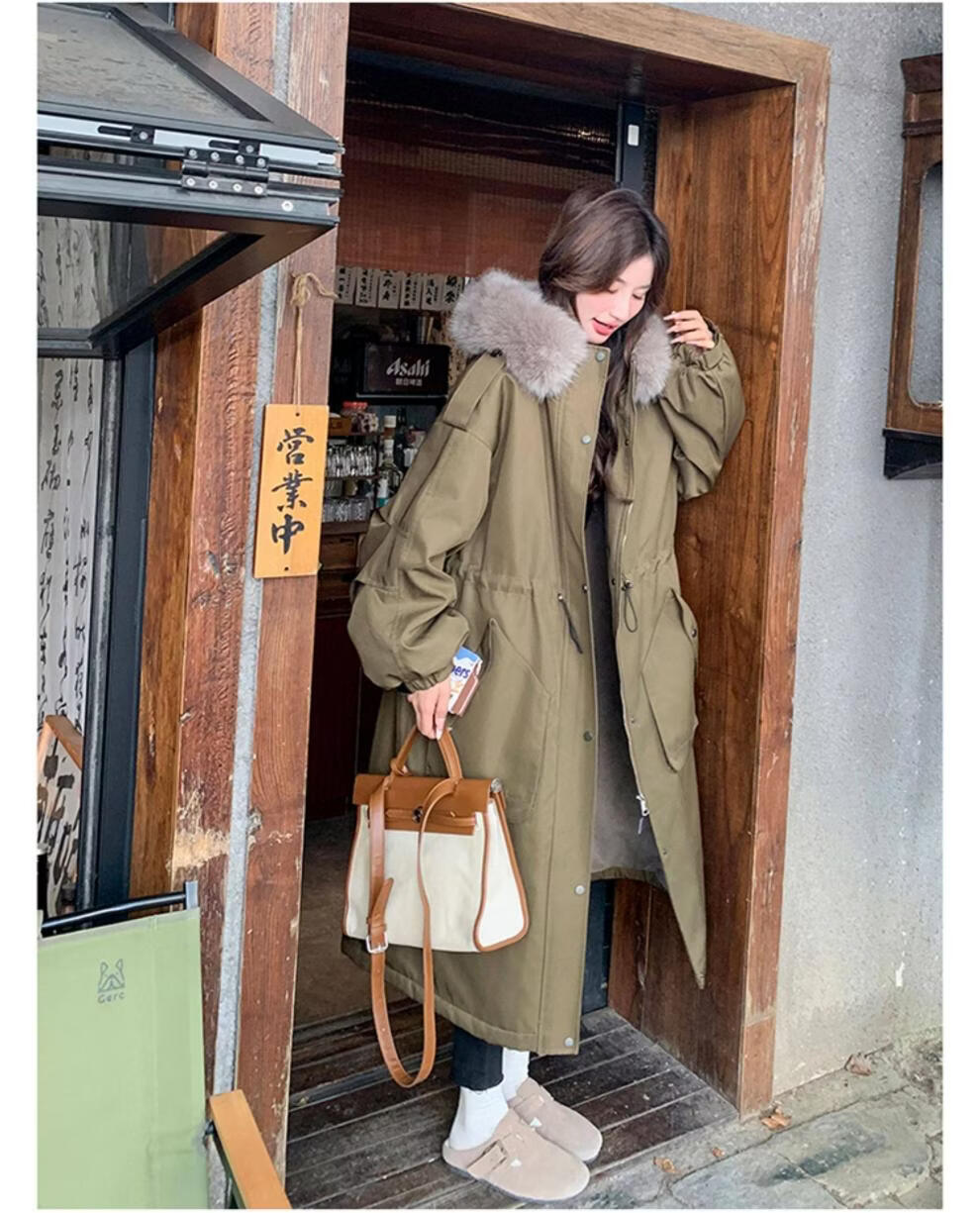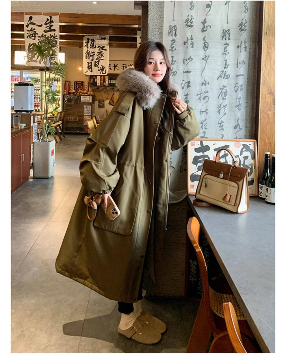 MODX卡其绿加厚派克服棉服 冬季加绒连帽长外套 韩版通勤风女装棉衣 卡其绿升级 加厚 XL