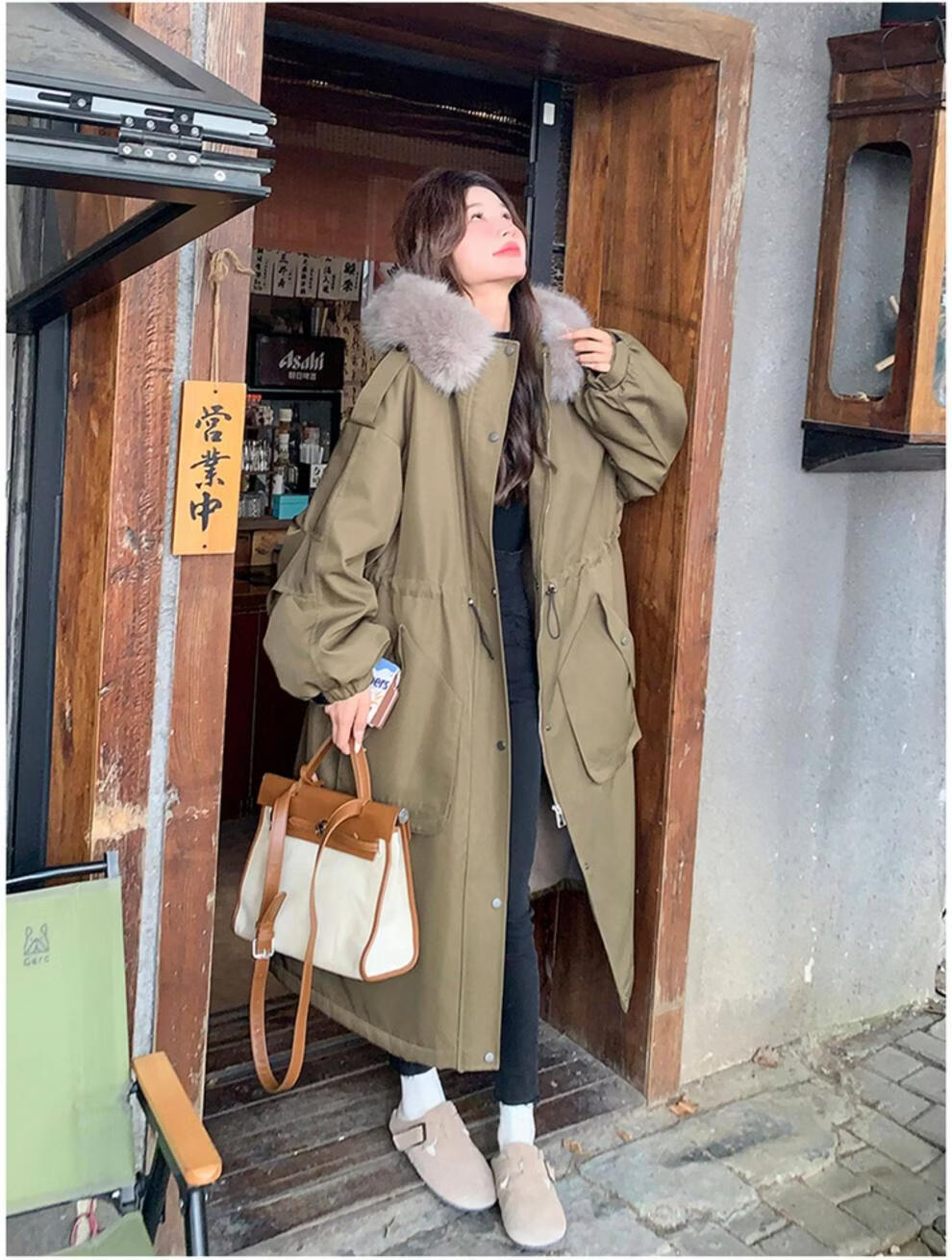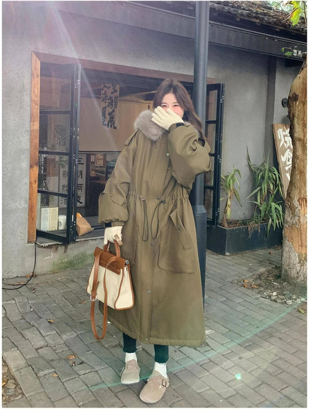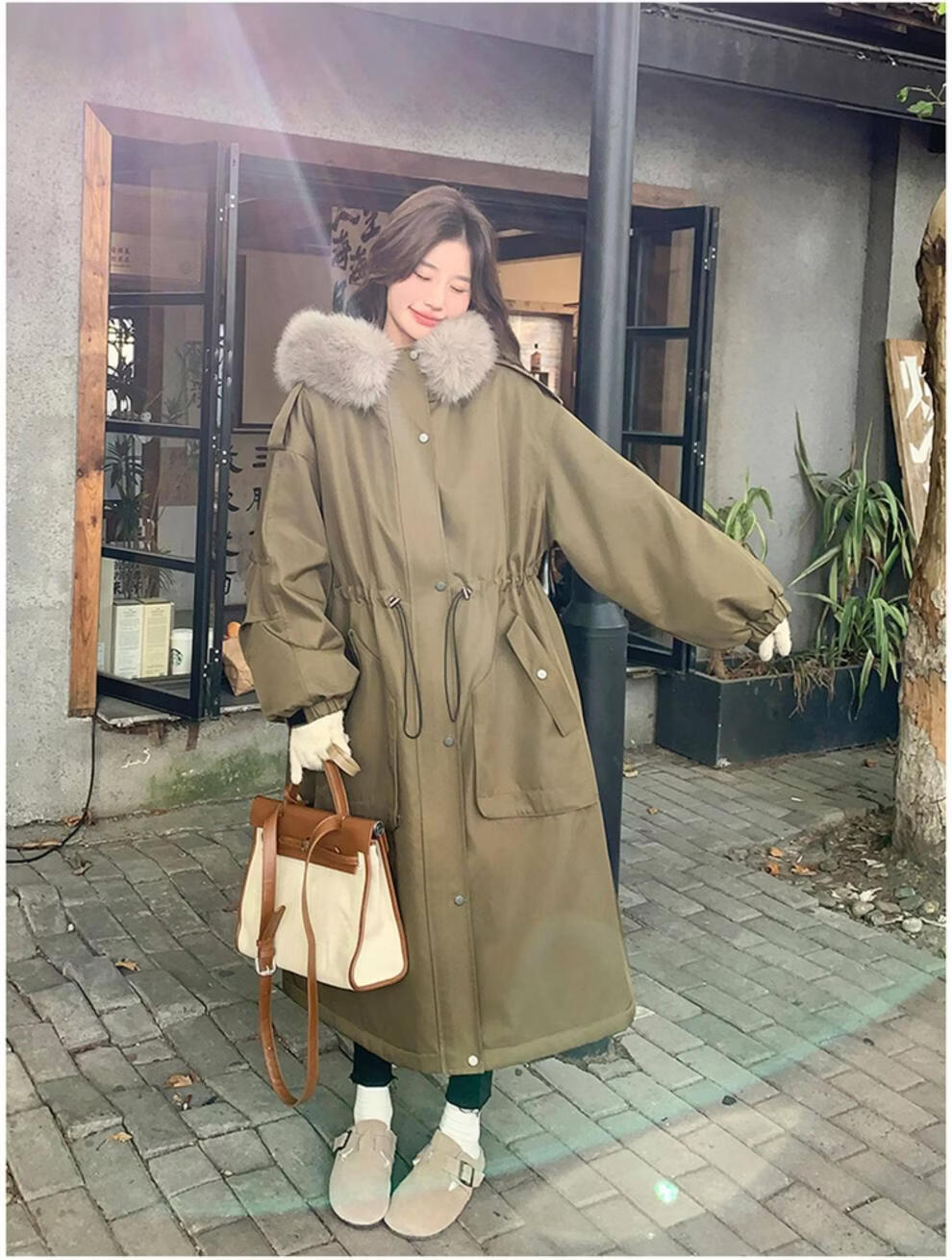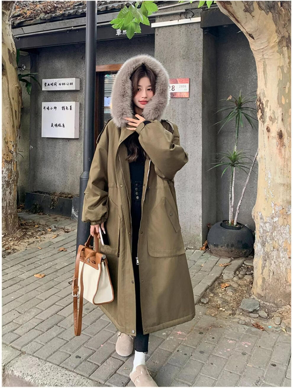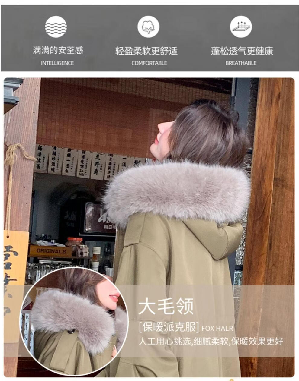 MODX卡其绿加厚派克服棉服 冬季加绒连帽长外套 韩版通勤风女装棉衣 卡其绿升级 加厚 XL