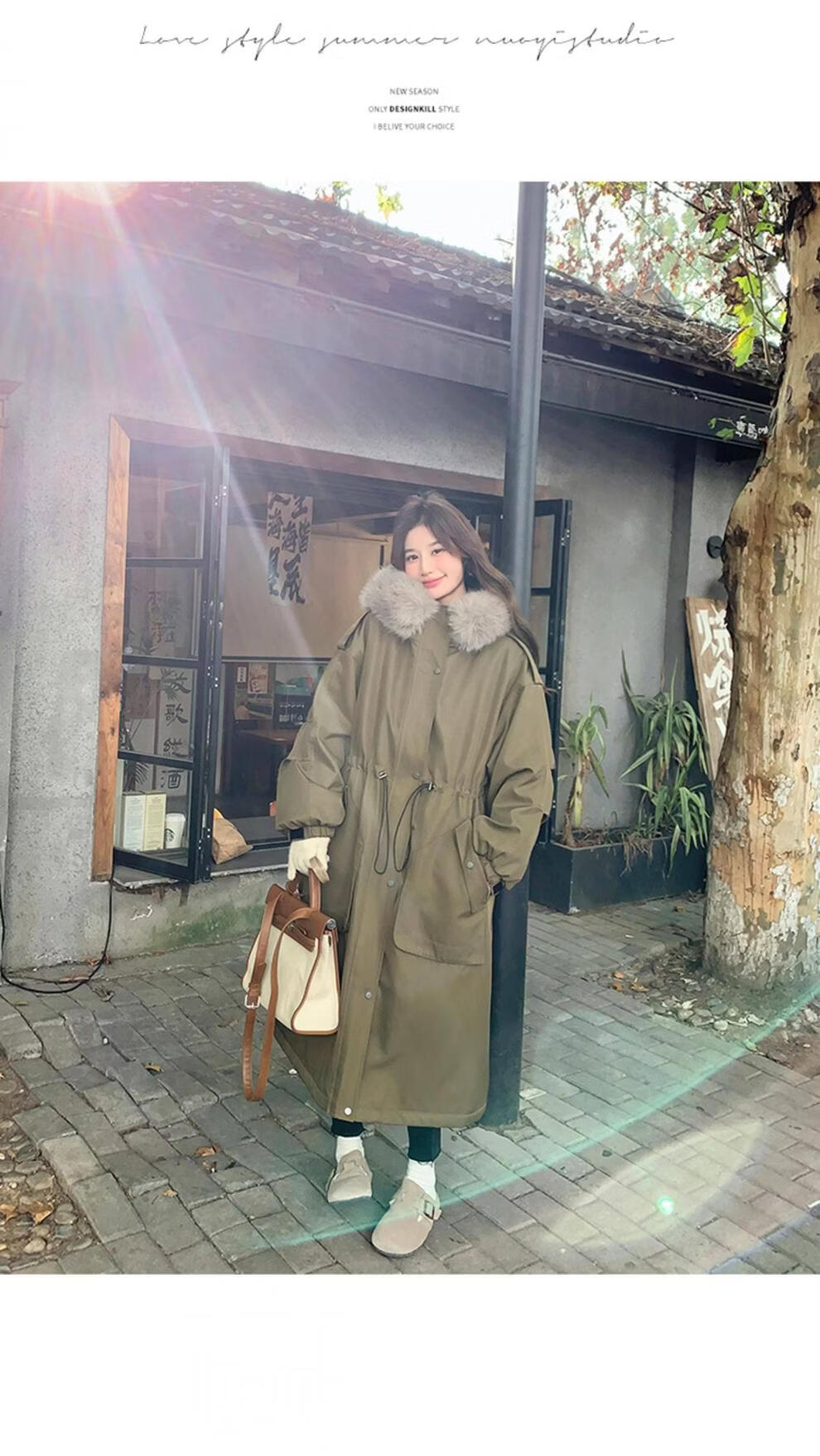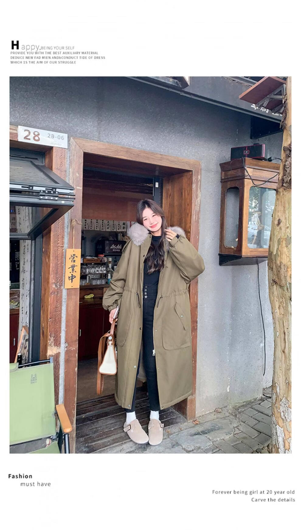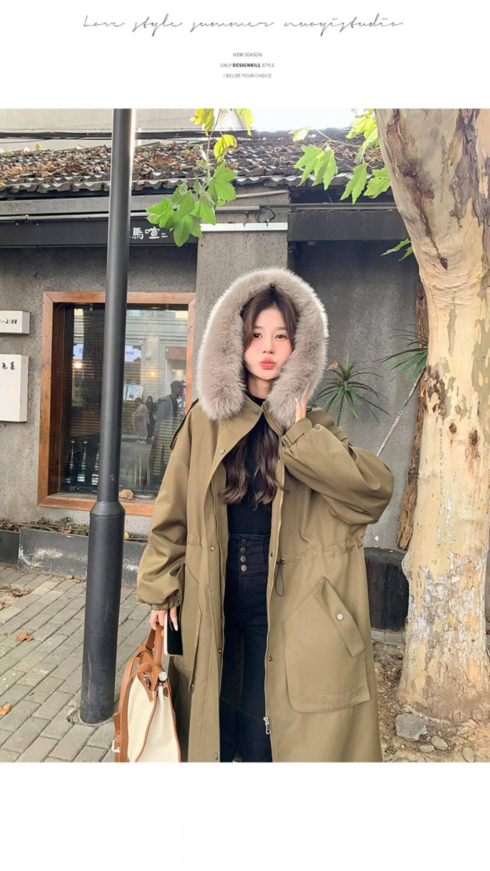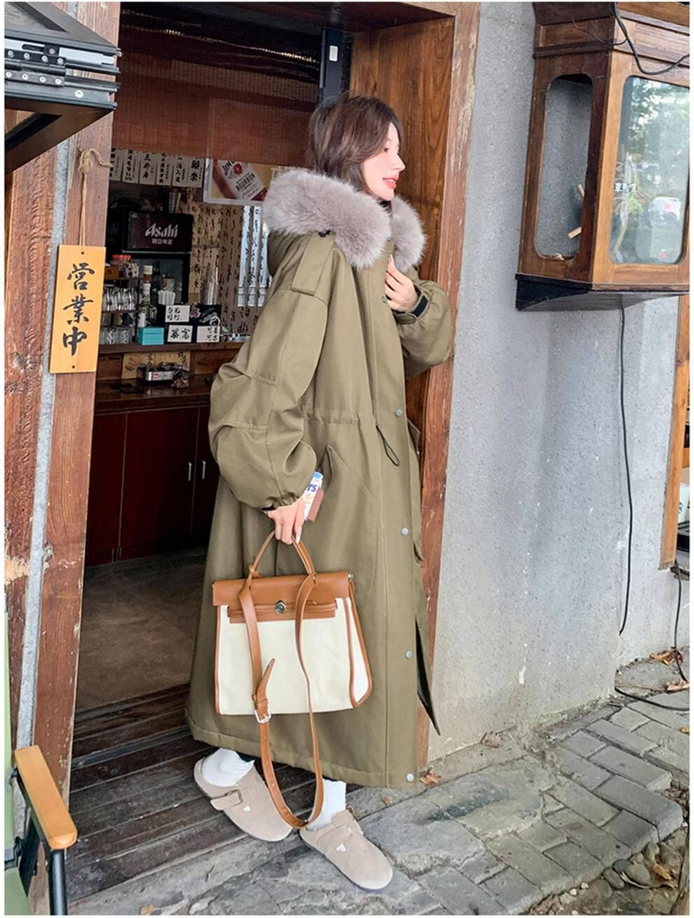 MODX卡其绿加厚派克服棉服 冬季加绒连帽长外套 韩版通勤风女装棉衣 卡其绿升级 加厚 XL