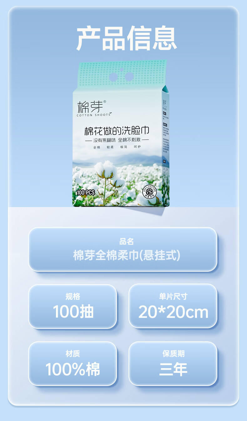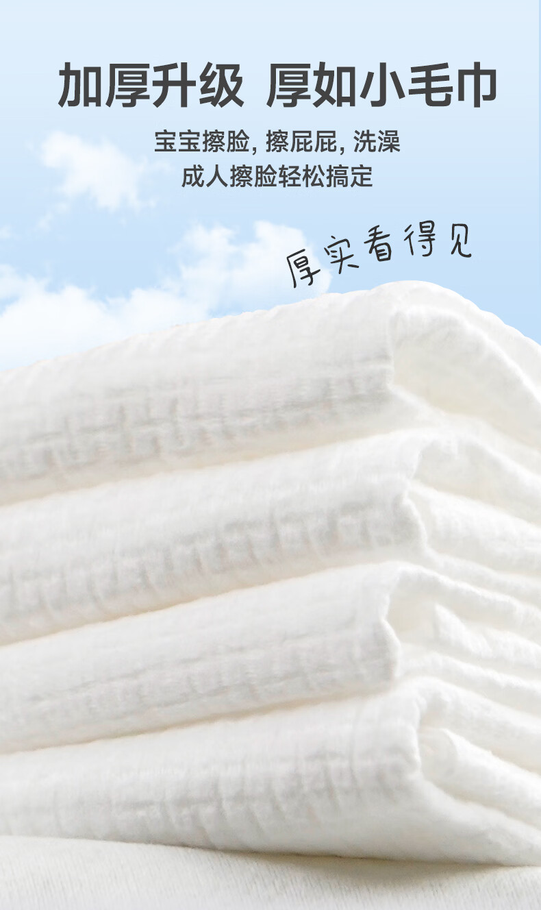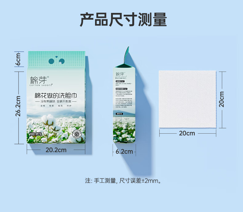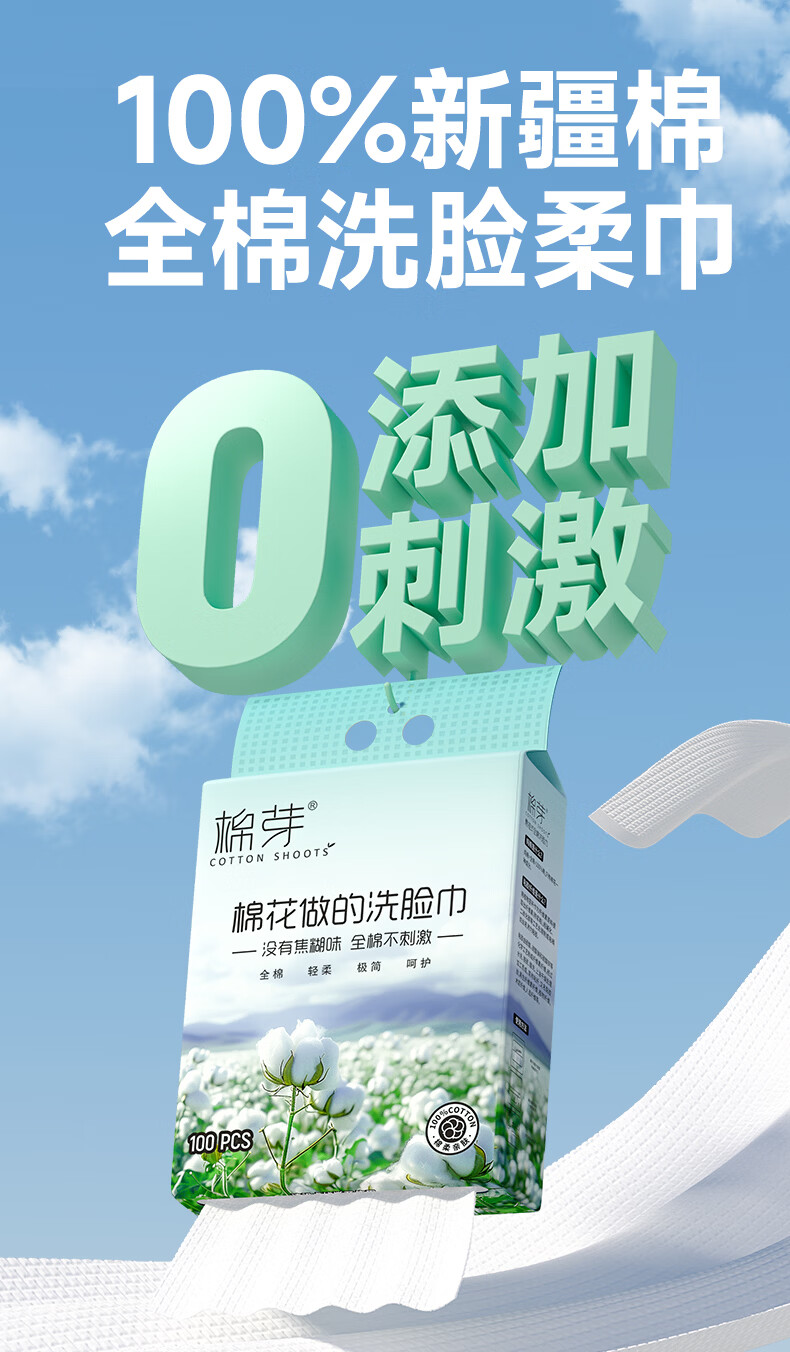 棉芽(COTTON SHOOTS)棉芽全棉一次性洗脸巾纯棉柔巾擦脸巾加大加厚洁面毛巾100抽*2提