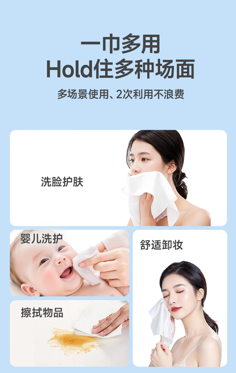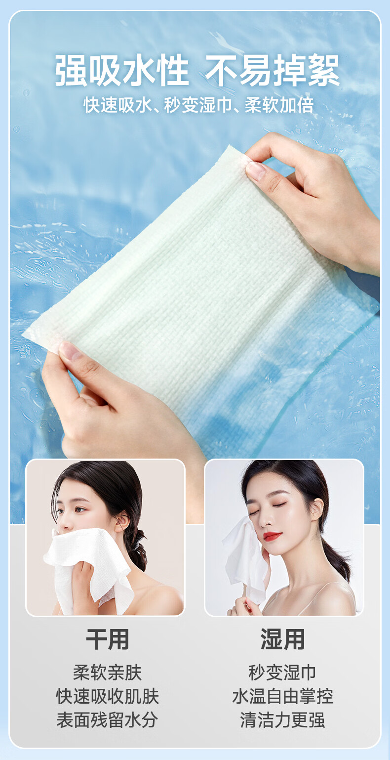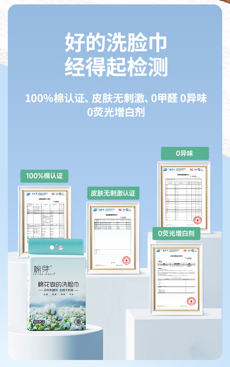 棉芽(COTTON SHOOTS)棉芽全棉一次性洗脸巾纯棉柔巾擦脸巾加大加厚洁面毛巾100抽*2提