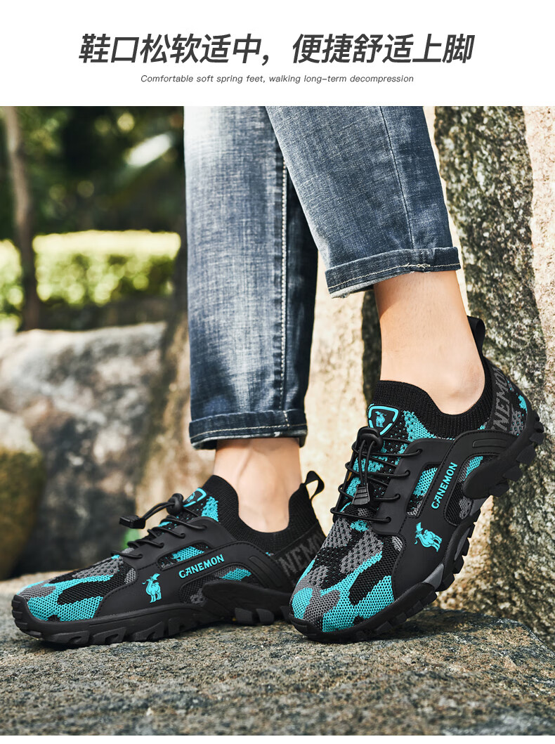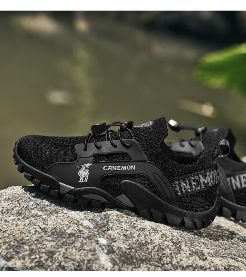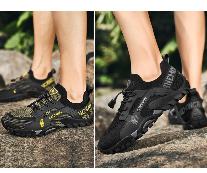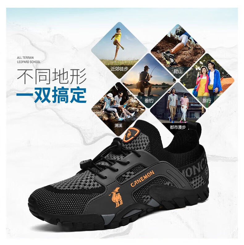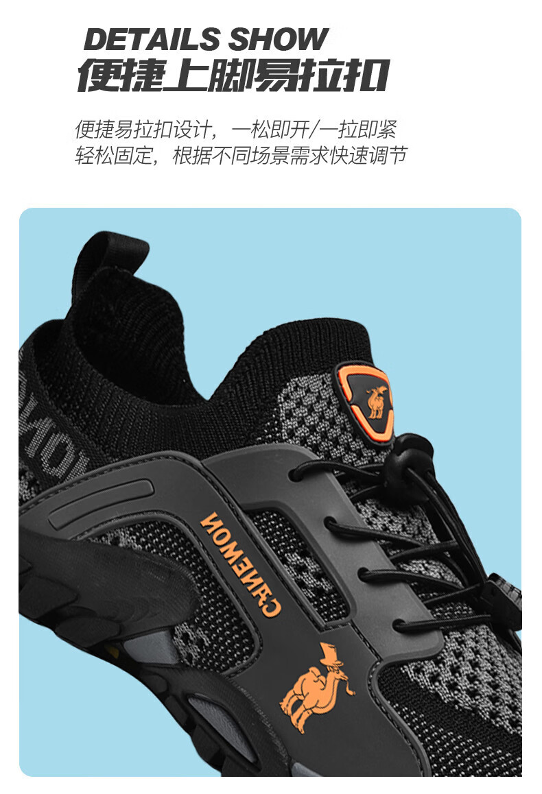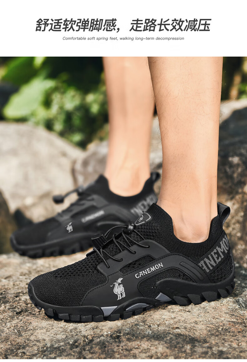 保罗骆驼男鞋夏季新款运动休闲鞋网面鞋透气防滑耐磨户外徒步登山鞋跑步鞋 黑色【透气孔系列2218】 39