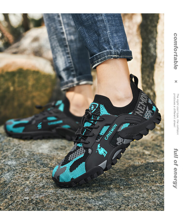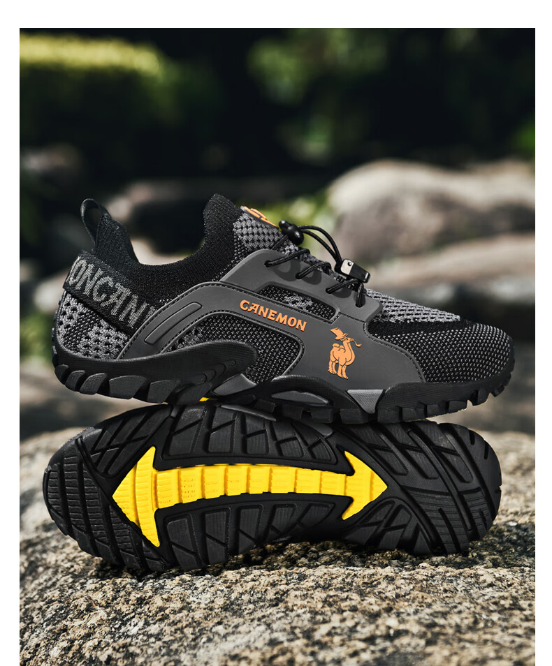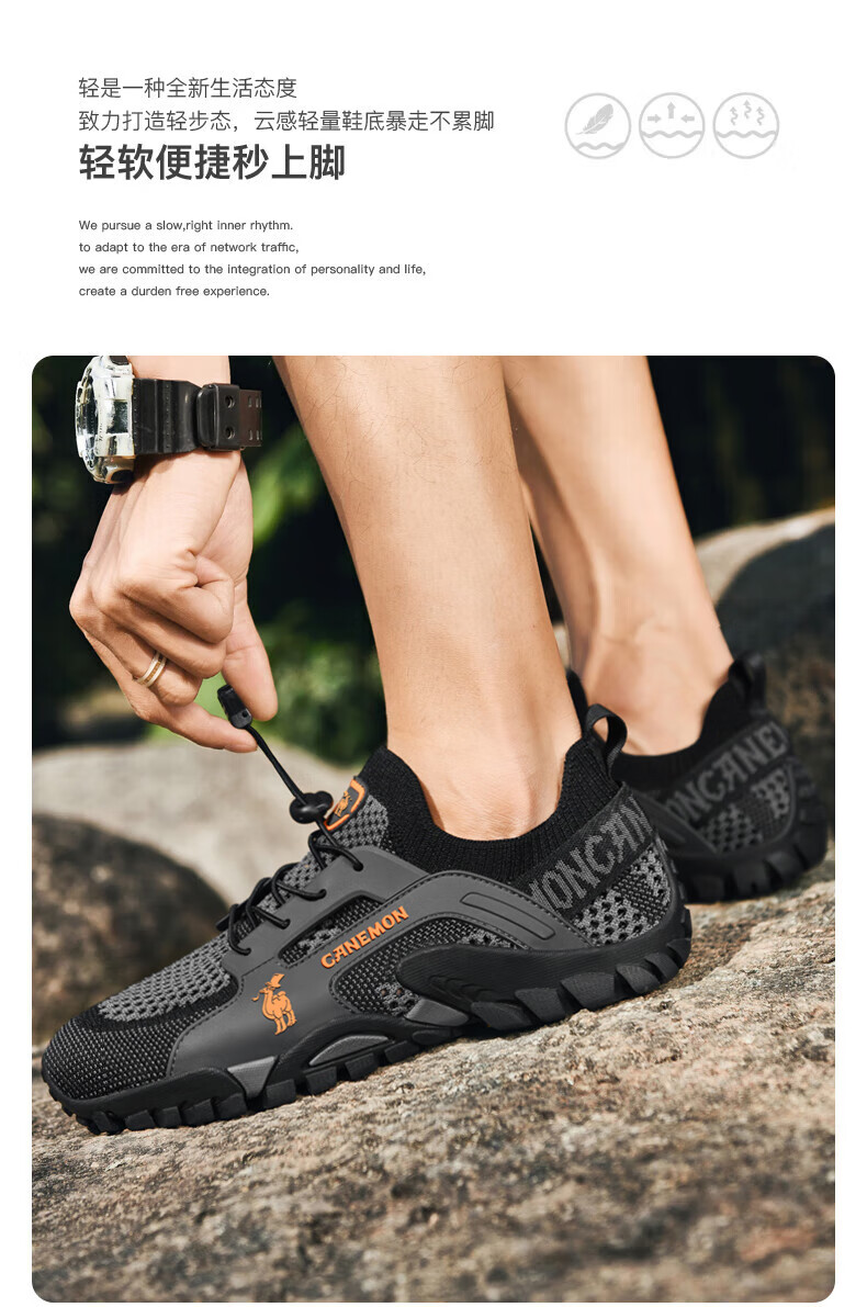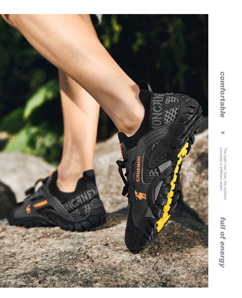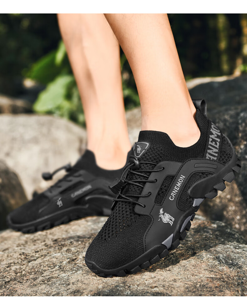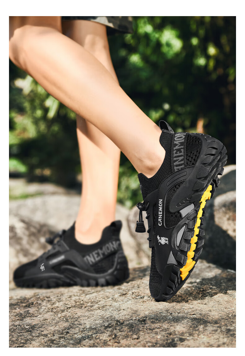 保罗骆驼男鞋夏季新款运动休闲鞋网面鞋透气防滑耐磨户外徒步登山鞋跑步鞋 黑色【透气孔系列2218】 39