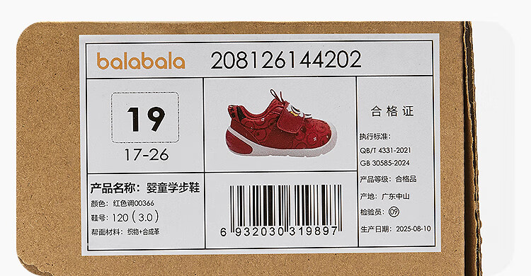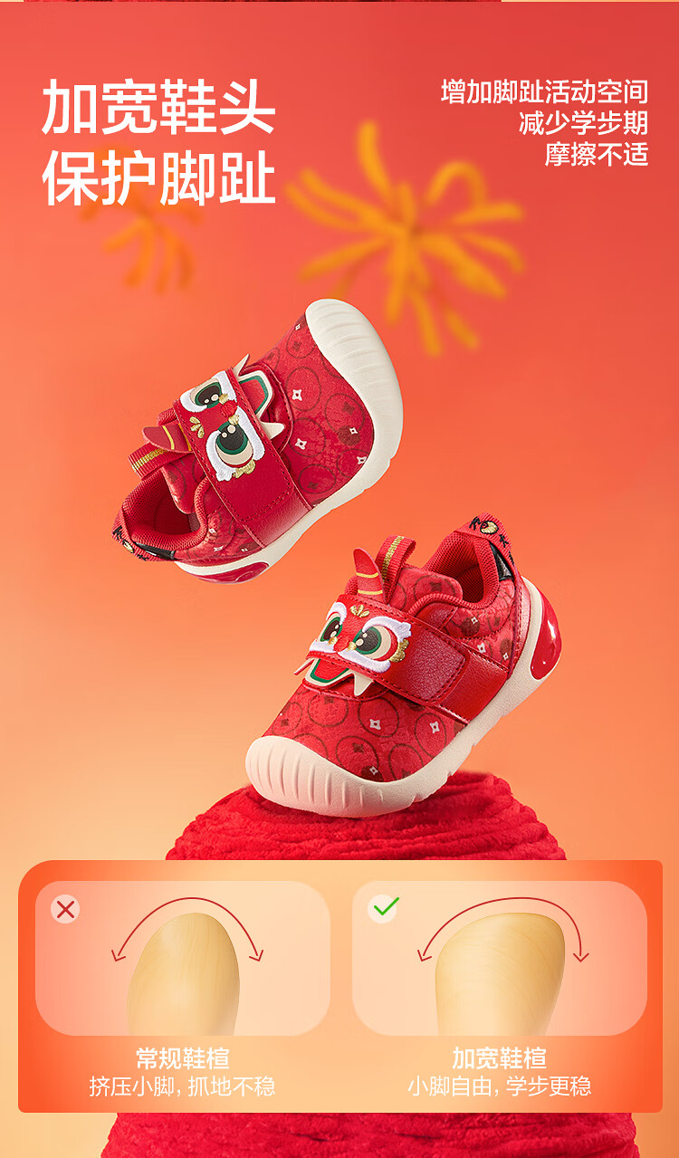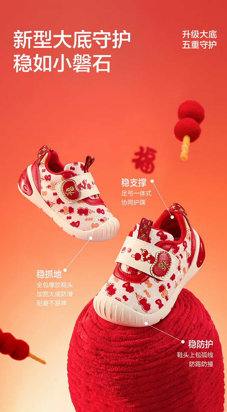 巴拉巴拉童鞋儿童学步鞋宝宝红色鞋子2026春季新款婴儿鞋防滑魔术贴