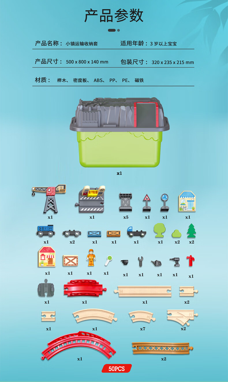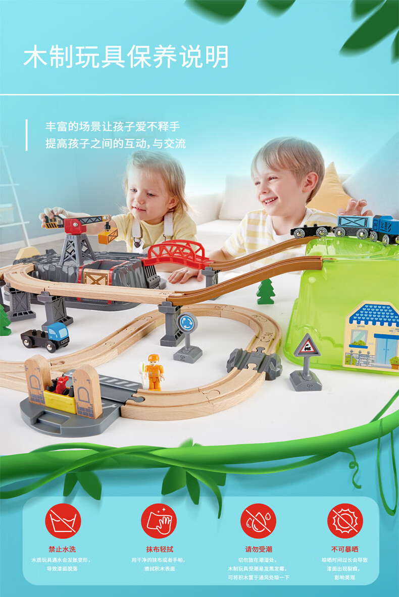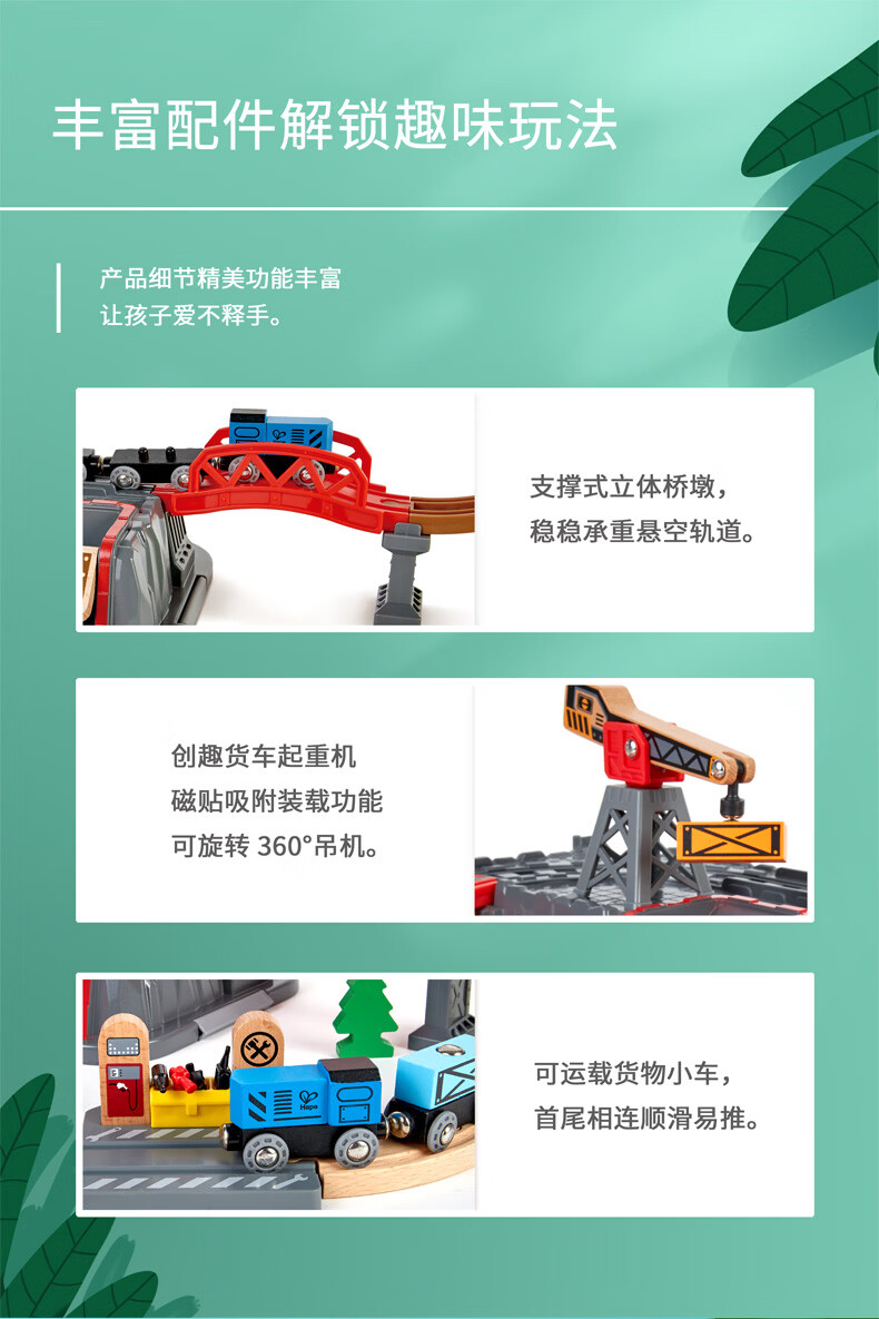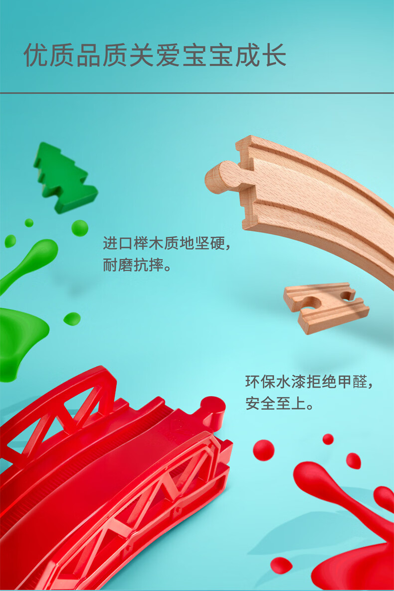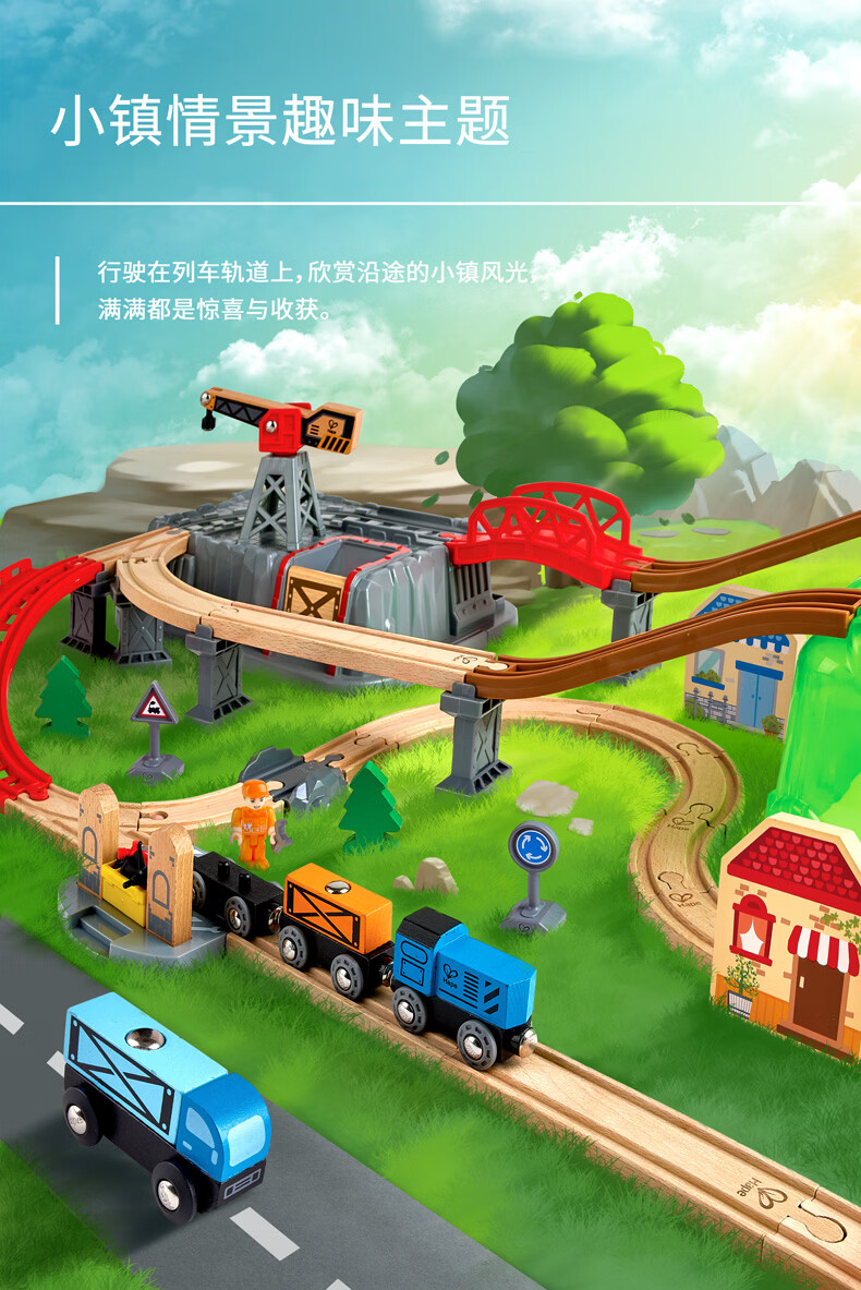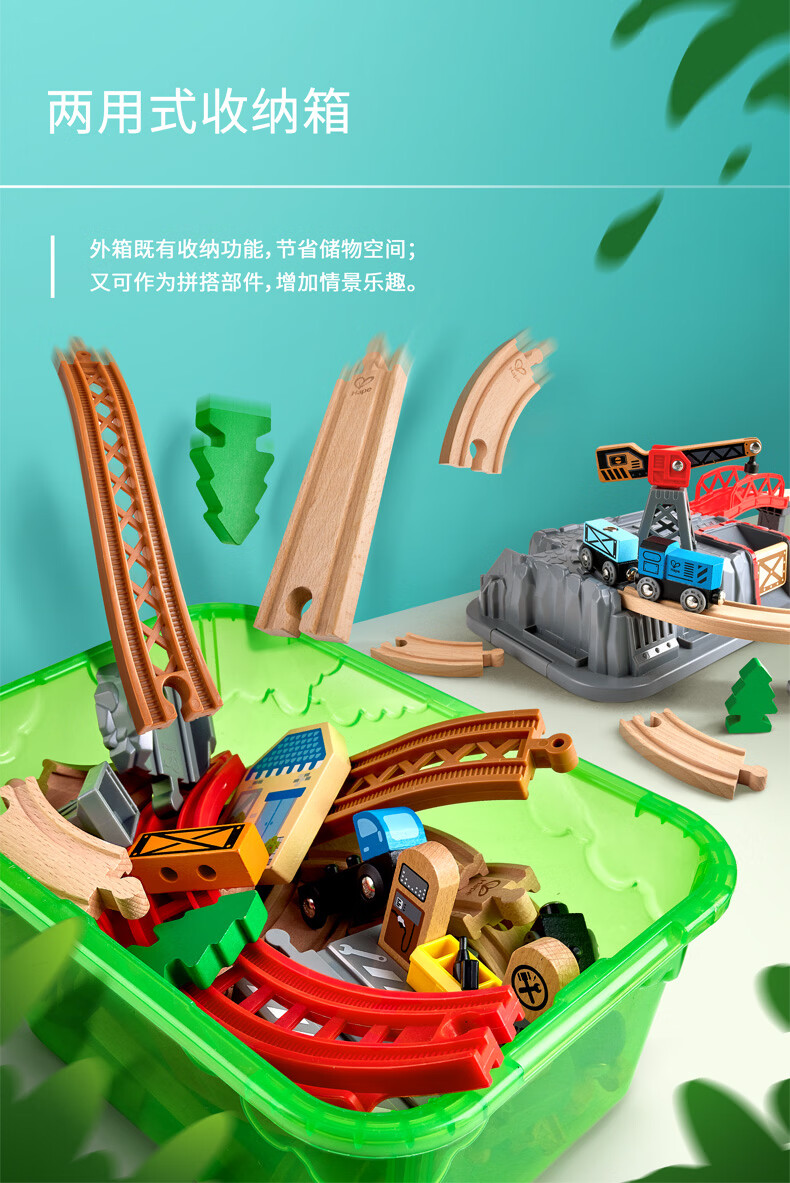 Hape(德国)火车轨道玩具木质拼插diy小镇运输收纳套生日礼物E3764