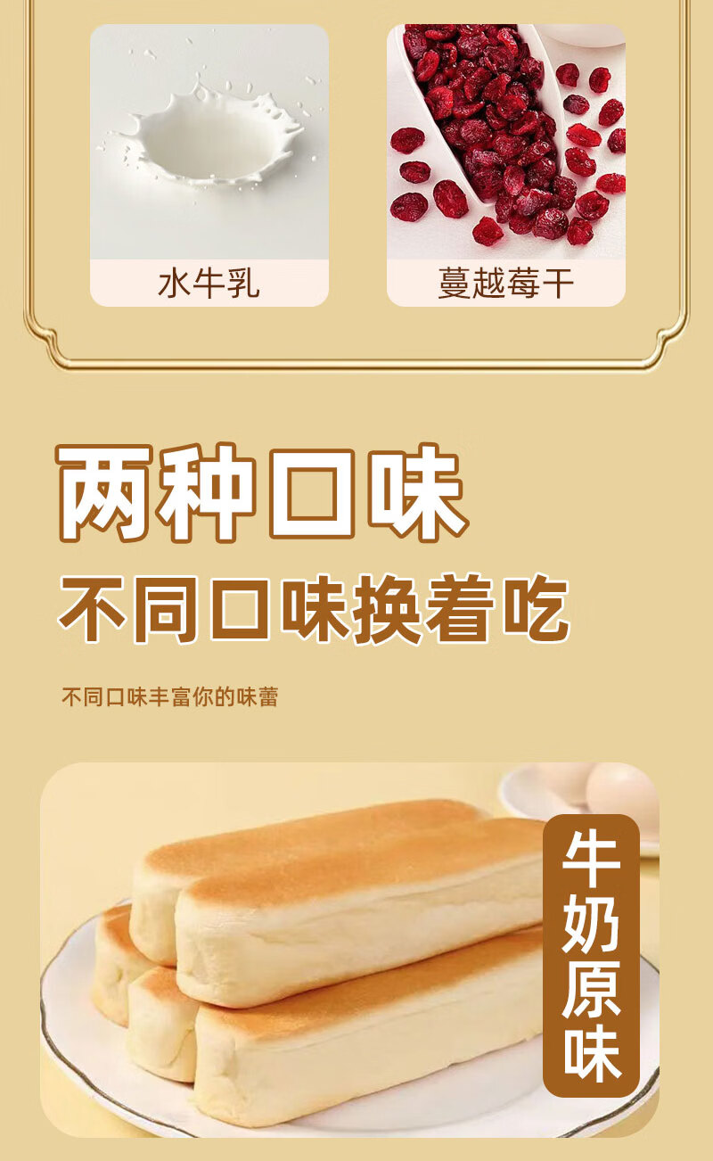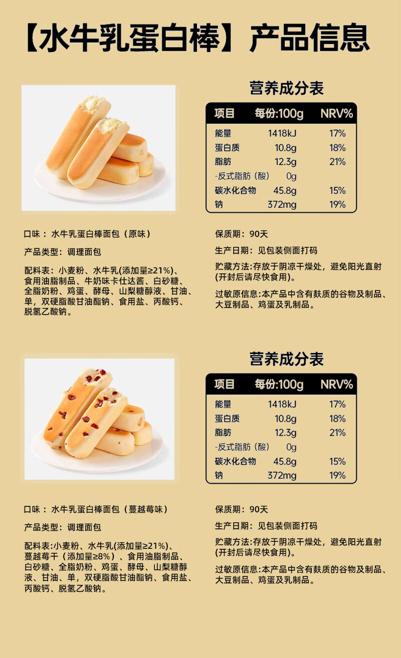 每日赞水牛乳蛋白棒面包蔓越莓味解馋零食点心营养早餐奶香浓郁开袋即食 水牛乳蛋白棒混合口味装500g(20个)